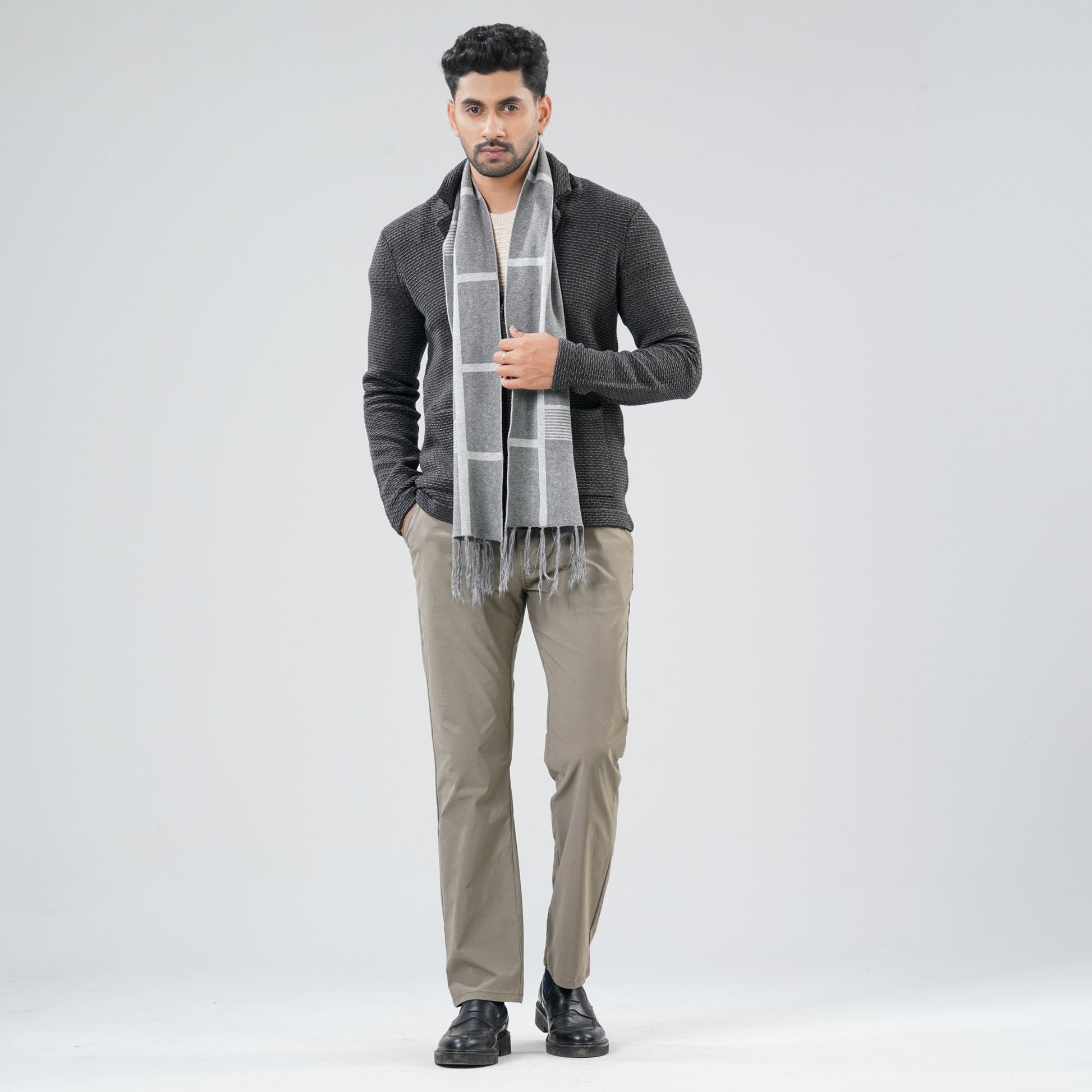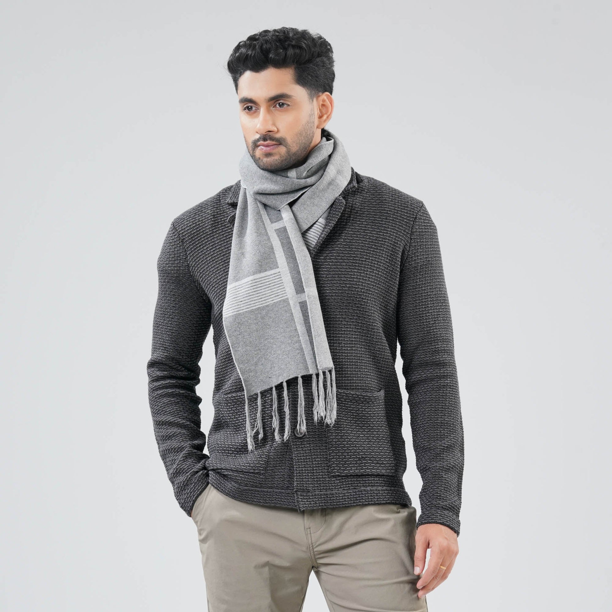 Stay warm in style with this men’s grey sweater muffler, crafted from a soft blend of viscose and nylon for comfort and durability. Featuring a multicolor ethnic design and playful tassels at both ends, it adds a vibrant touch to any winter outfit. Perfect for casual or festive wear.