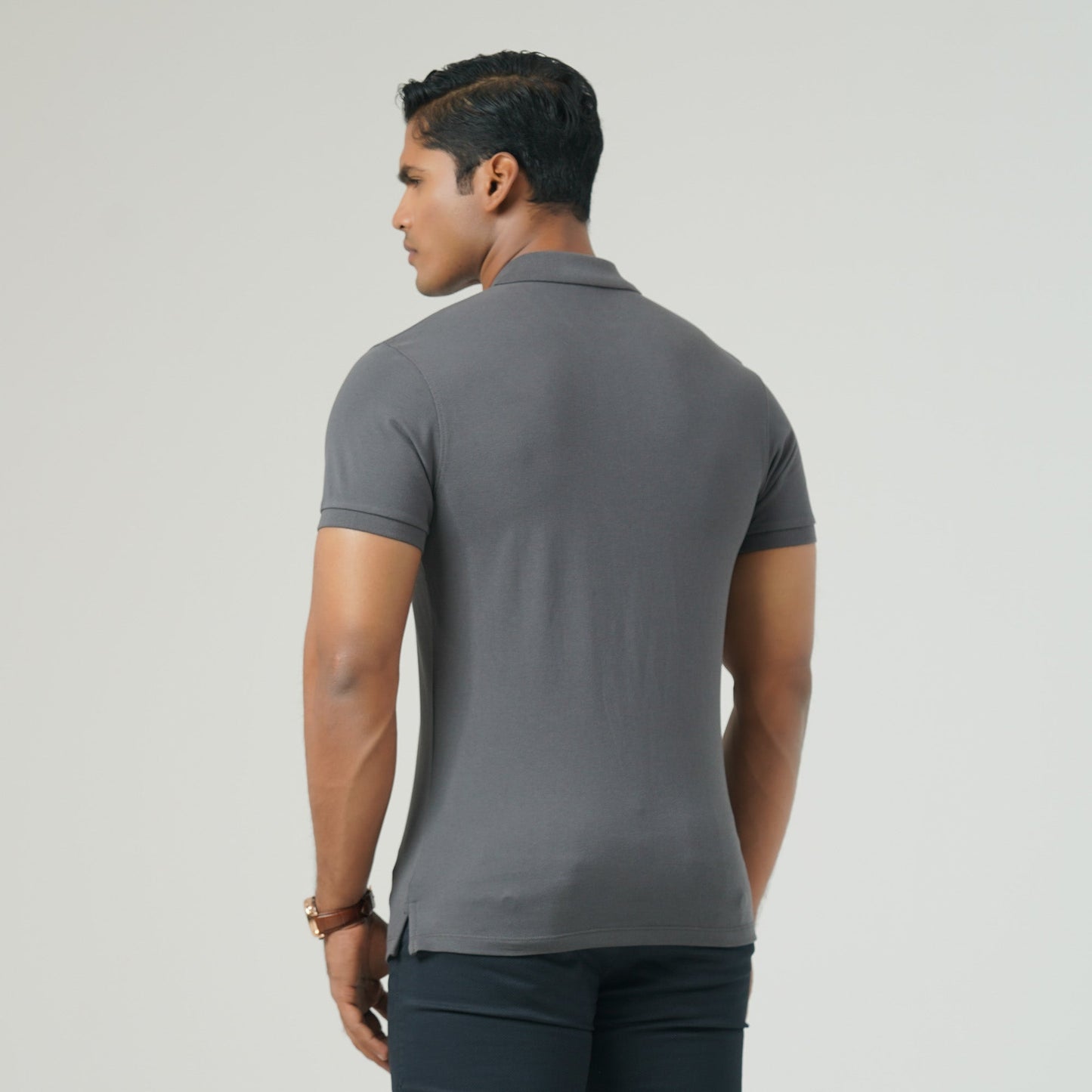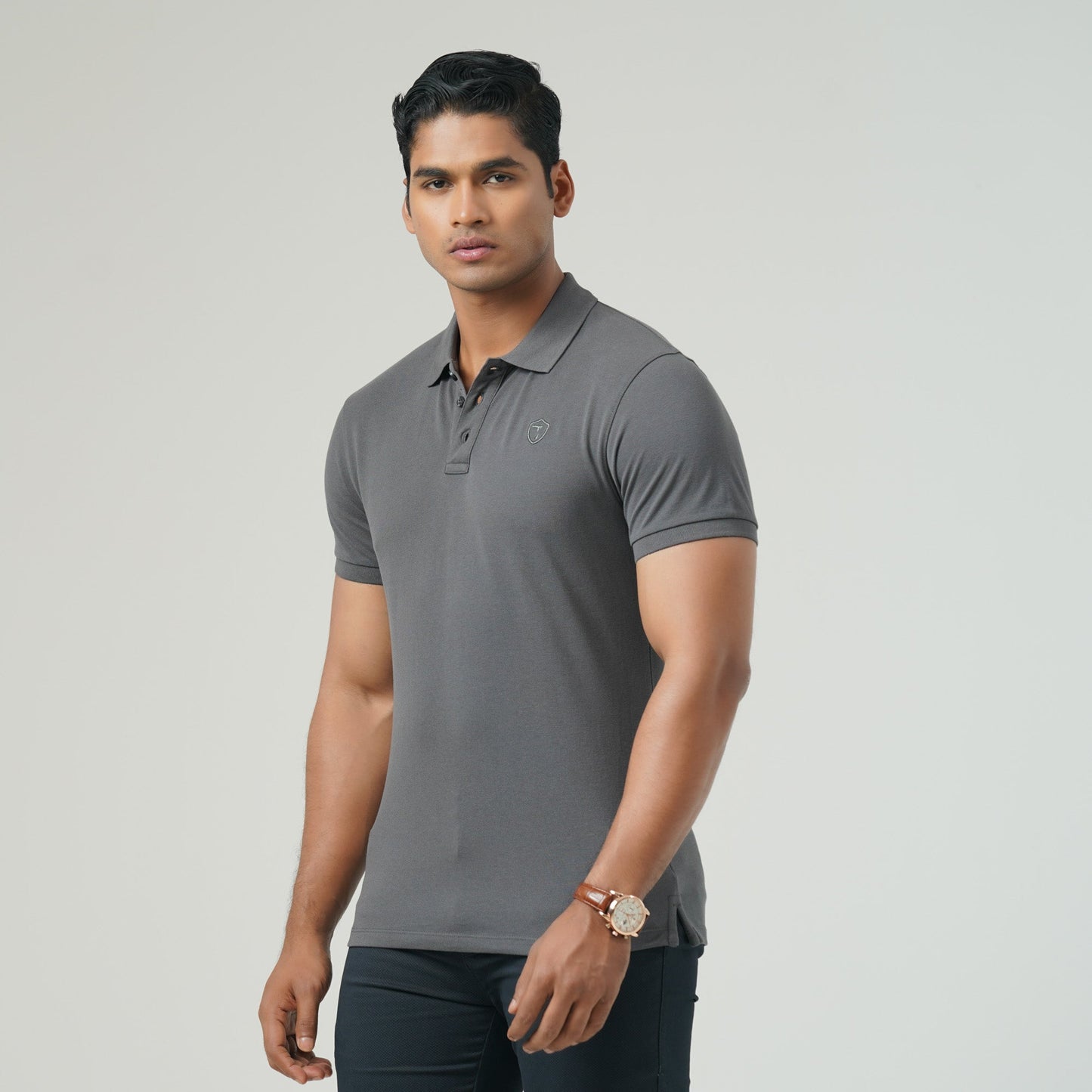 A classic solid dark grey colored polo featuring a sleek logo embroidery at the chest for a refined touch. Crafted from a premium cotton-polyester blended fabric, ensuring all-day comfort and durability. Perfect for both casual and smart looks.