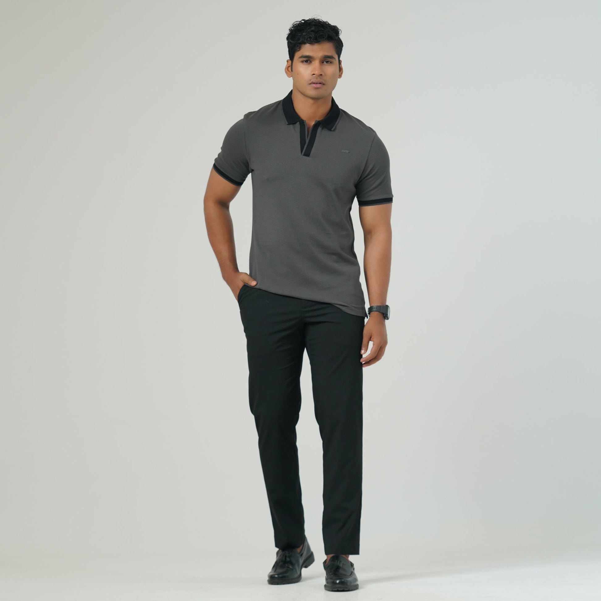 Elevate your casual wardrobe with our mens slim fit polo shirt in grey. Made from 100% cotton bubble knit fabric, this shirt combines comfort and style effortlessly. The buttonless placket and tipping collar provide a sleek, modern look, while the metal badge at the chest adds a touch of sophistication. With a 220 GSM weight, this polo ensures a soft, breathable fit that's perfect for any occasion. Pair it with shorts or jeans for a relaxed yet polished ensemble.