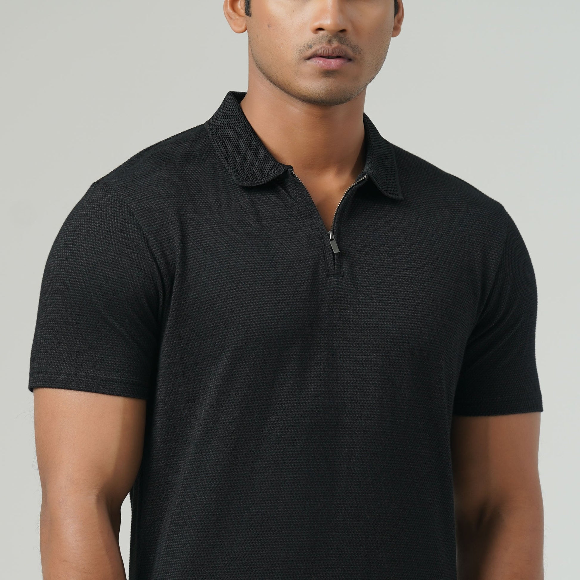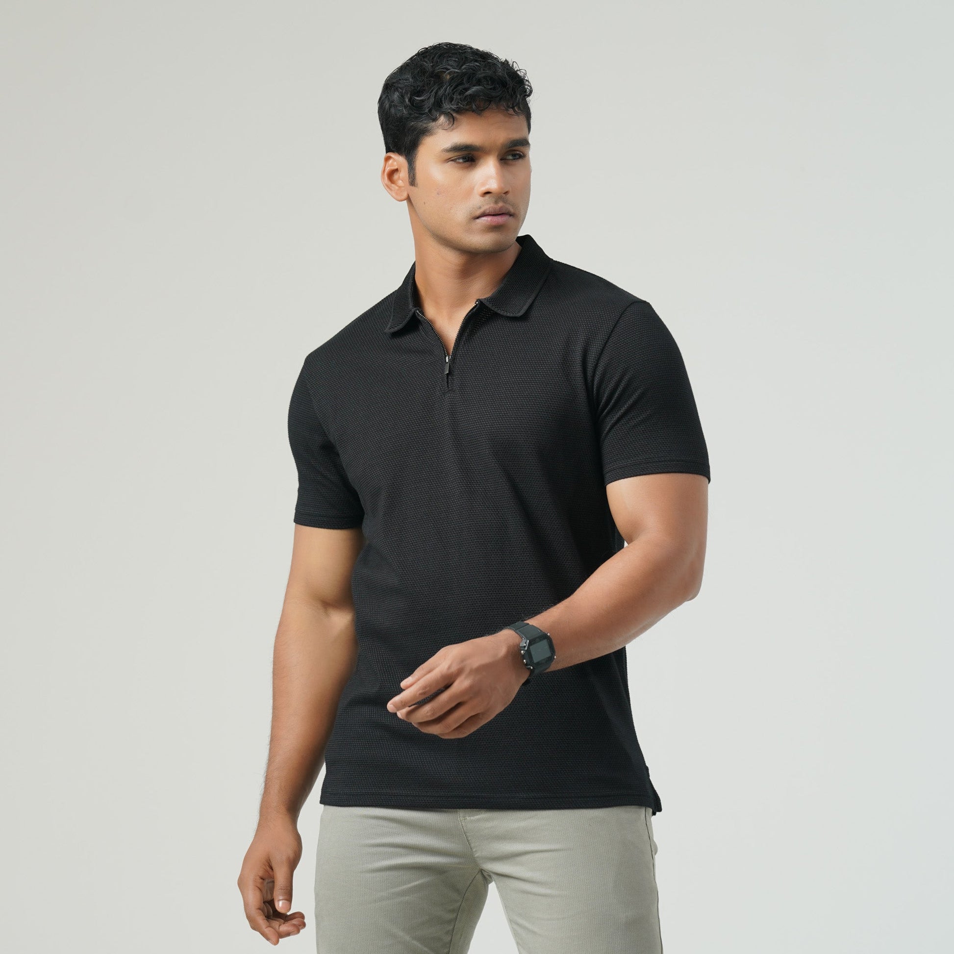 A classic solid Black colored polo featuring a sleek logo embroidery at the chest for a refined touch. Crafted from a premium cotton-polyester blended fabric, ensuring all-day comfort and durability. Perfect for both casual and smart looks.