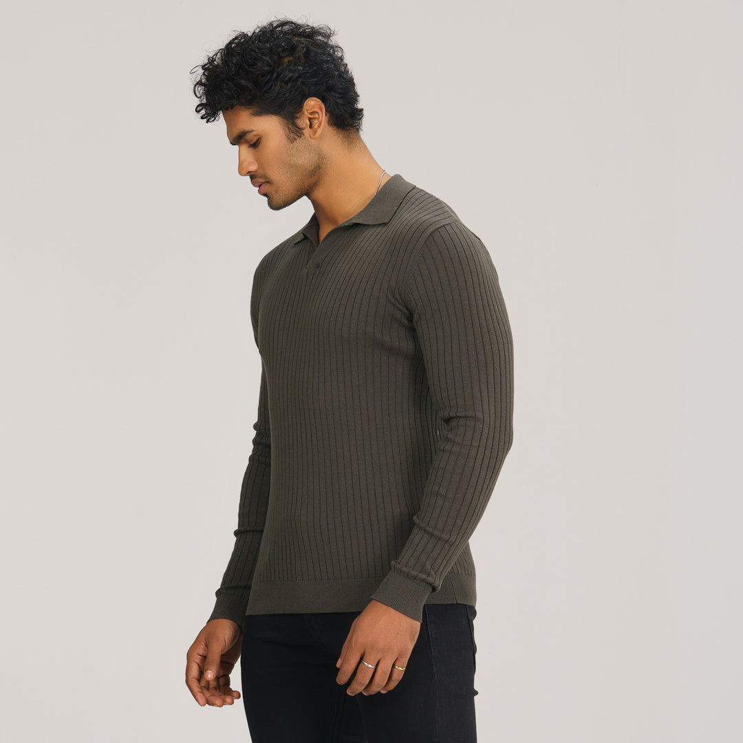 Mens Grey Textured Polo Sweater