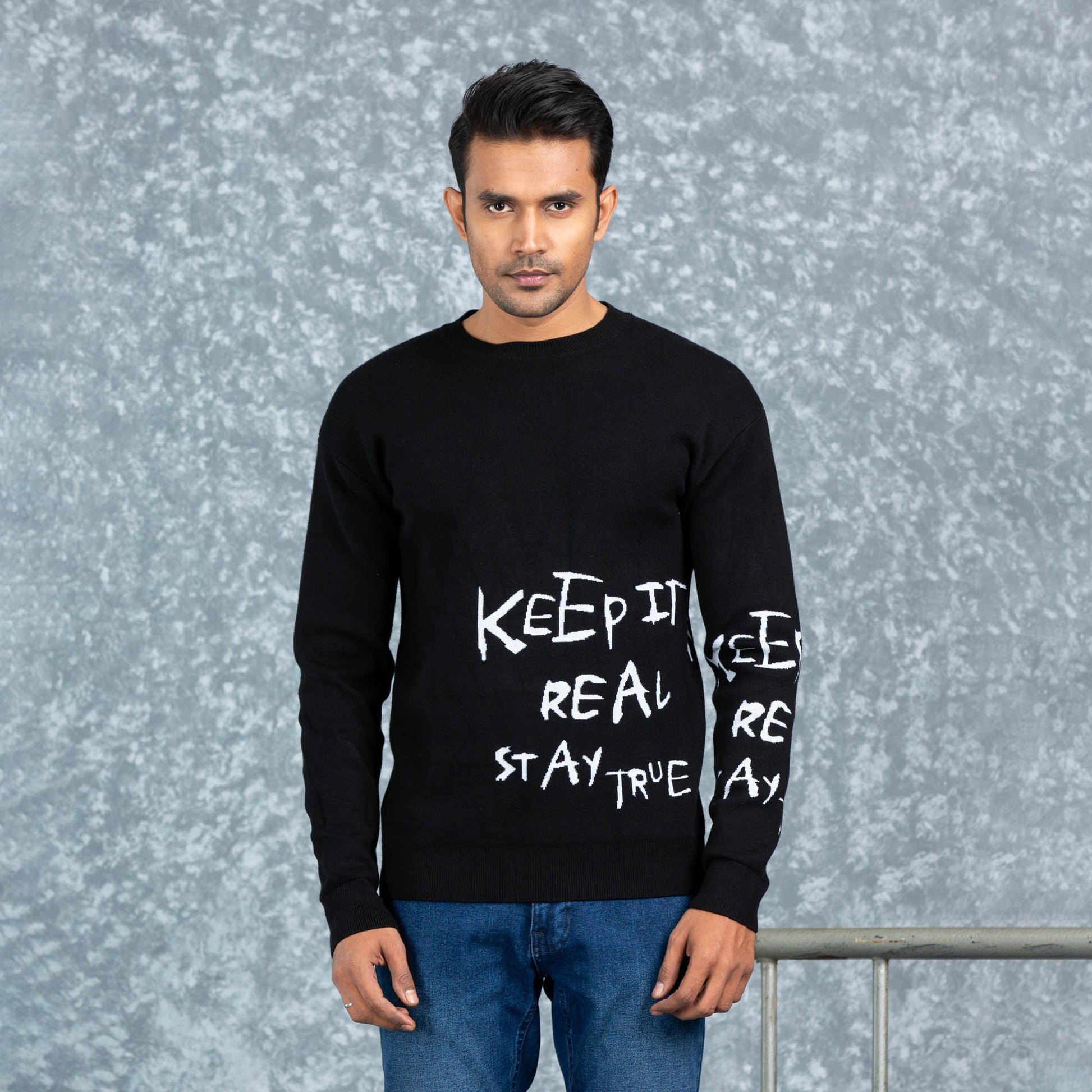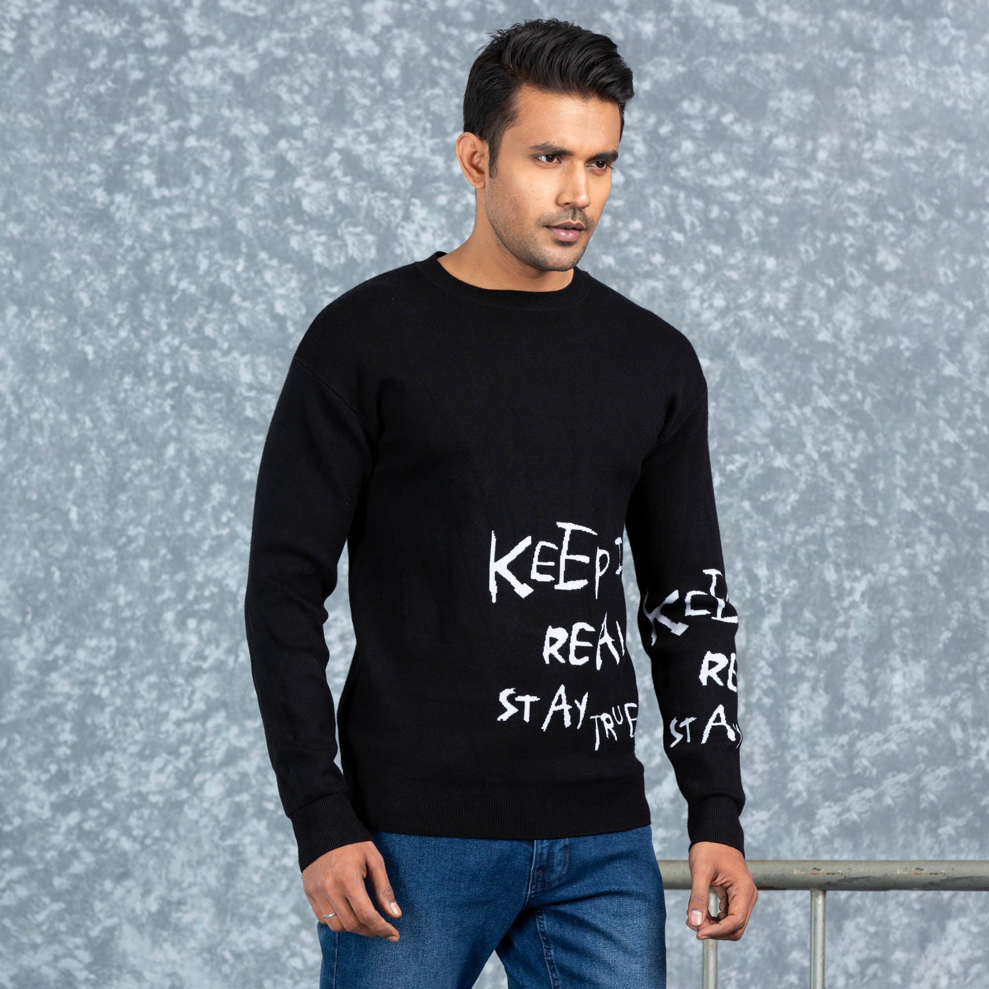 Stay warm and stylish with this classic black men's pullover. This piece is made with premium fabric that is designed for exceptional softness and durability. The fabric is breathable and lightweight, eliminating any discomfort and keeping you comfortable all day long. Perfect for winter days or in cooler climates, make a statement with this essential piece.