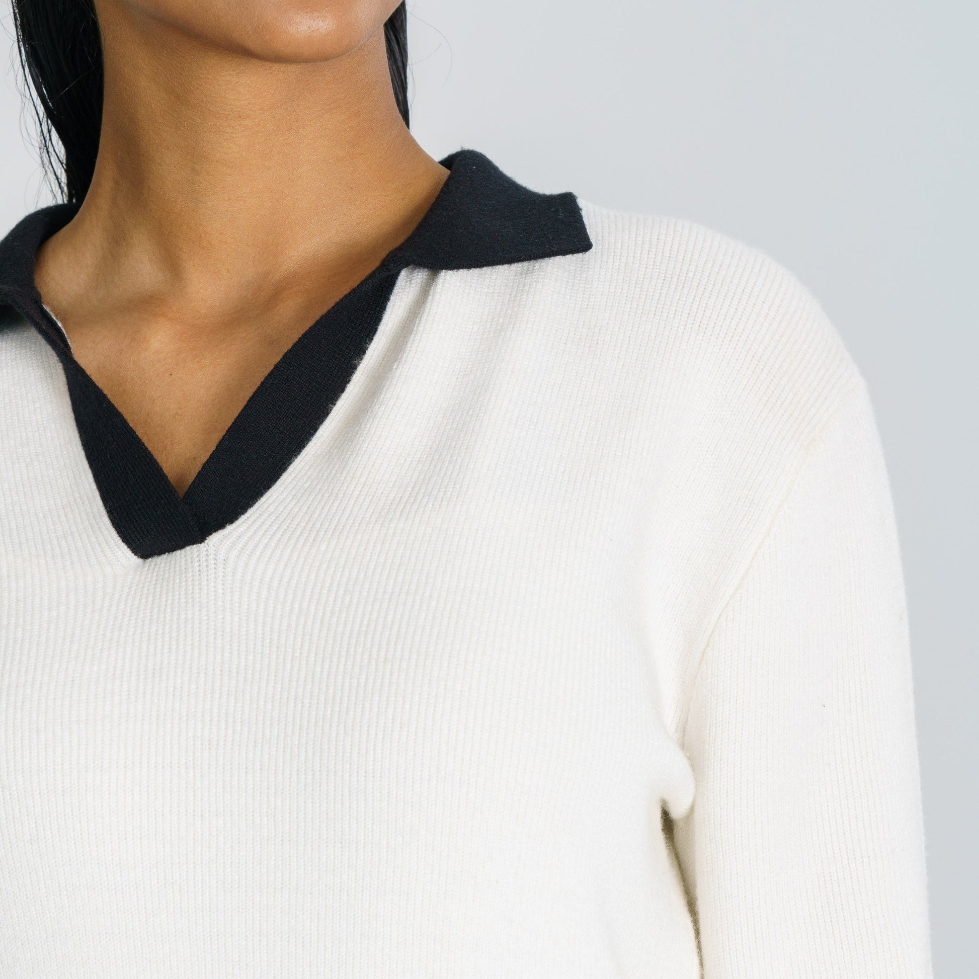 Stay stylish and cozy with this black and white sweater pullover. Crafted from a blend of viscose, nylon, and PBT, it offers a soft and comfortable fit. Featuring a classic V-neckline and collar, this versatile piece is perfect for regular wear. Add a touch of elegance to your wardrobe with this timeless design.