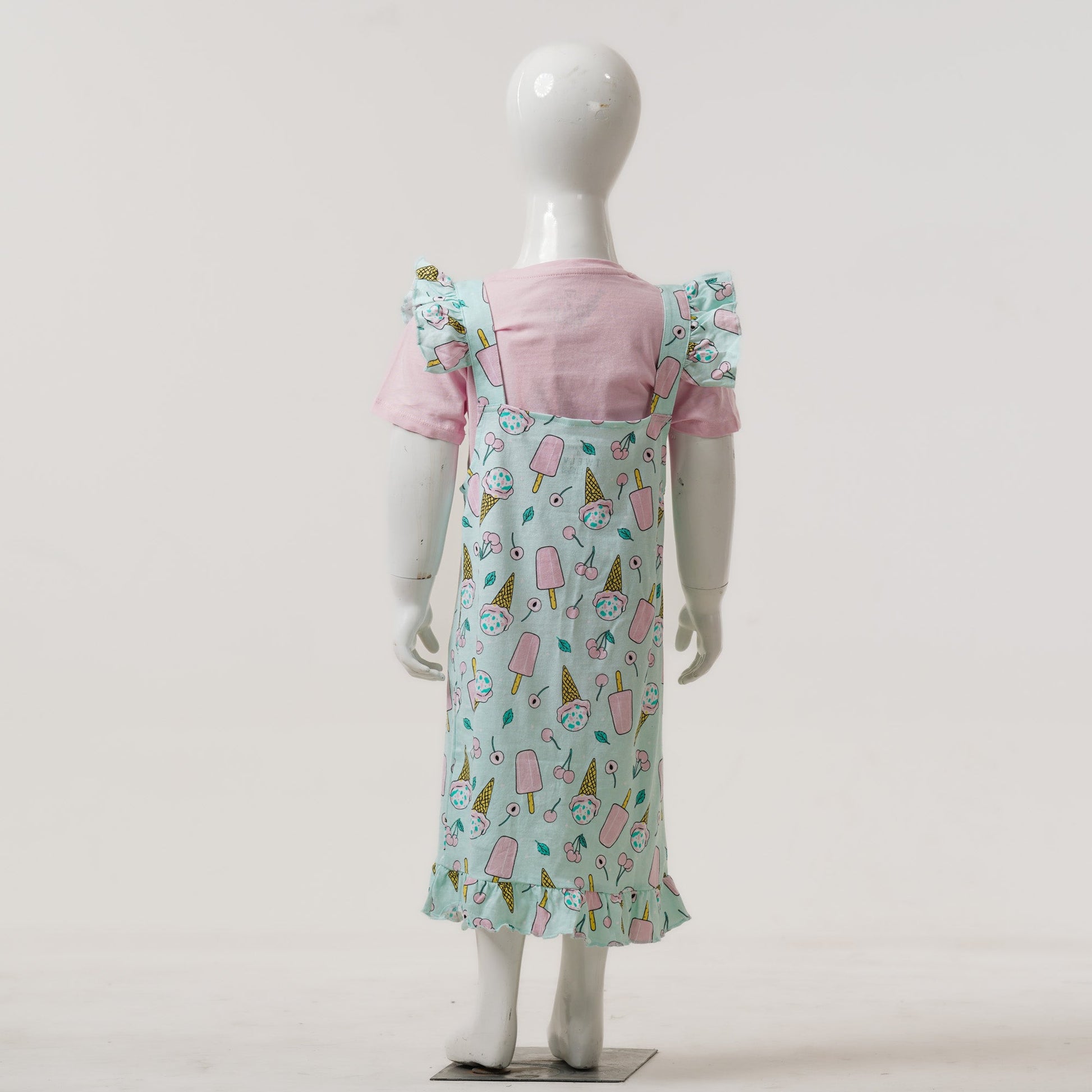 Sweet and stylish romper set for baby girls, made from 100% cotton with soft 160 GSM fabric. The pink and aqua shades add a playful touch while ensuring comfort and breathability. Perfect for daily wear and casual outings.