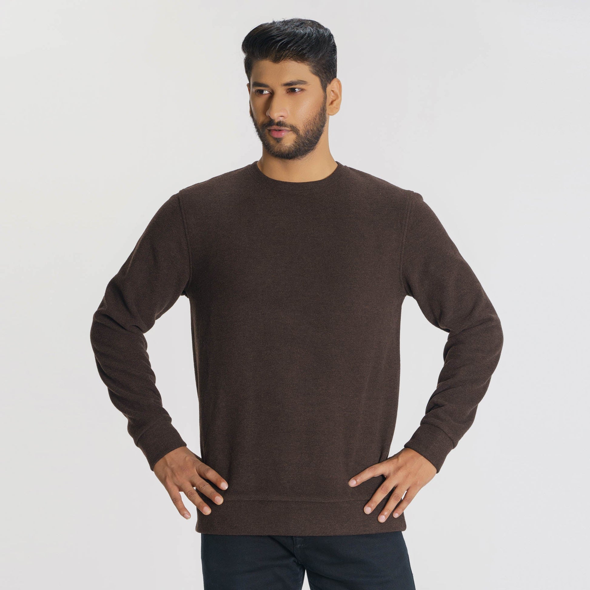 This men’s brown sweatshirt offers style and comfort with its high-quality fabric blend of polyester, rayon, and wool spandex. Designed in a regular fit, it’s perfect for layering or wearing on its own for a cozy, casual look. Ideal for cool-weather days, this sweatshirt combines durability with softness.