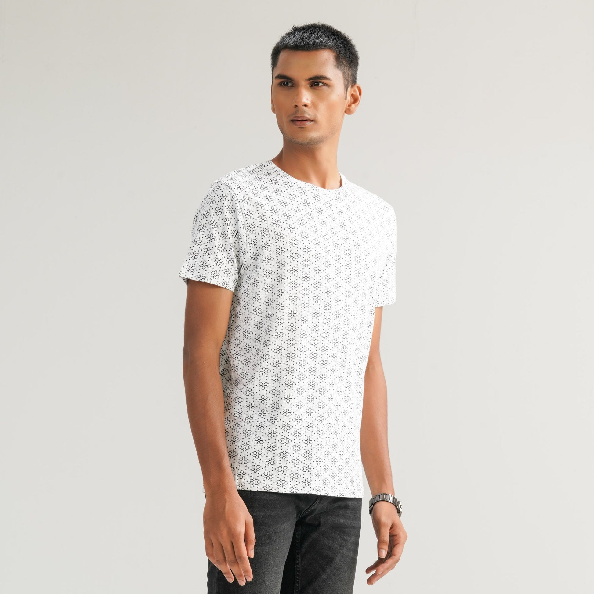 Slim-fit men’s t-shirt in a black and white design, made from 100% cotton single jersey for a soft and breathable feel. The all-over print adds a bold, modern touch, while the lightweight fabric ensures day-long comfort. Perfect for casual wear or pairing with jeans for a smart, relaxed look.