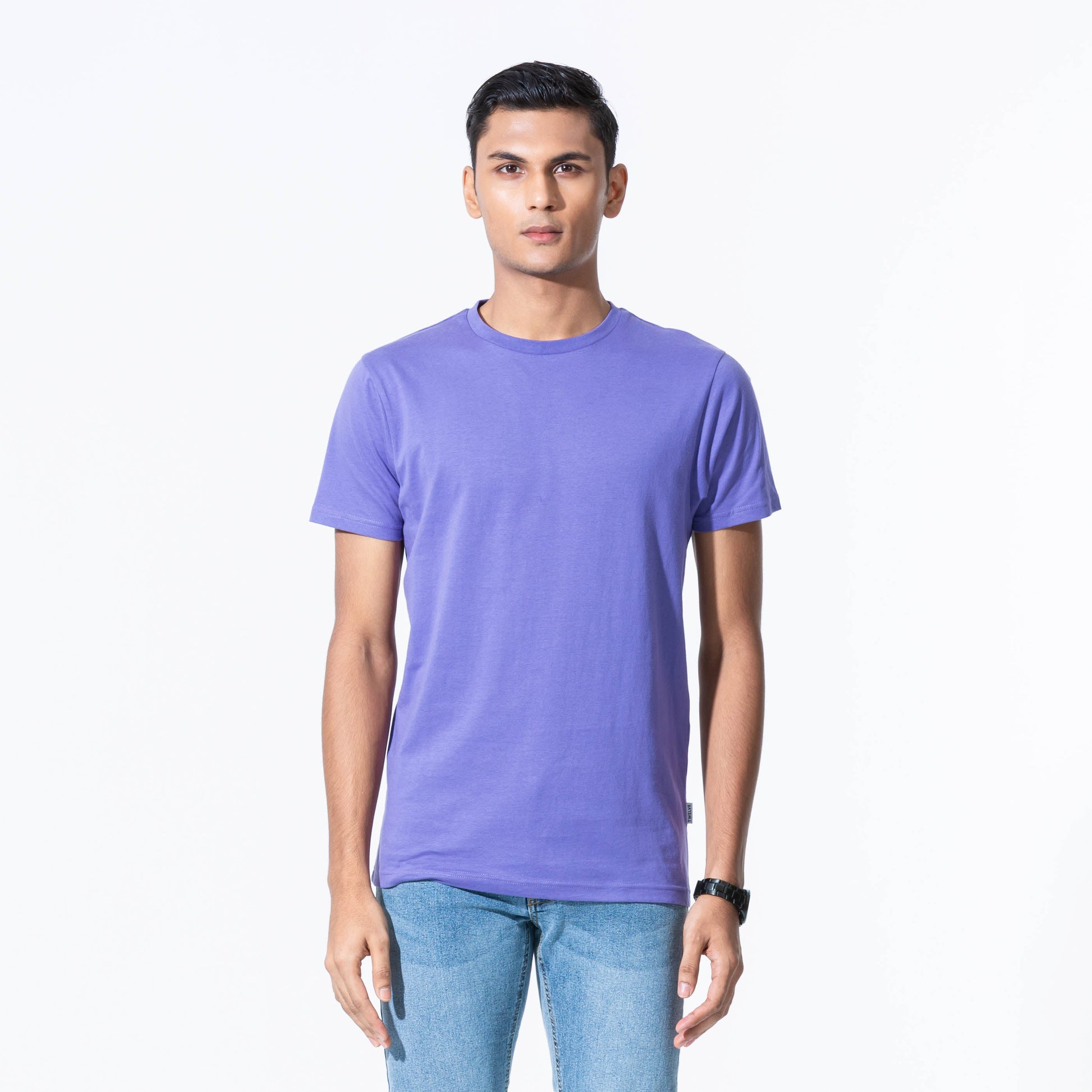 This slim-fit mens Light Purple t-shirt offers a classic look with a round neck and a minimal design. Made from 100% combed cotton, it provides a soft hand feel and exceptional comfort for all-day wear. The flag label at the side seam adds a subtle touch of detail, making it a perfect staple for any casual wardrobe.