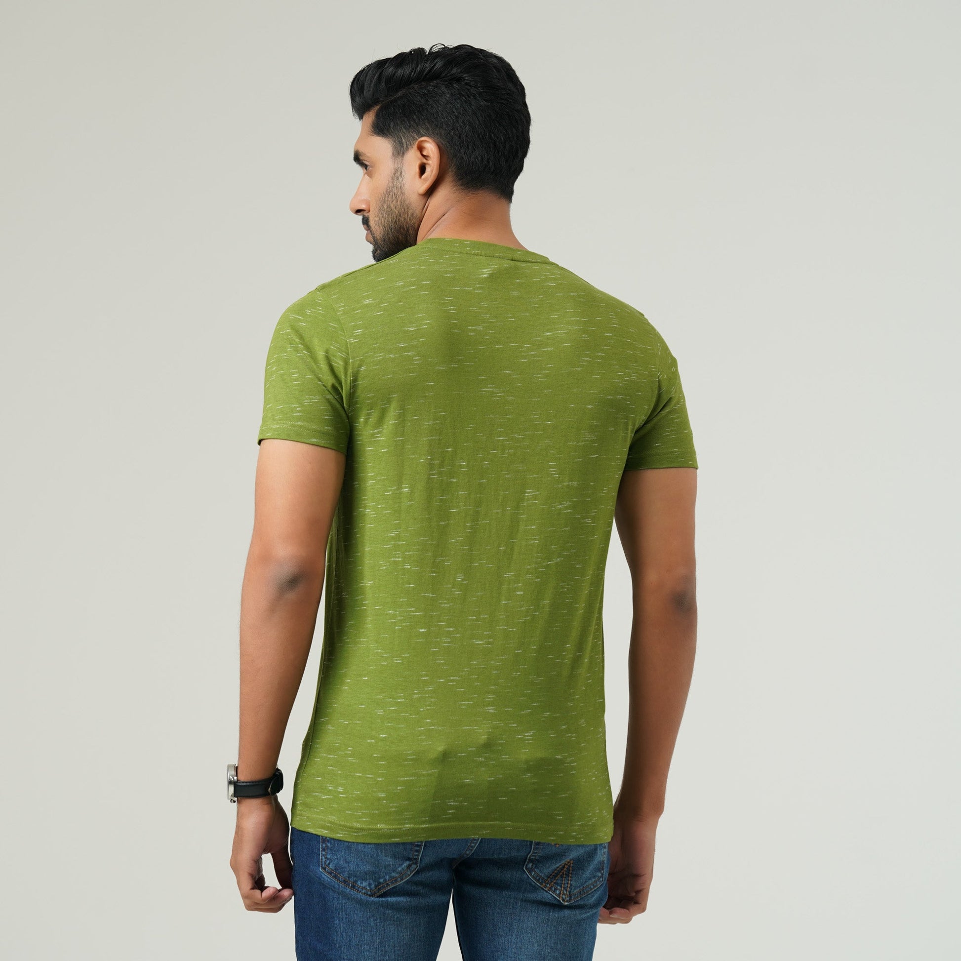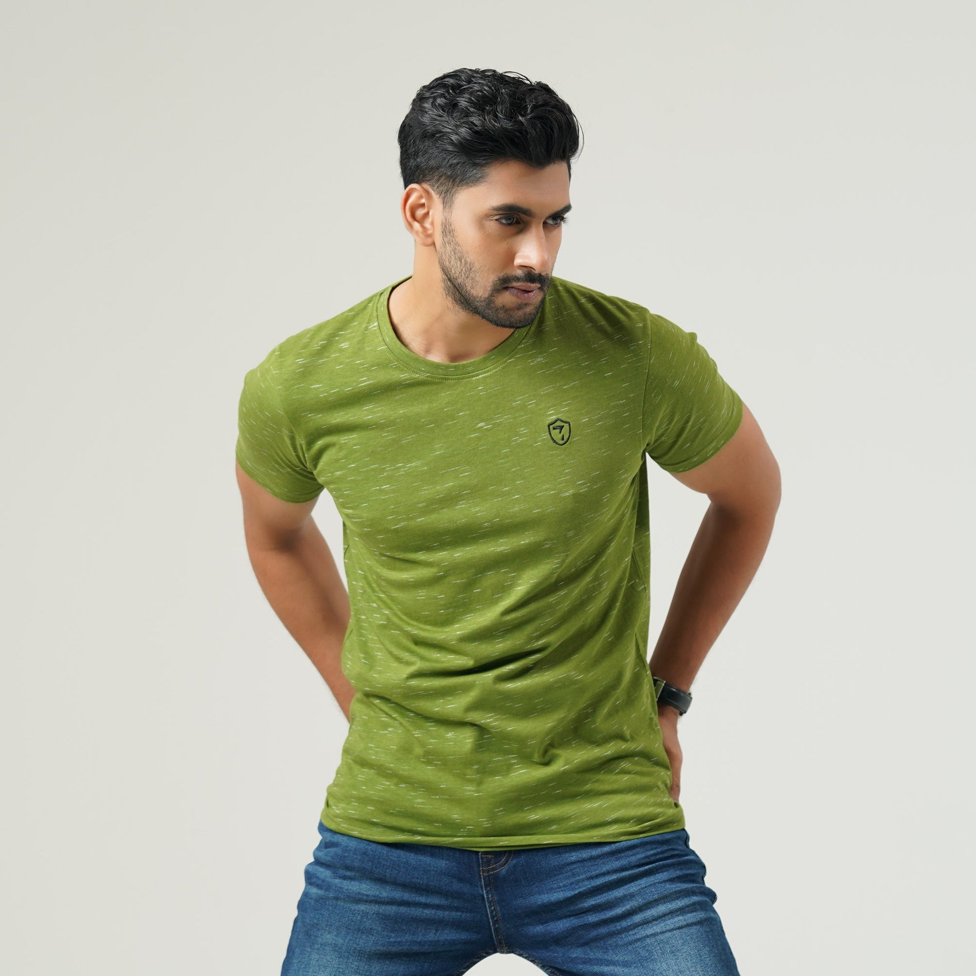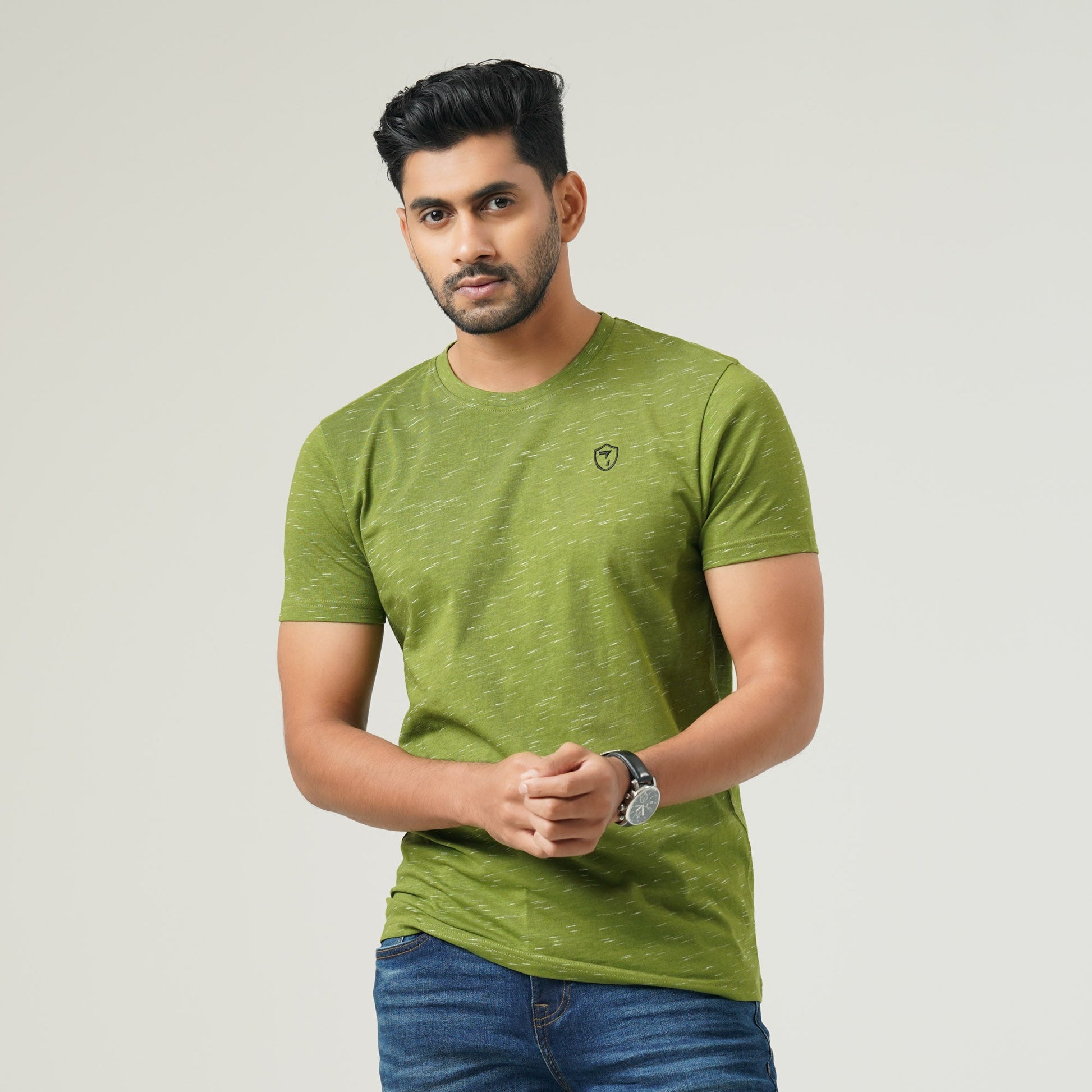 Elevate your casual wardrobe with our mens slim fit t-shirt in olive green. Made from 100% cotton yarn-dyed inject fabric, it offers a soft and comfortable feel. The small logo embroidery at the chest adds a touch of sophistication, making it perfect for both relaxed outings and laid-back gatherings. This versatile piece is designed to complement any look with effortless style.