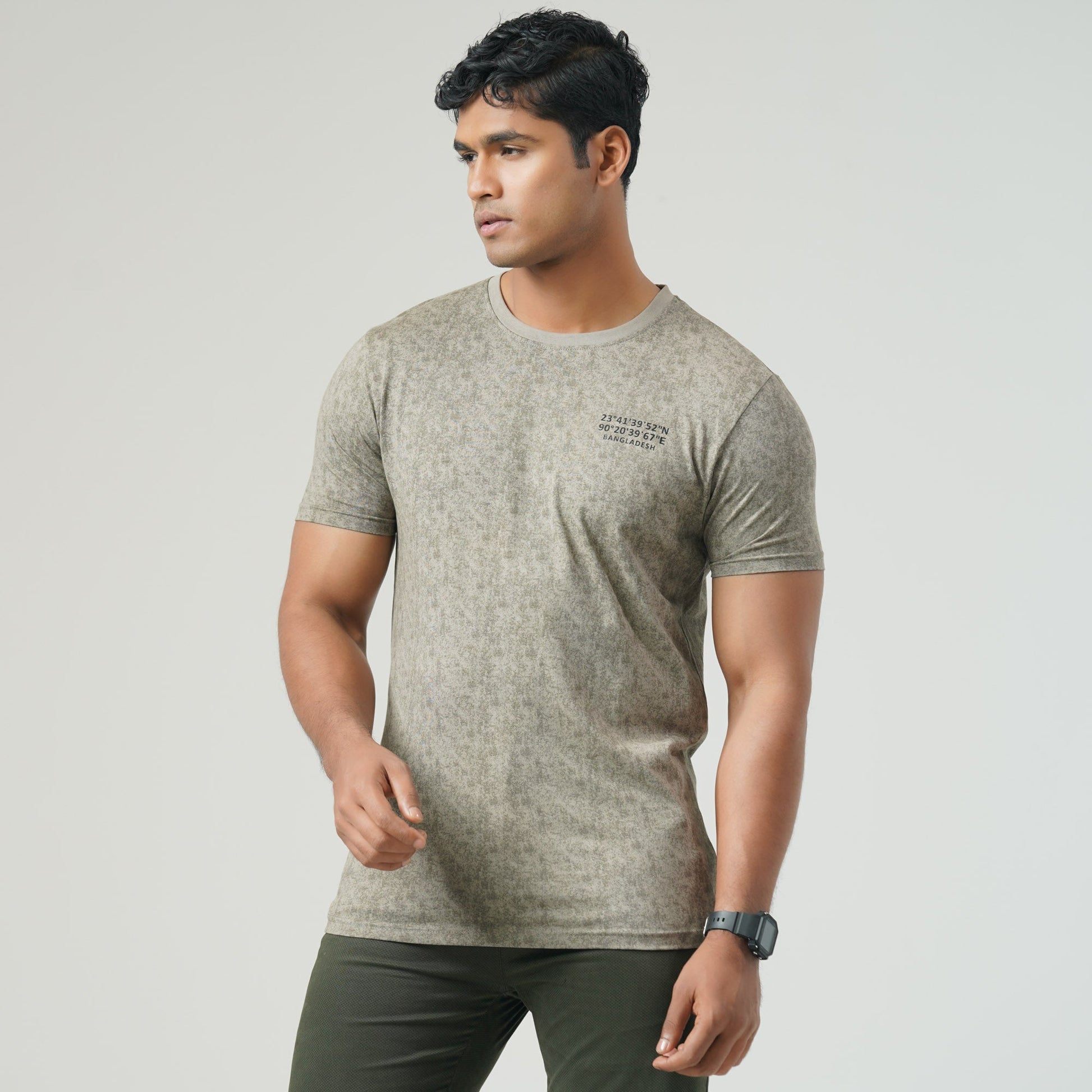This men’s slim-fit t-shirt features a stylish acid wash effect with a bold typo print on the chest, adding a modern edge to your casual look. Crafted from compact cotton single jersey (170 GSM), it offers a soft, breathable feel for all-day comfort. Perfect for everyday wear, this trendy t-shirt effortlessly blends style and ease.
