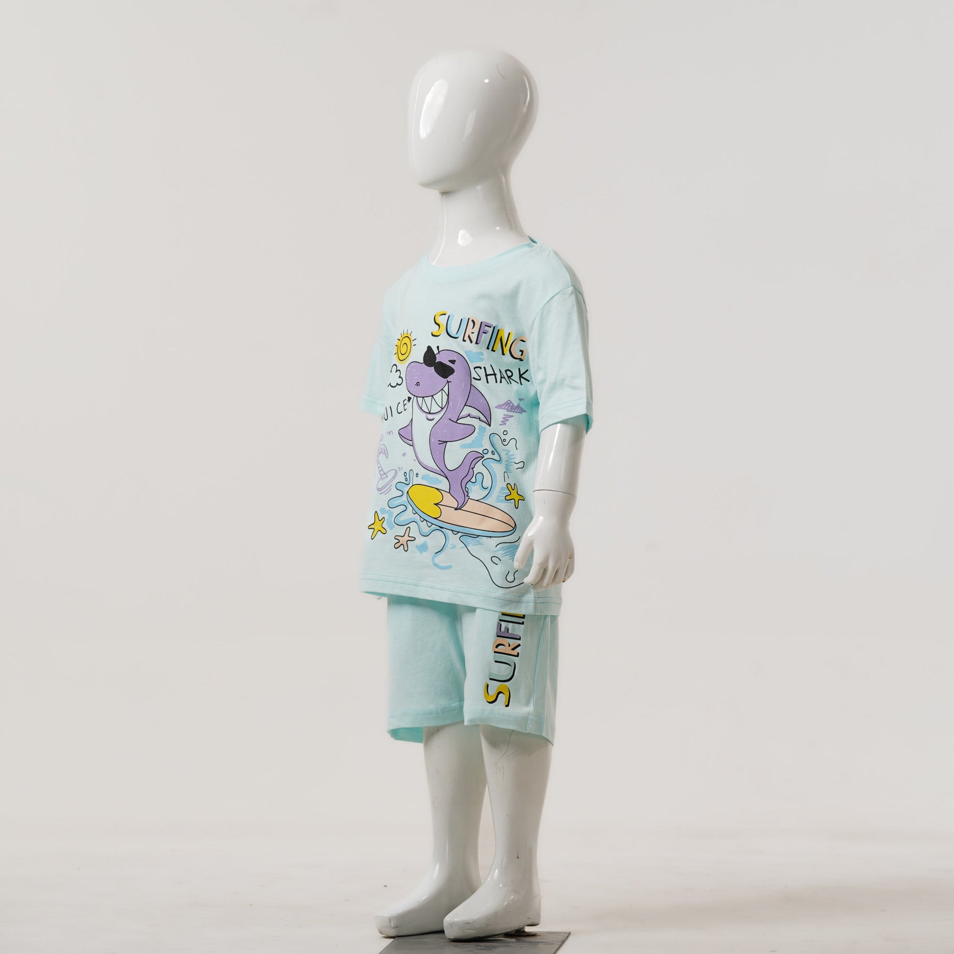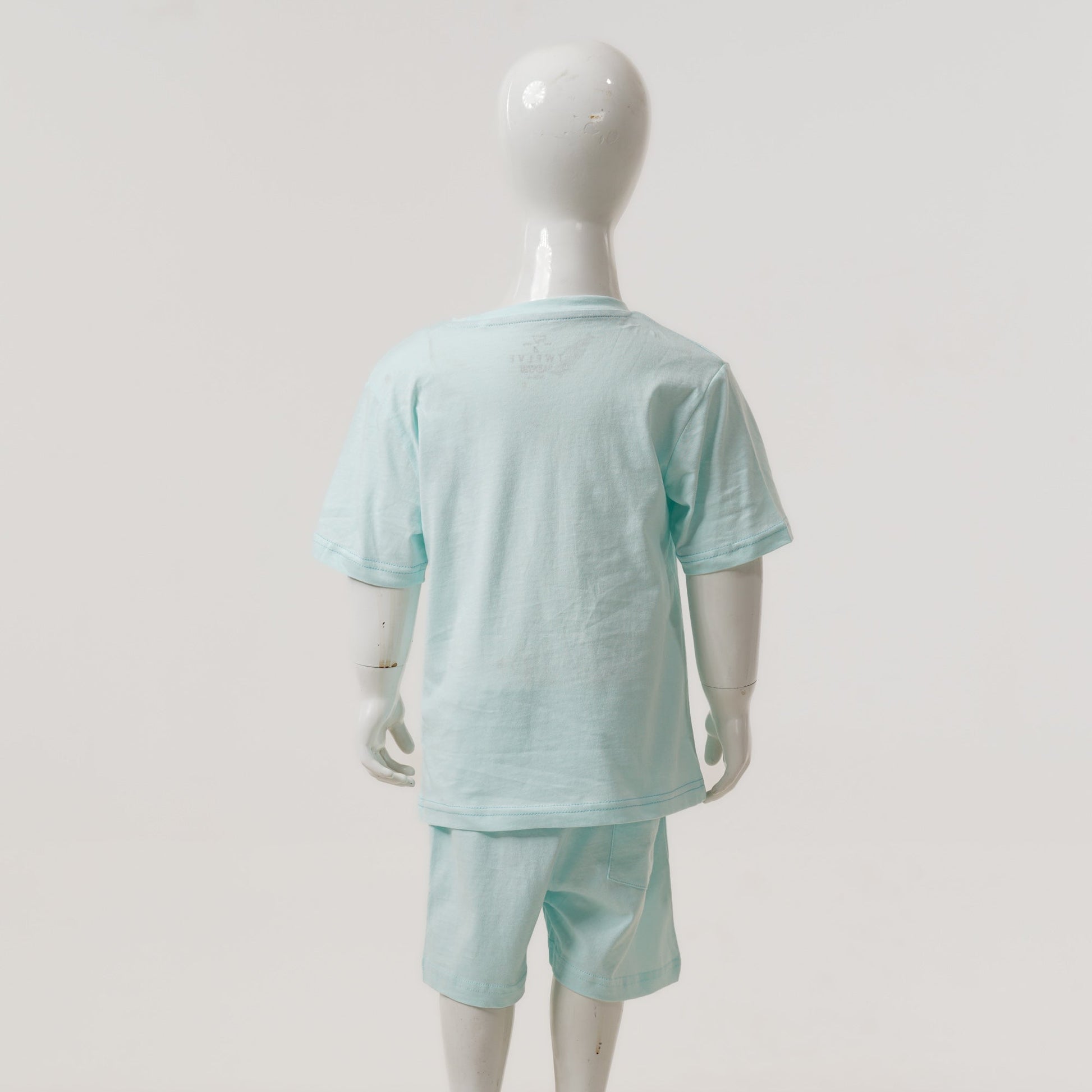 Cute baby boys t-shirt & pant set in aqua and sky shades, crafted from soft blended fabric. Lightweight and comfortable, it ensures ease of movement for your little one. A perfect pick for daily wear and casual outings.