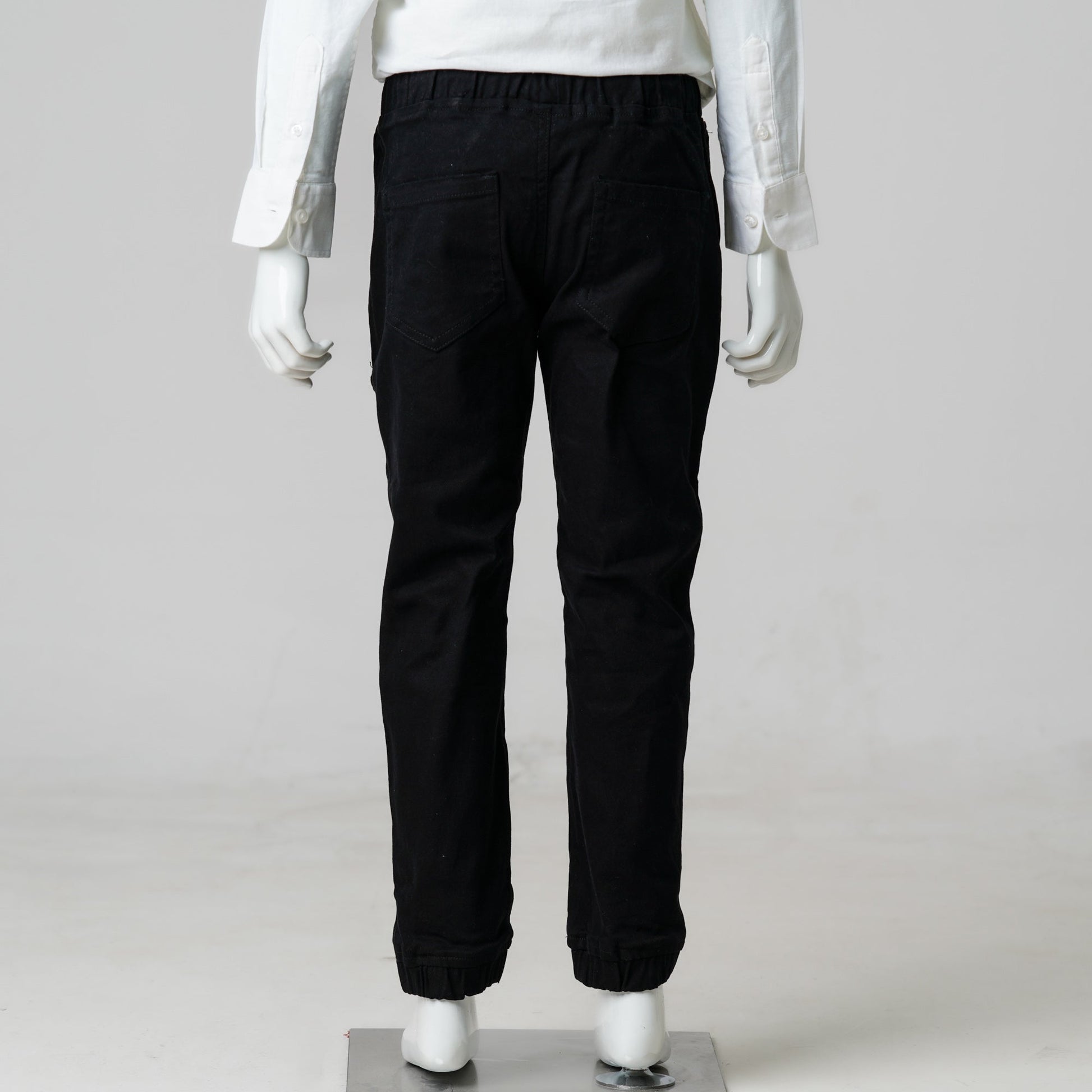 Boys’ chino pant in classic black, crafted from 98% cotton and 2% spandex for flexibility and comfort. Designed with an elastic waistband, drawstring closure, and elasticated leg hems for a secure fit. Perfect for everyday wear, school, or casual outings.
