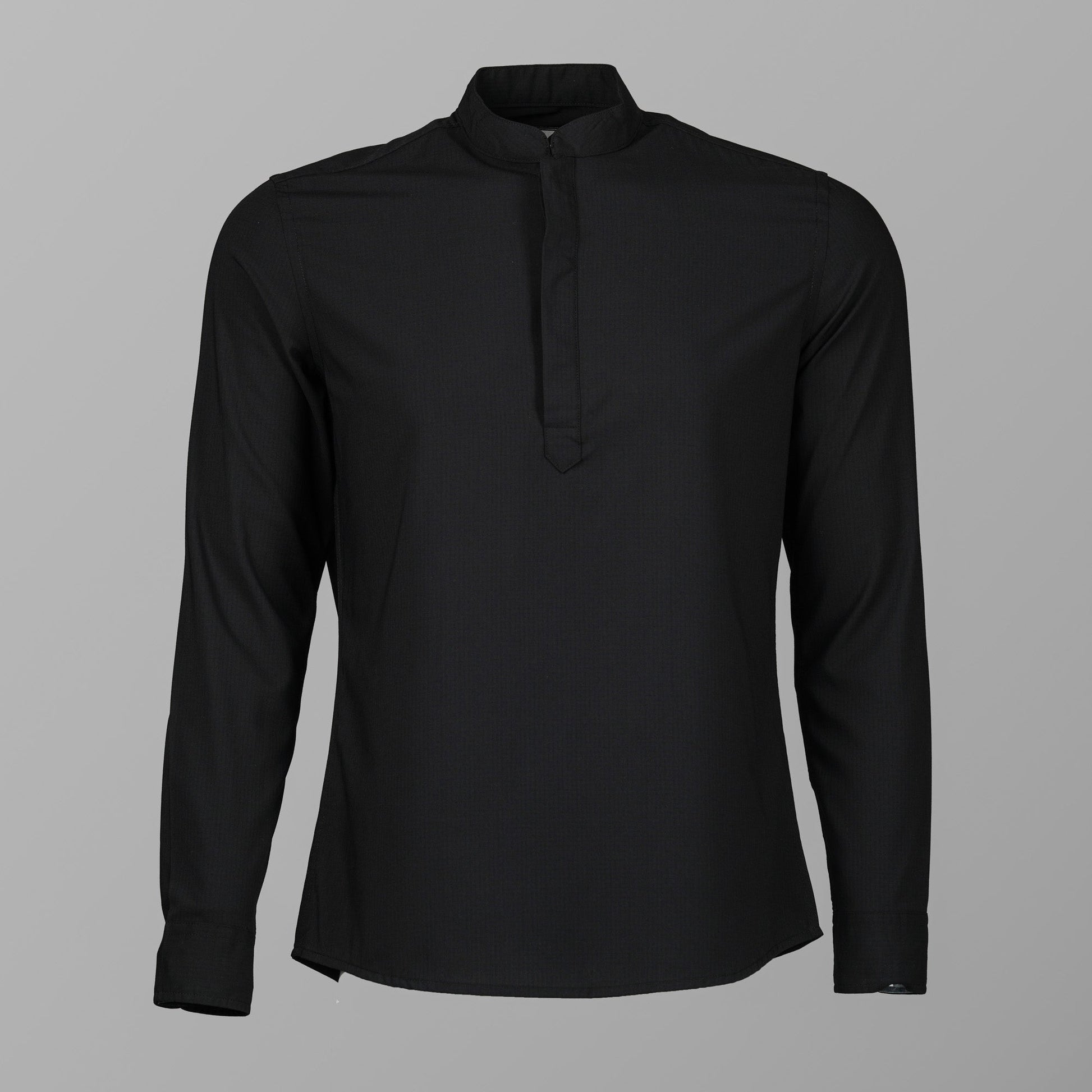 Mens Black Band Collar Shirt