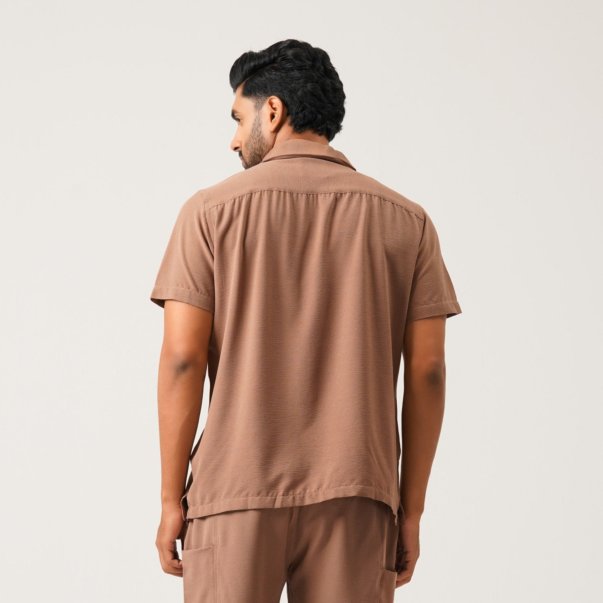 Crafted from a comfortable knit pique fabric blend of 95% polyester and 5% spandex, this short-sleeved mens shirt is perfect for casual and semi-formal occasions. The soft, stretchy material offers a great fit and ease of movement.