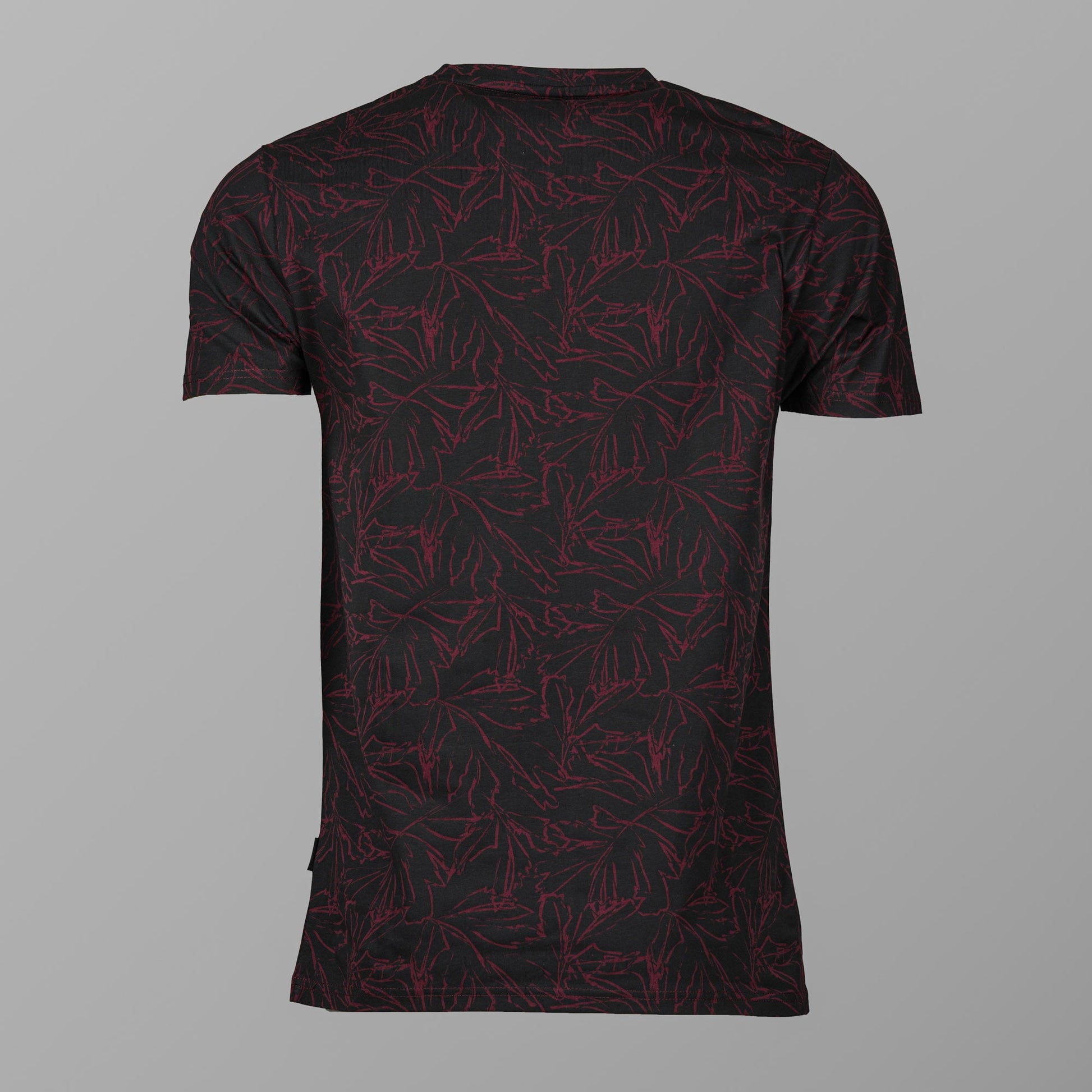 Elevate your casual look with our maroon slim fit T-shirt. Made from a soft cotton-poly blend, this T-shirt is designed for a comfortable, stretchable fit. The all-over print and a subtle flag label at the side seam add a touch of modern style. It's the perfect choice for a sleek, contemporary look.