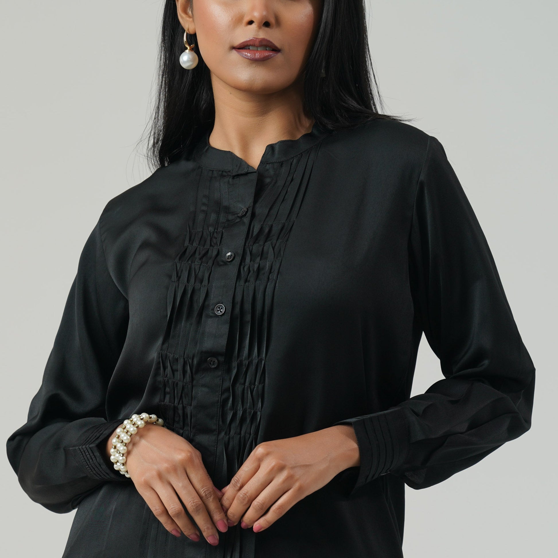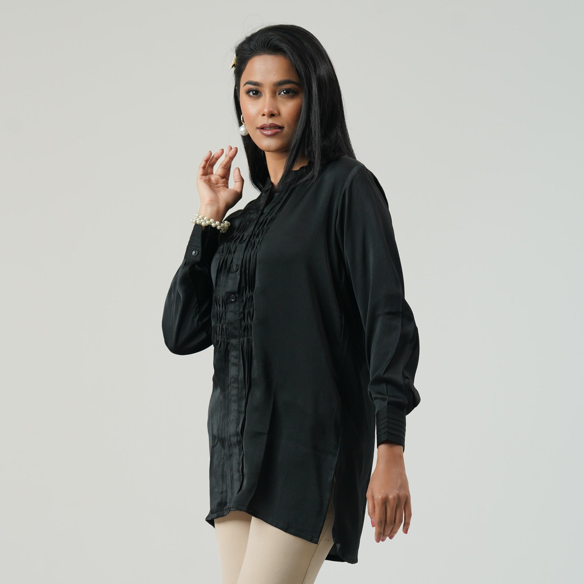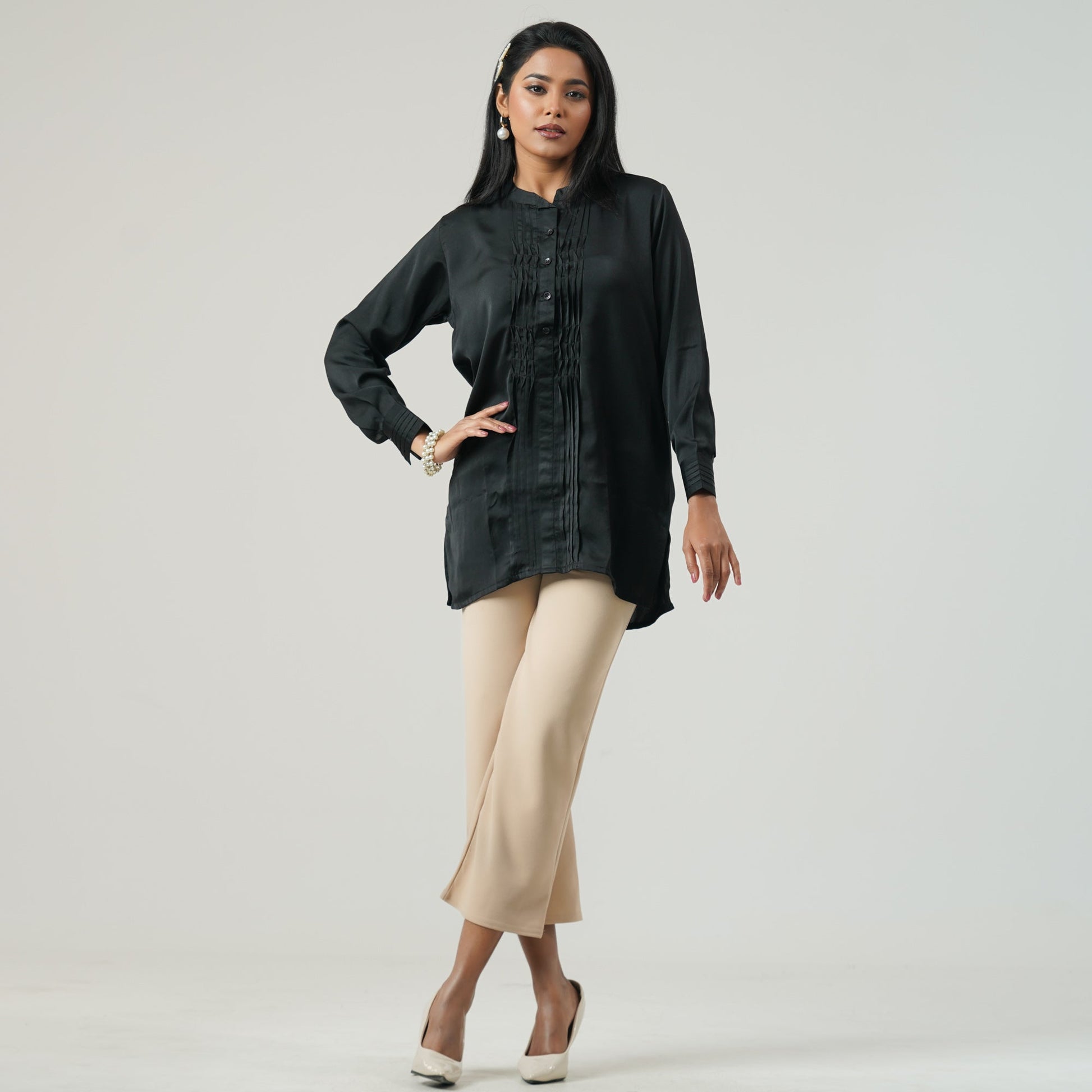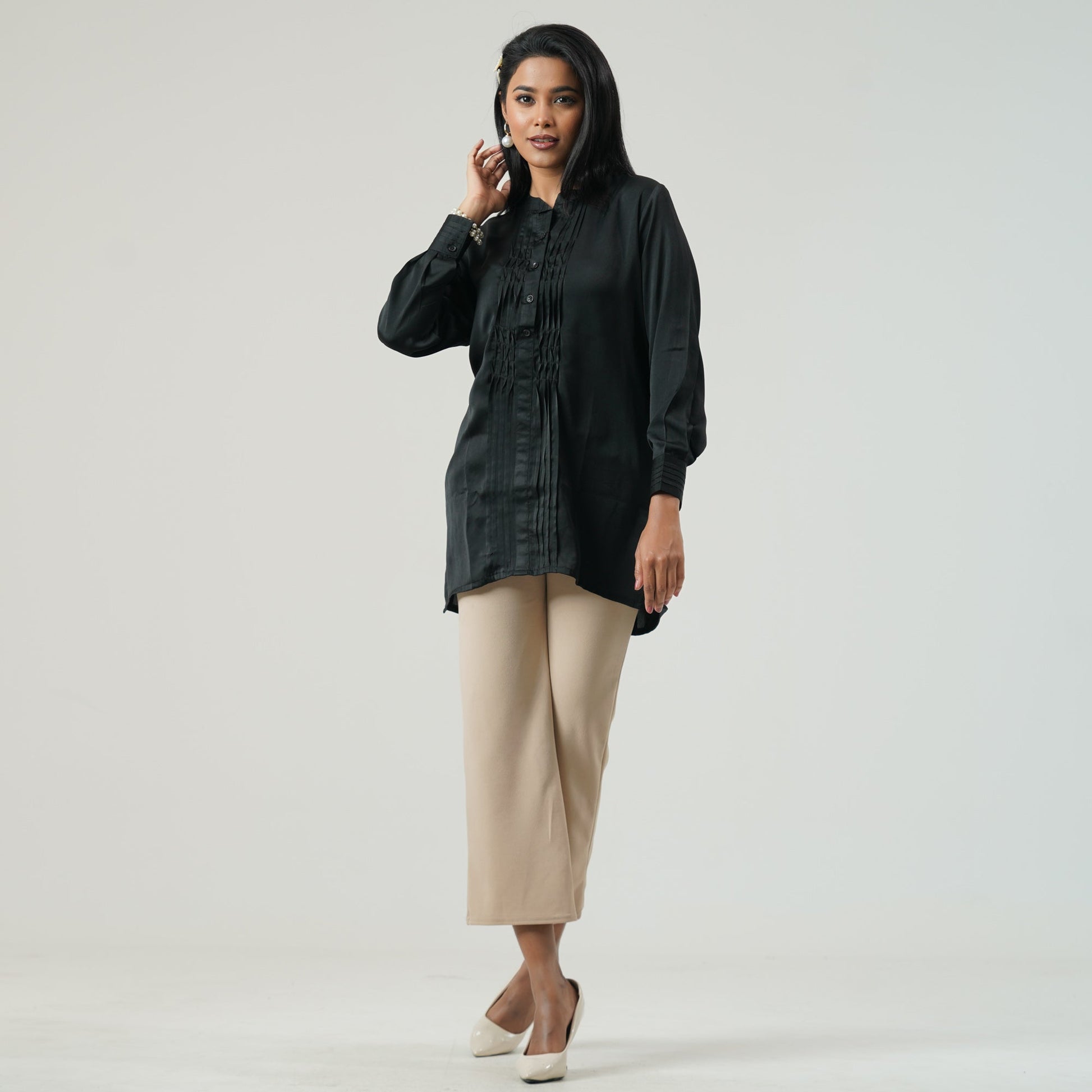 This stylish ethnic top is crafted from soft blended fabric in a refreshing black color. Designed for comfort and elegance, it’s perfect for both casual and festive occasions. Pair it with your favorite bottoms for a graceful look.
