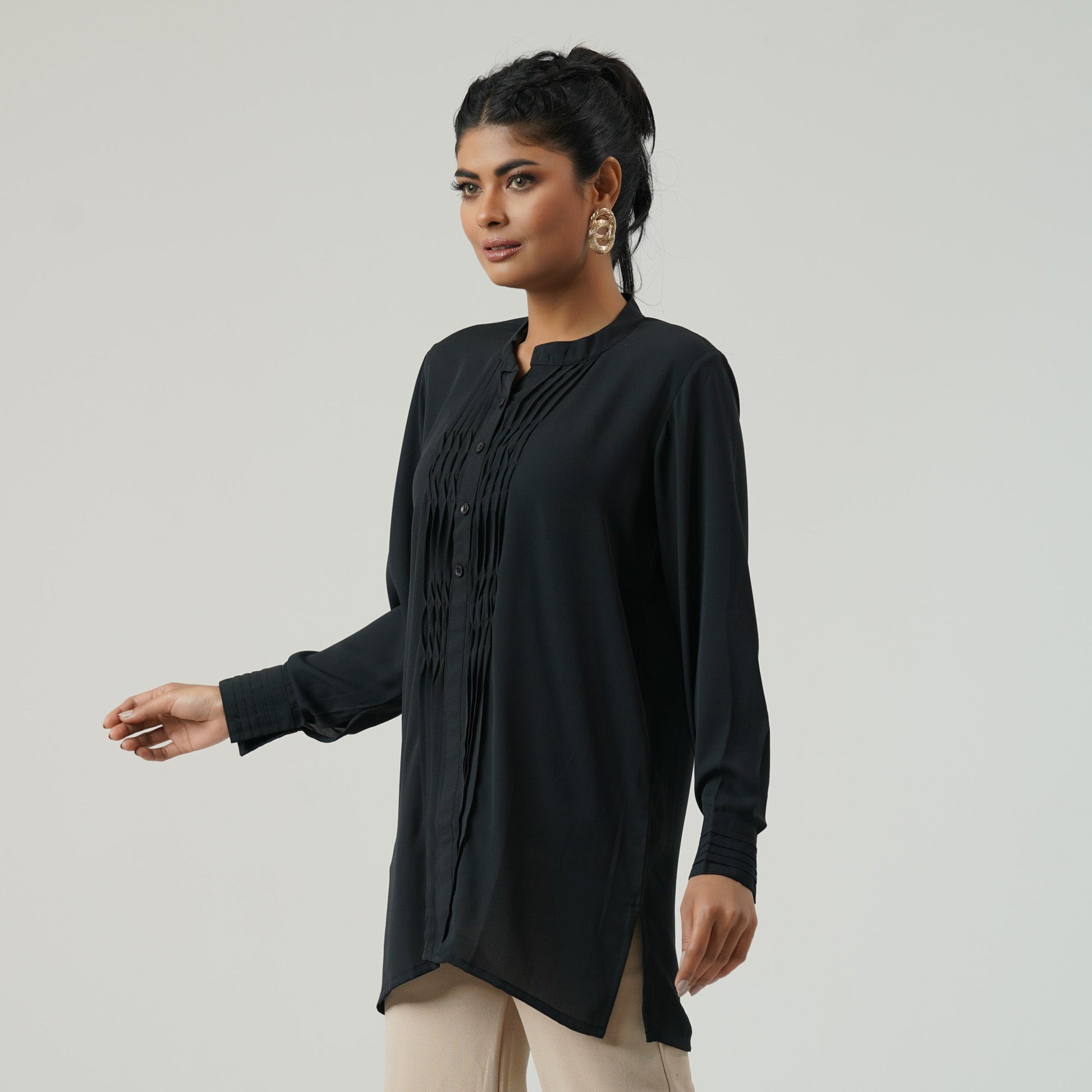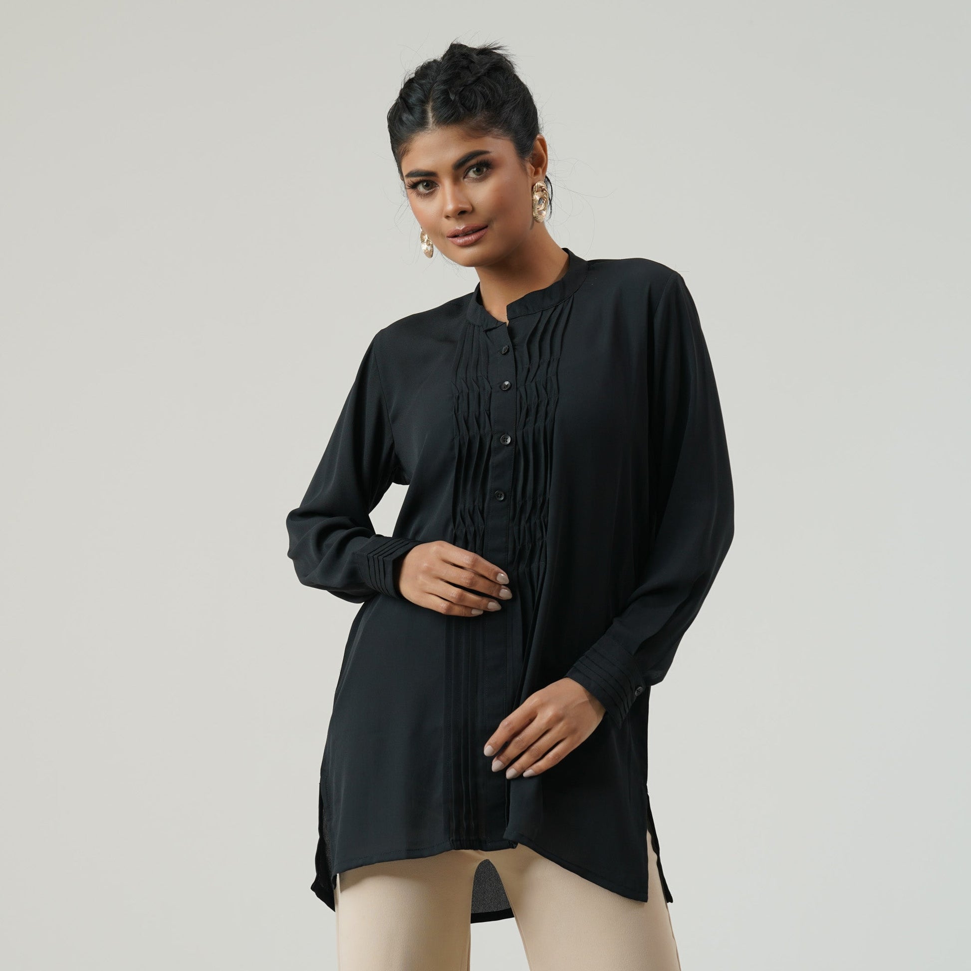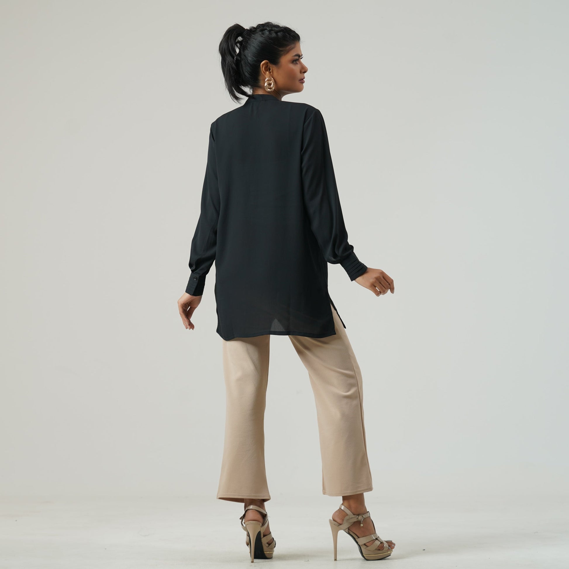 This stylish ethnic top is crafted from soft blended fabric in a refreshing black color. Designed for comfort and elegance, it’s perfect for both casual and festive occasions. Pair it with your favorite bottoms for a graceful look.