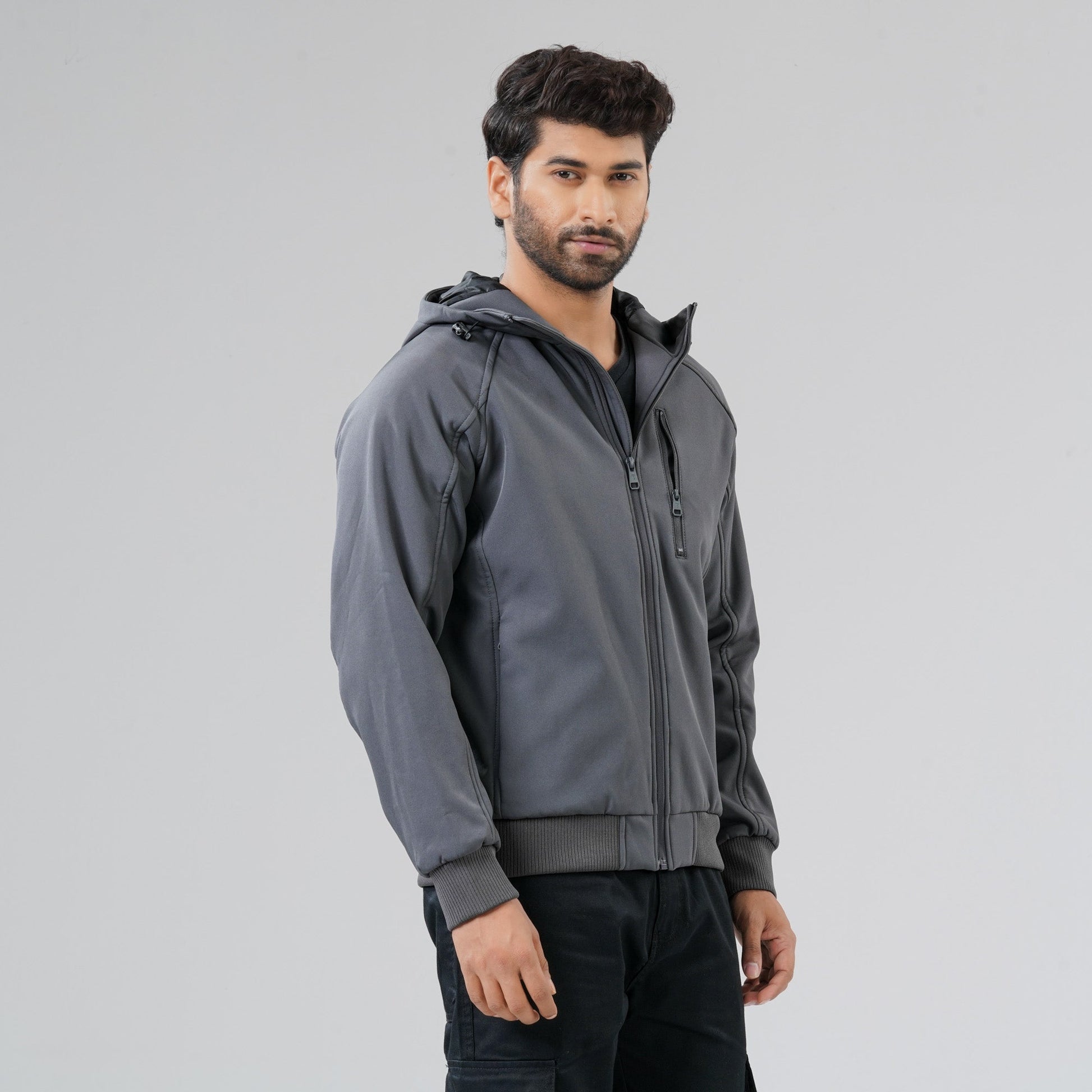 This men’s dark grey hoodie offers a casual look for everyday wear. It features a solid design with a front zipper closure and an attached hood for extra comfort. Crafted for a regular fit, this hoodie is perfect for layering during cooler days.