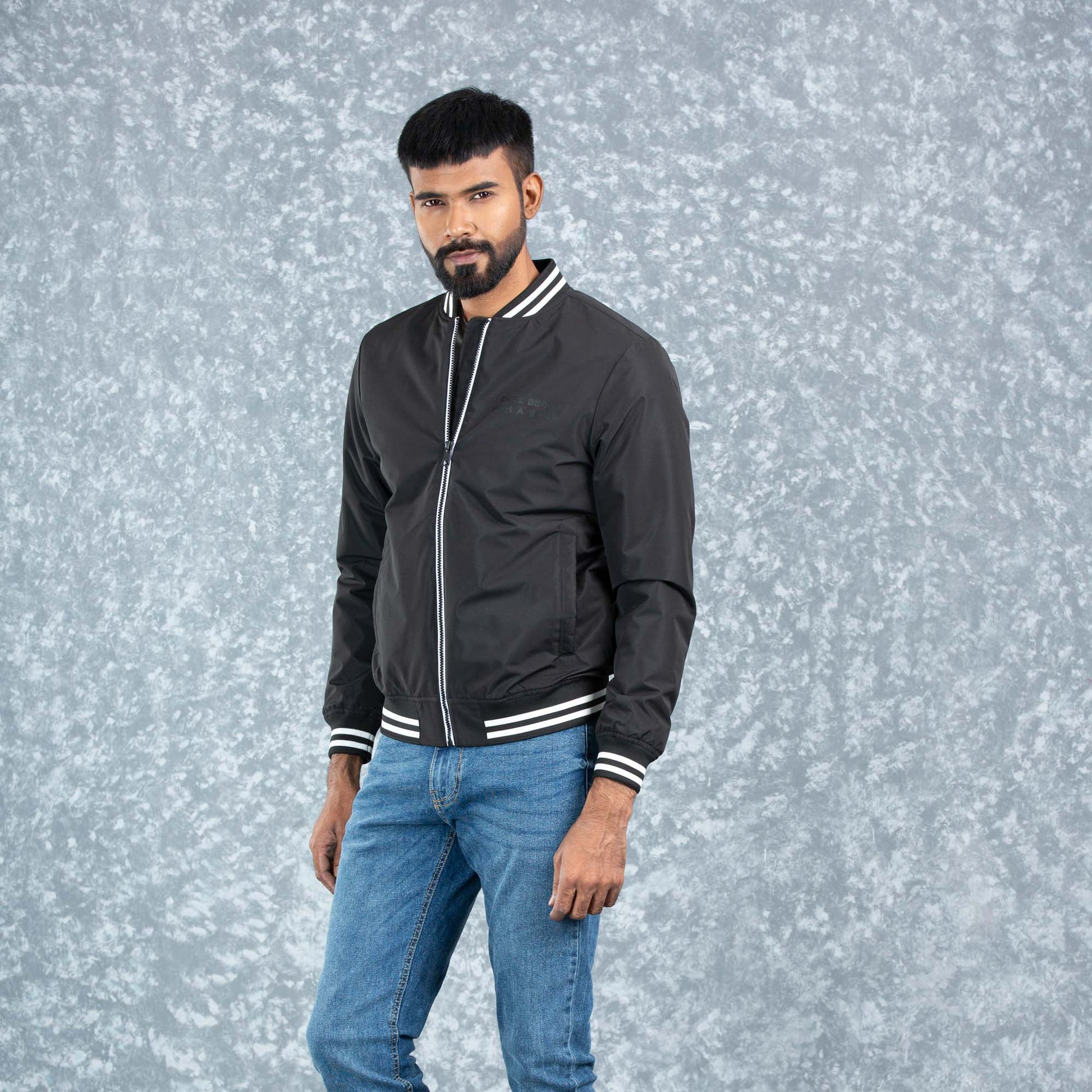 Our Men's Bomber Jacket is perfect for your active lifestyle. Made from durable material, the jacket is lightweight and breathable while still providing warmth. With its sleek black color, you can dress up or down for any occasion.