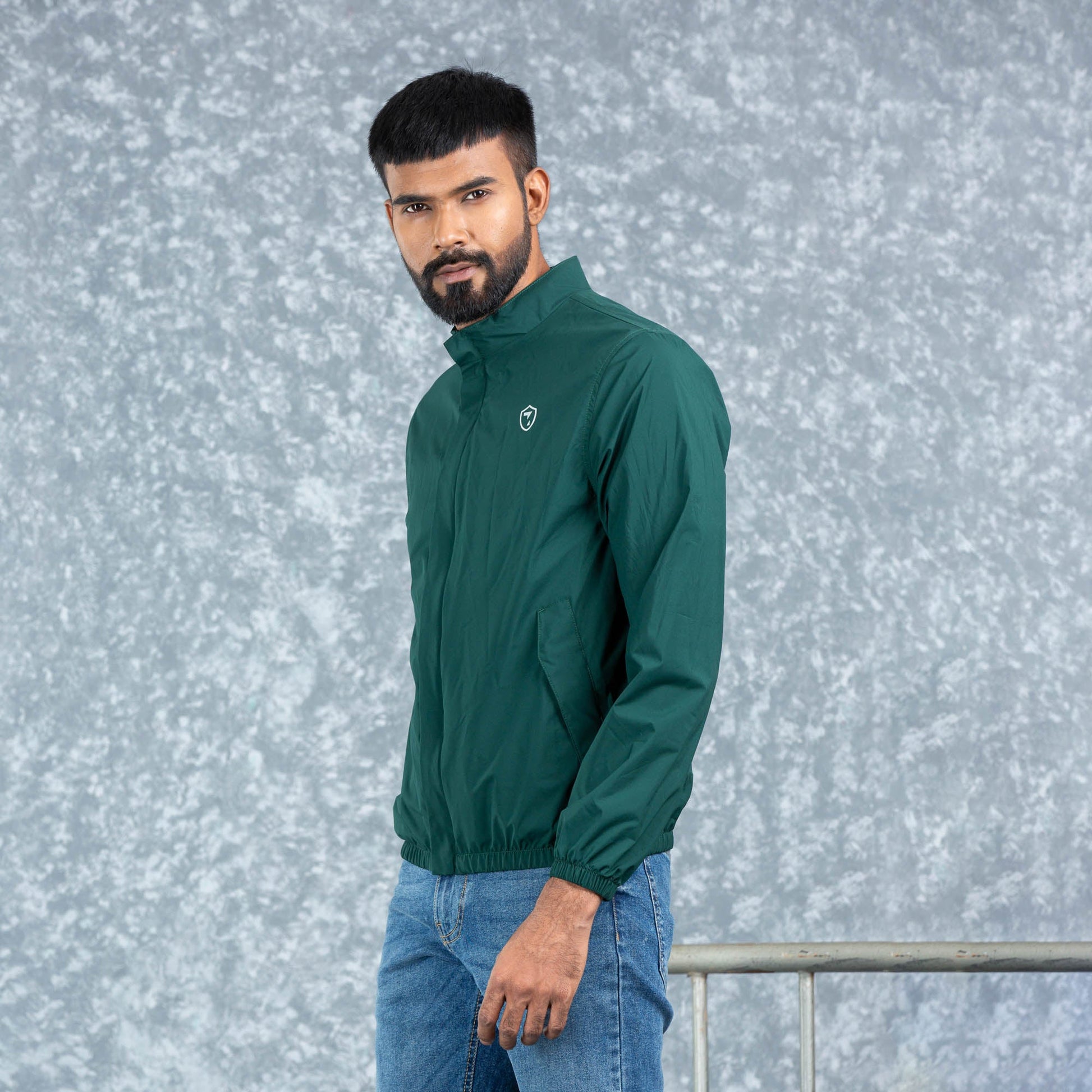 This designer bomber jacket is perfect for men looking to add a stylish and functional layer to their wardrobe. Crafted from premium green polyester pongee fabric, it features a comfortable fit and ample storage pocket. With this jacket, you'll stay warm while looking cool.