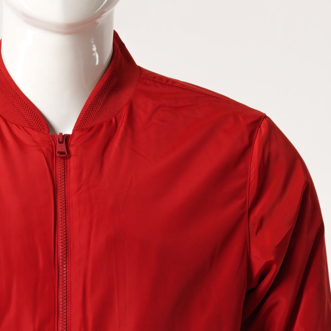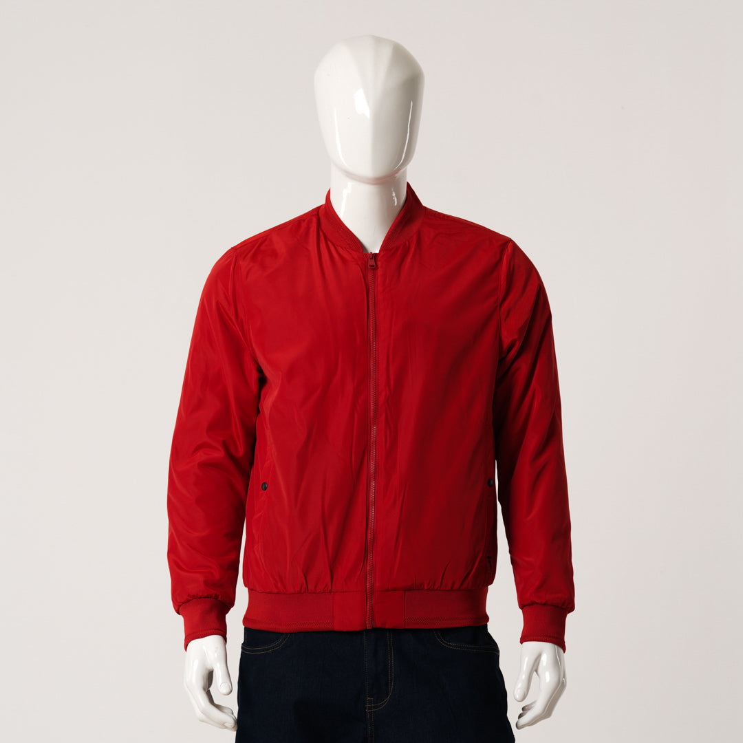 Stay effortlessly stylish with this solid red bomber jacket for men. Featuring a sleek stand collar and two functional pockets, it’s designed for both practicality and modern appeal. The long sleeves and straight hemline enhance its clean silhouette, while the rubber patch detail at the left hem adds a subtle, unique touch. Made from durable polyester with a solid lining, this jacket is a versatile choice for casual outings or everyday wear.