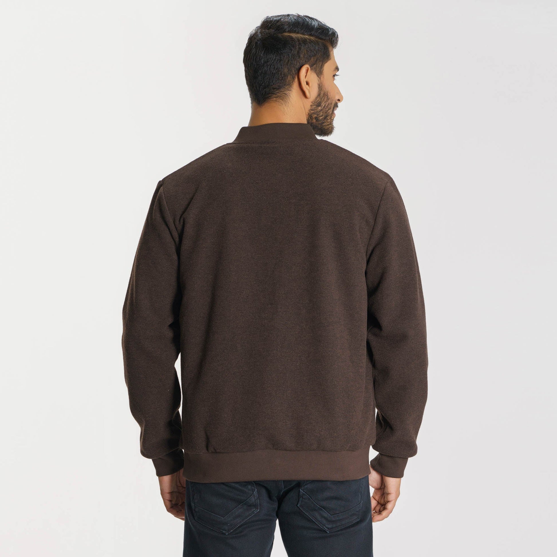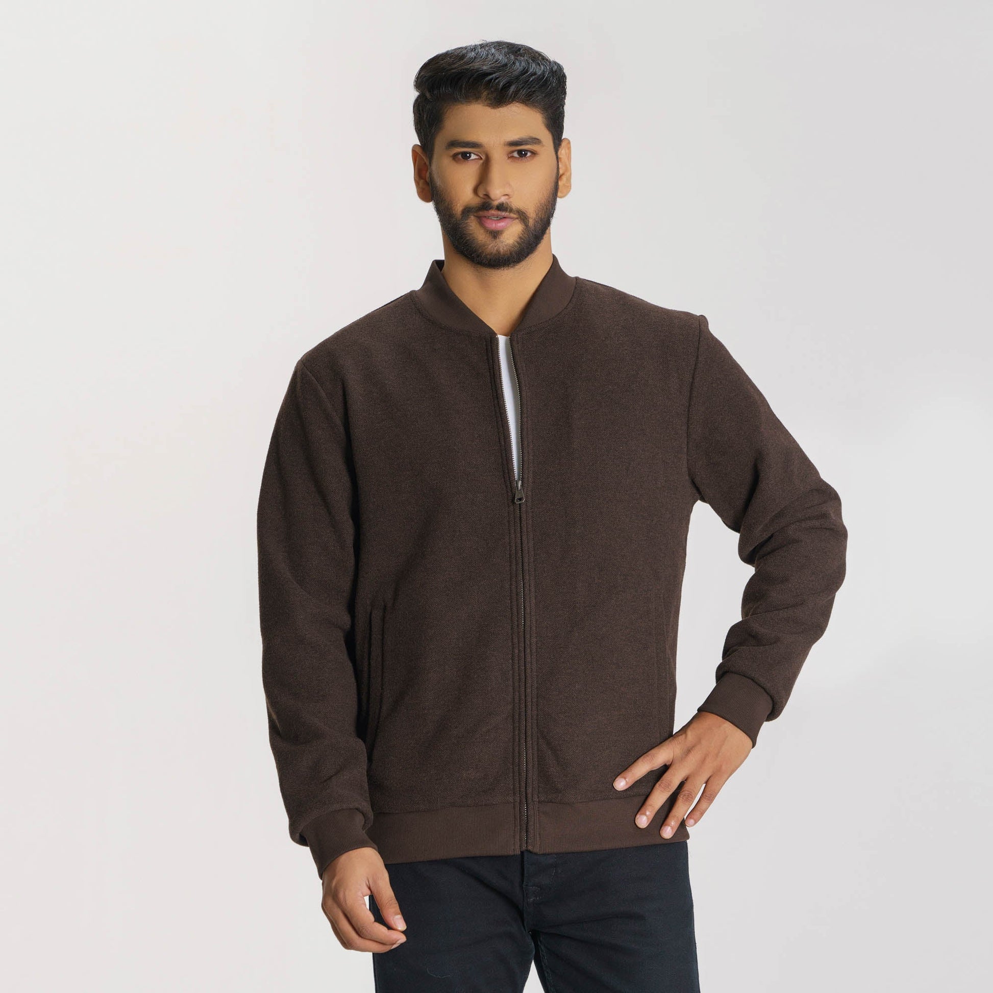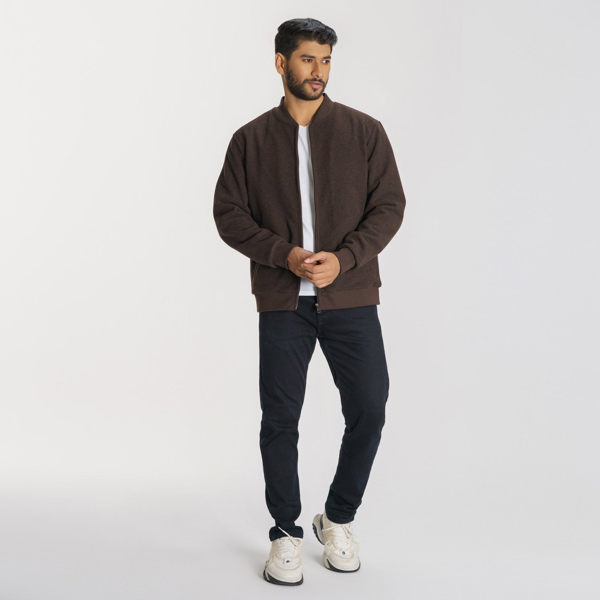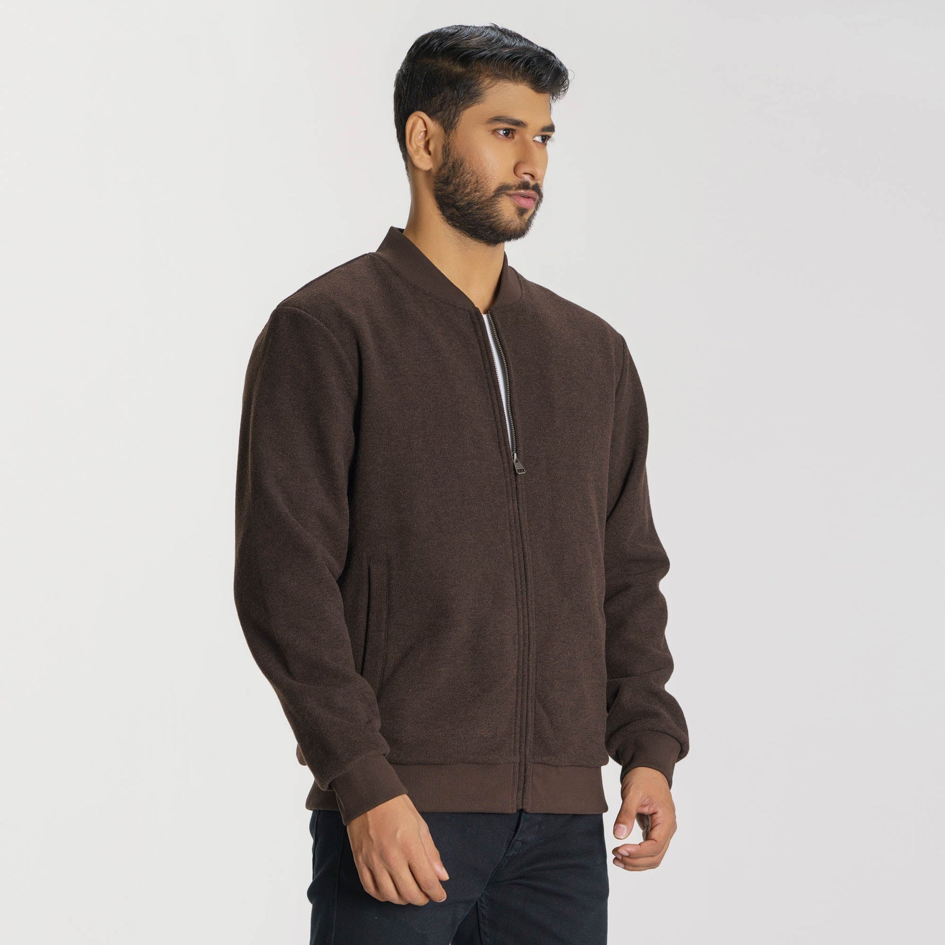 Elevate your style with this solid brown bomber jacket, featuring a stand collar and two functional pockets. Designed with long sleeves and a straight hemline, it offers a sleek look and comfort. The solid polyester lining ensures durability, making it perfect for versatile styling.