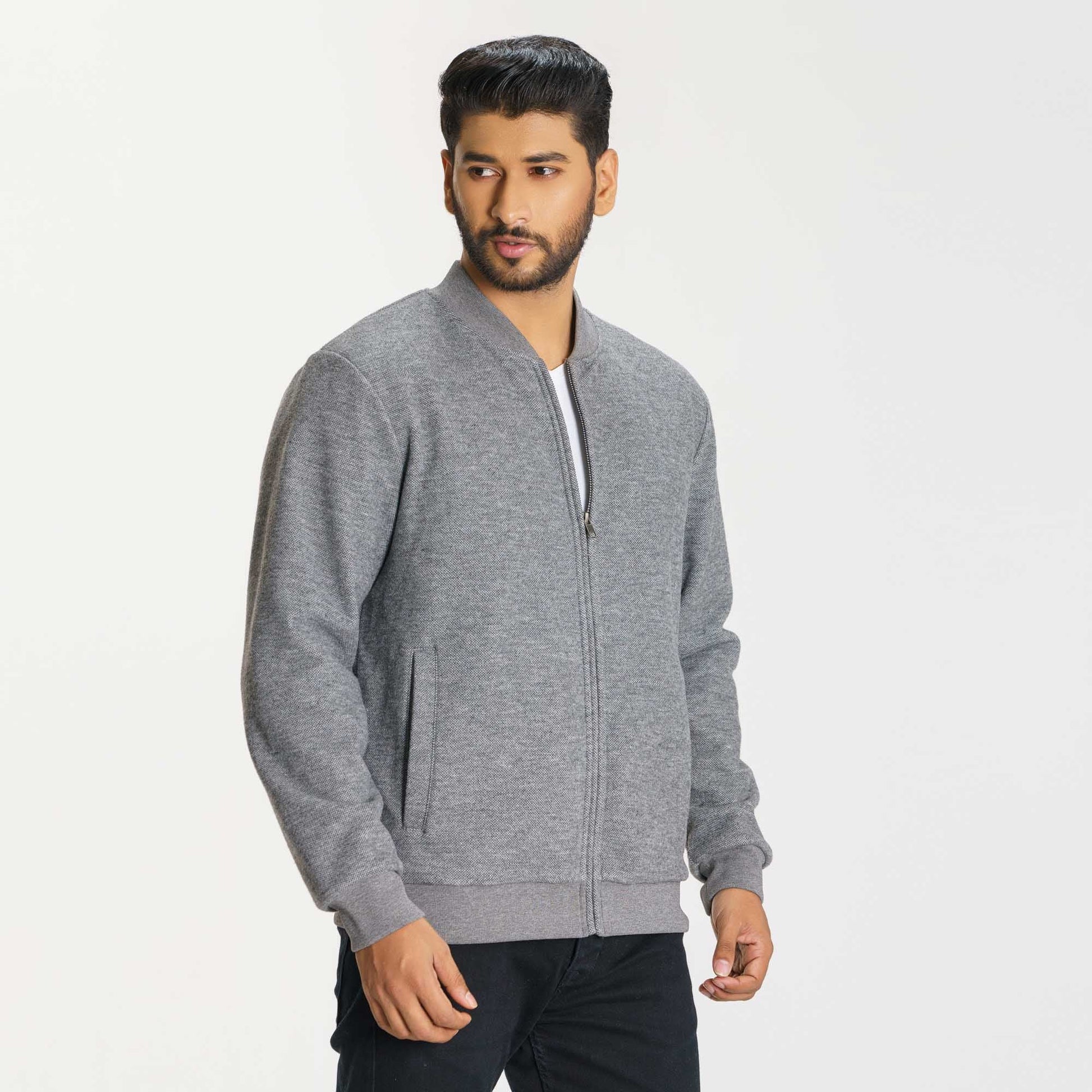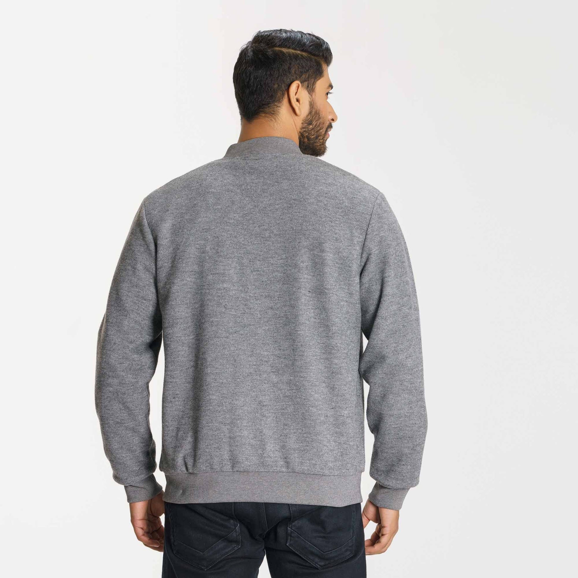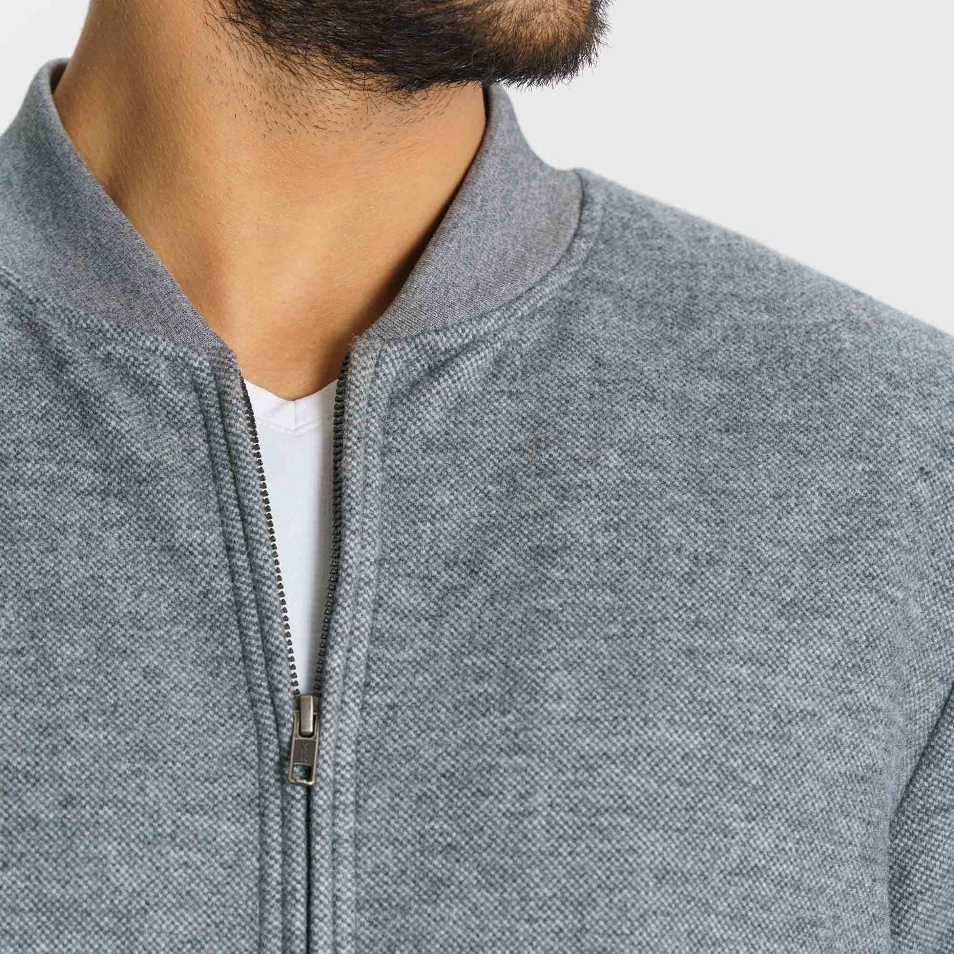 Elevate your style with this solid grey bomber jacket, featuring a stand collar and two functional pockets. Designed with long sleeves and a straight hemline, it offers a sleek look and comfort. The solid polyester lining ensures durability, making it perfect for versatile styling.