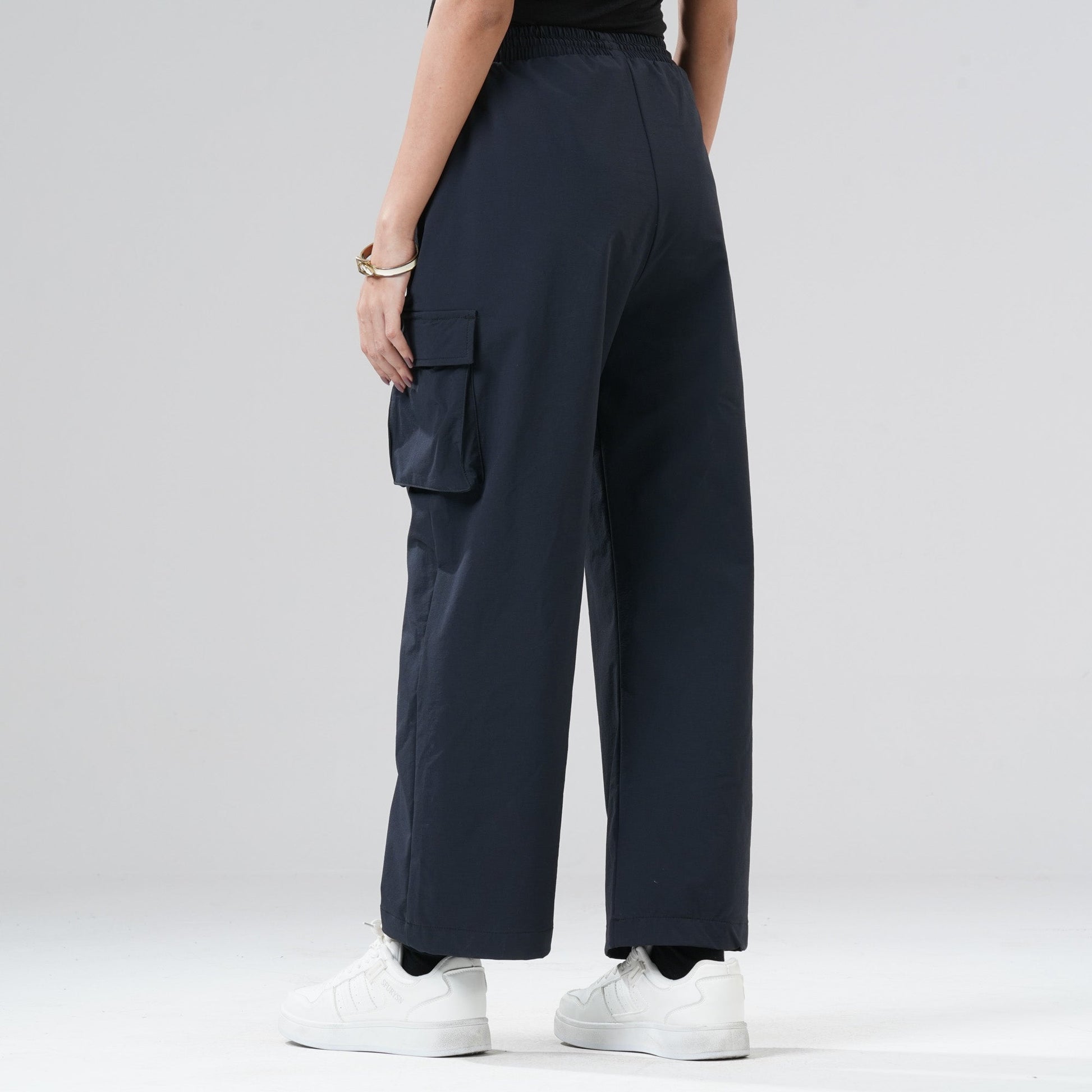 Add comfort and style to winter look with these womens navy joggers, crafted from soft polyester fabric in a regular fit. Designed with an elastic waistband for ease, they feature cargo and waist pockets along with a stylish logo print. Perfect for casual and active winter days.