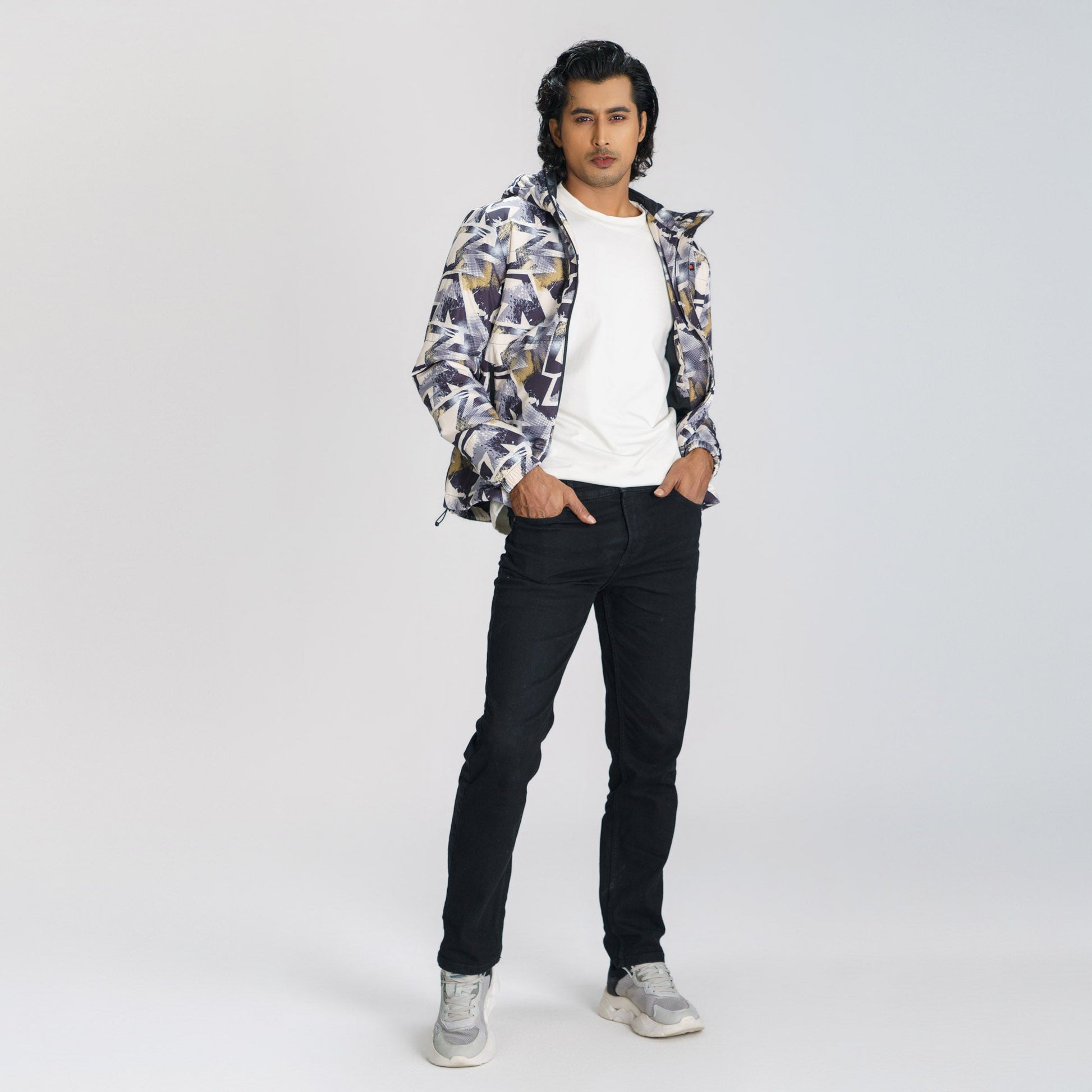 Stay stylish and comfortable with this men's black quilted jacket. Featuring a hood, two functional pockets, and a secure zip closure, it’s perfect for everyday wear. The jacket includes long sleeves and a chest rubber patch detailing for a modern touch. Designed with a straight hemline and lined with polyester, this lightweight jacket ensures both durability and a sleek look. Ideal for casual outings or layering in cooler weather.
