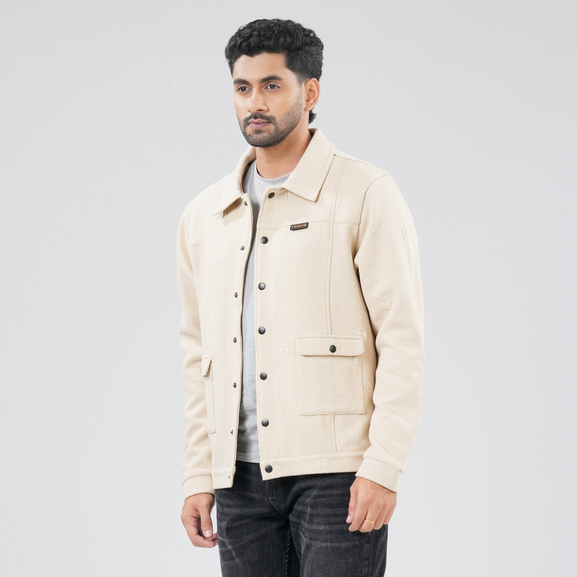 This men’s cream shacket combines the warmth of a jacket with the comfort of a shirt. Designed with a spread collar, button closure, and long sleeves, it offers a relaxed yet stylish look. Made from soft poly fabric with a regular fit, perfect for layering in any season.