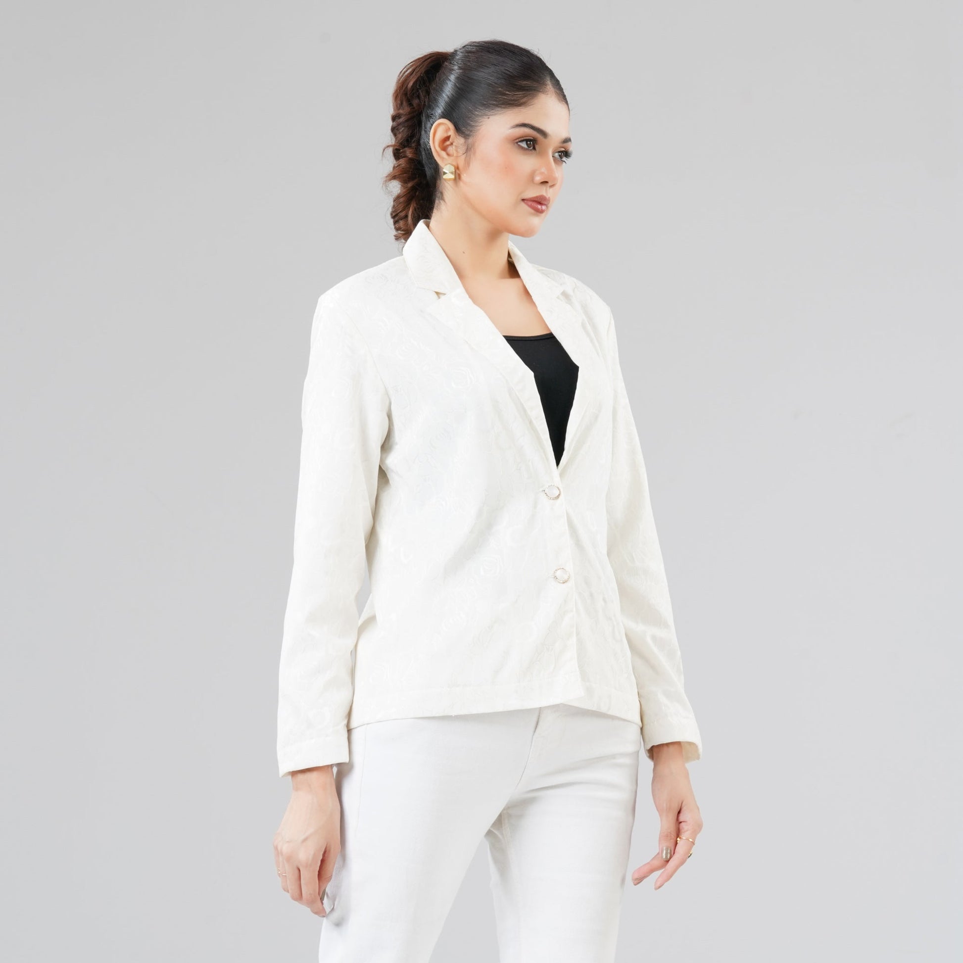 This women’s white shacket offers a chic and versatile layer for any outfit. It features a stylish notched lapel collar, long sleeves, and a solid polyester for added comfort. With a regular fit and clean design, it’s perfect for casual or semi-formal wear.