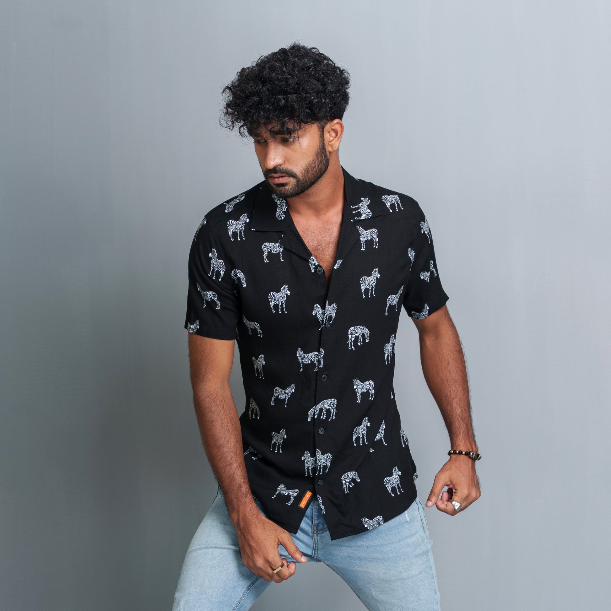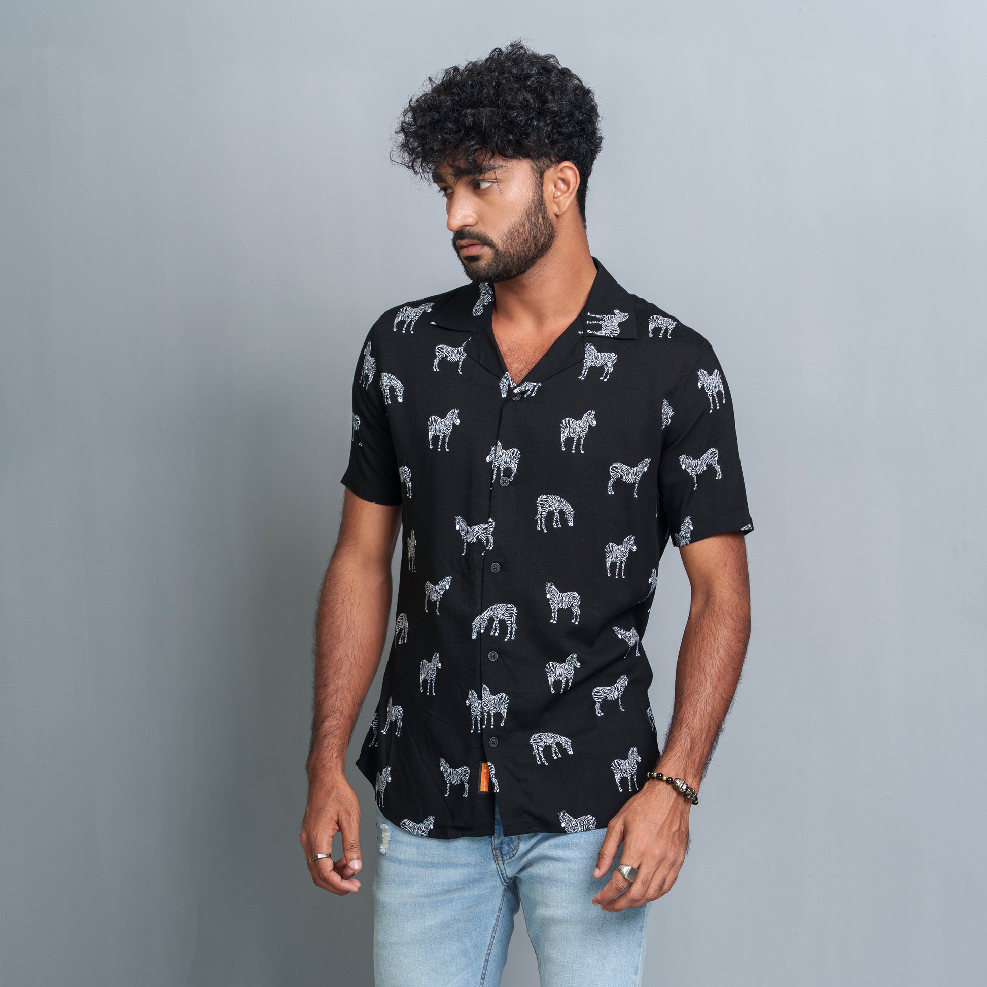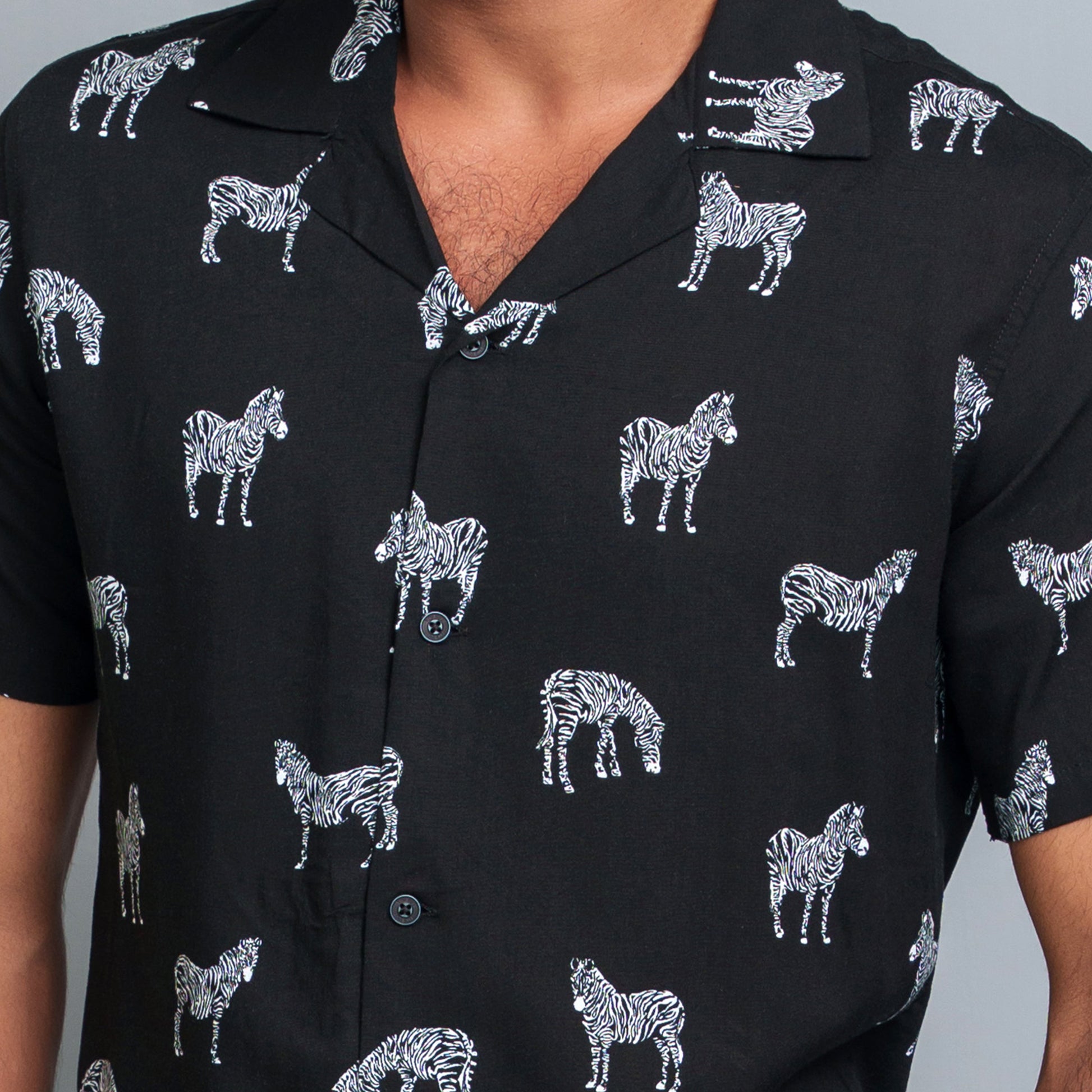 Men's Black-White Cuban Collar Shirt