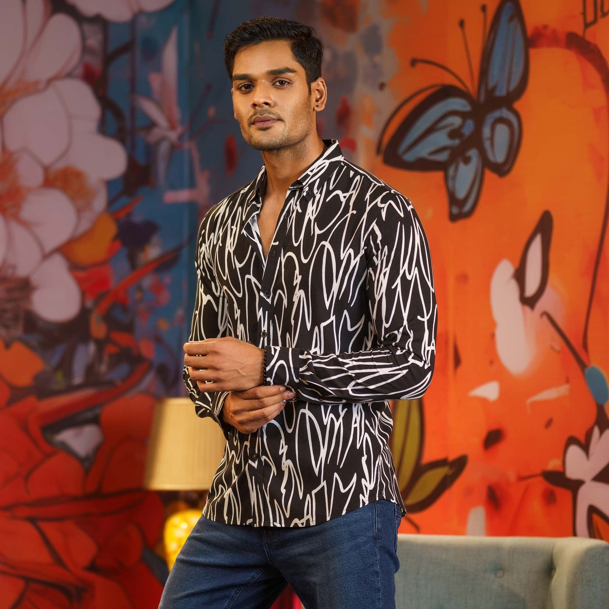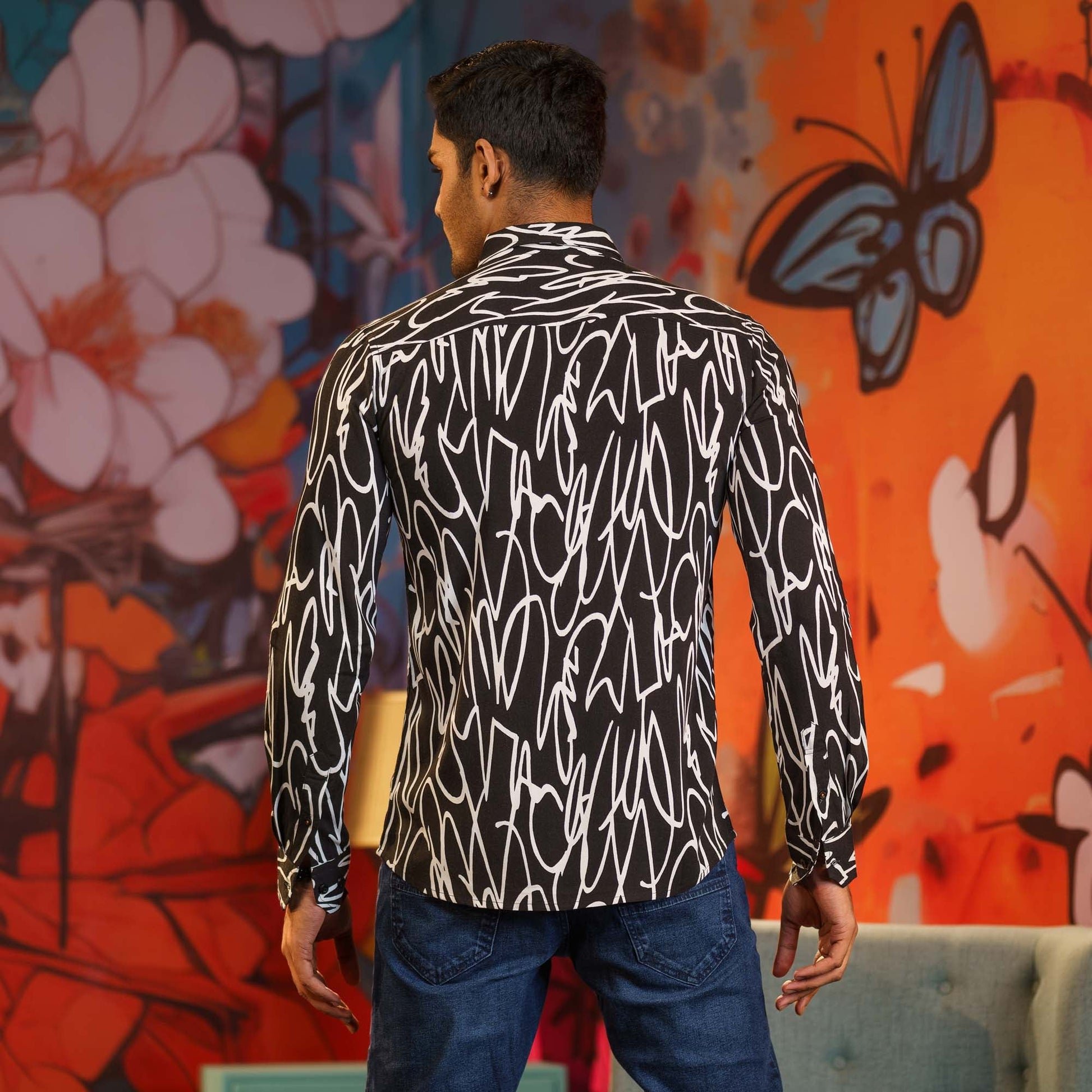 Elevate your wardrobe with this men's black printed shirt, crafted from premium viscose fabric. The slim fit design ensures a sleek, modern silhouette, while the button-down collar adds a touch of class. Perfect for both casual and formal occasions, this shirt combines comfort and style effortlessly.