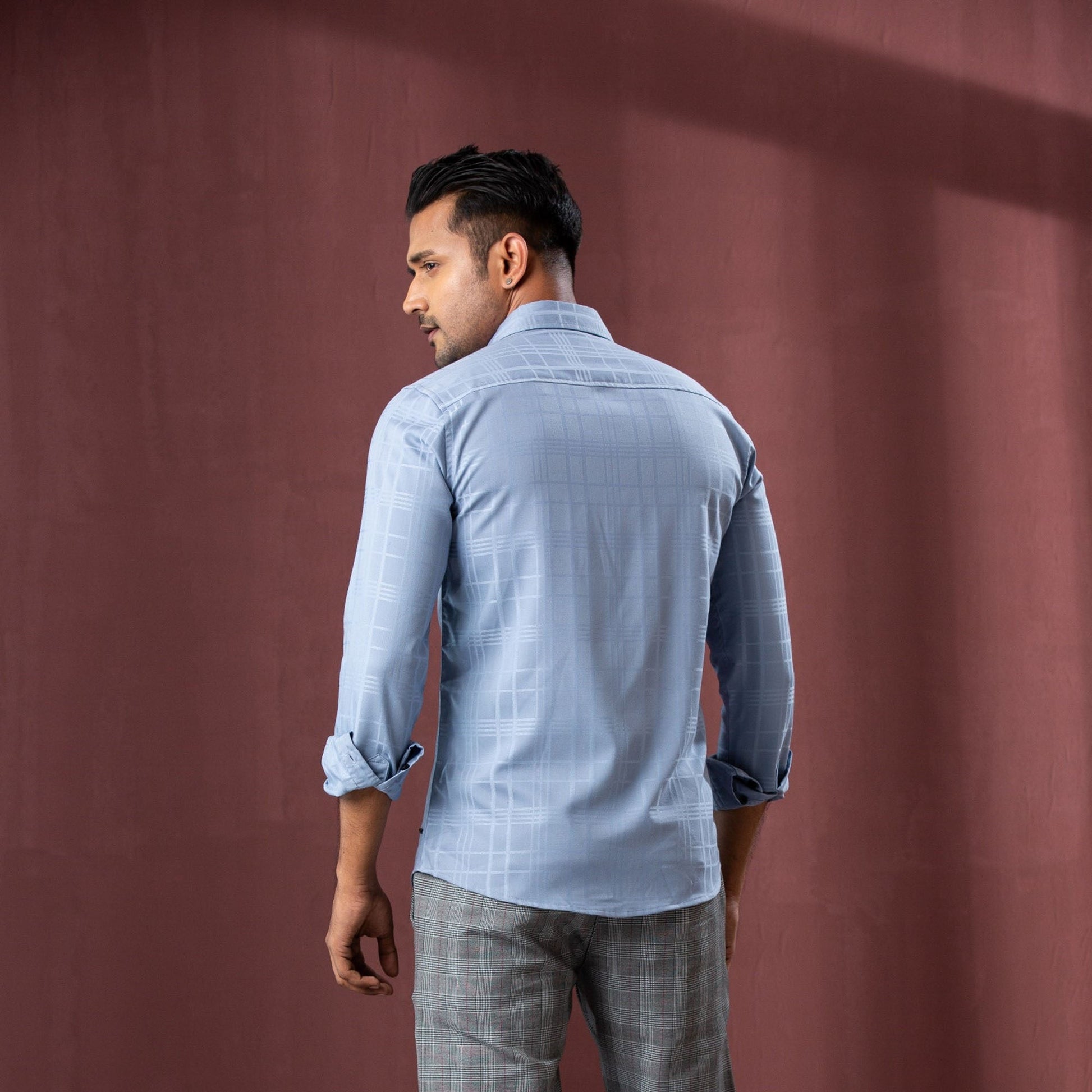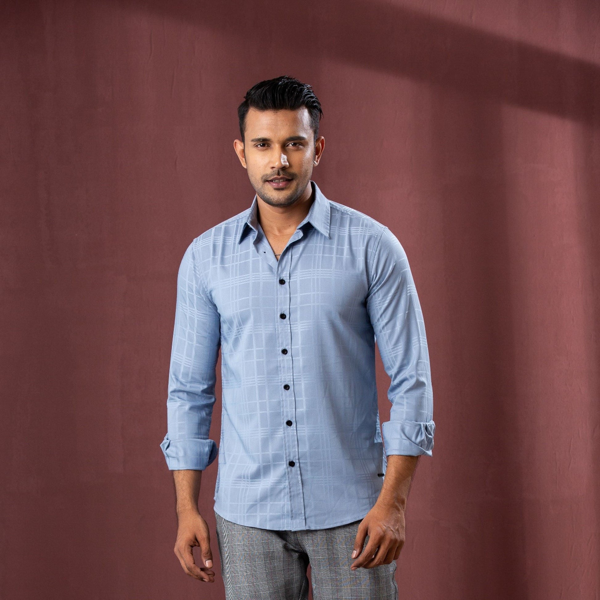 This men’s pigeon stripe shirt is made from a blended fabric, ensuring comfort and durability. It features contrast buttons and a metal patch for added style. The slim fit design provides a modern silhouette, making it perfect for casual outings with a touch of flair.
