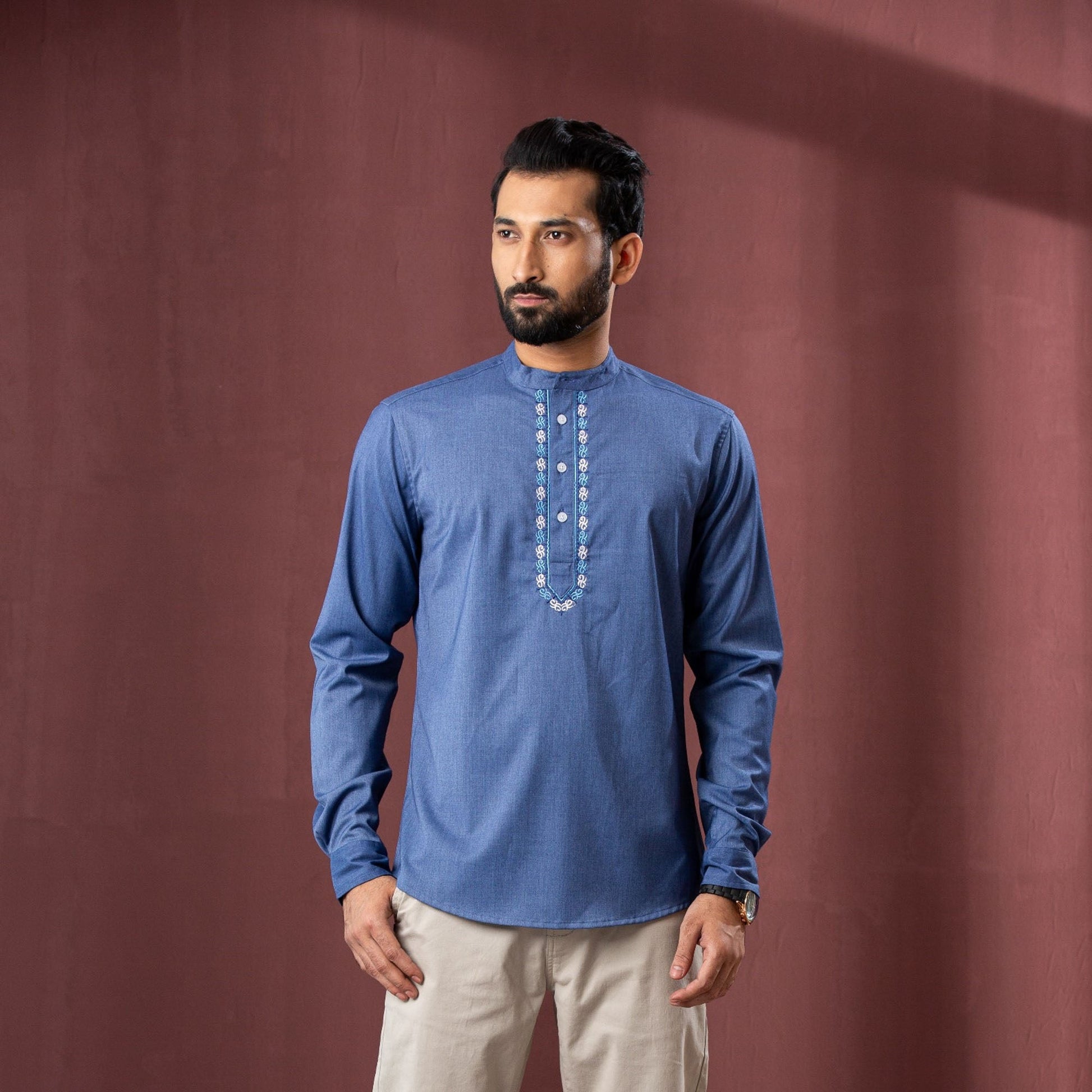 Elevate your wardrobe with this men's wild-wind band collar shirt, featuring intricate embroidery and a fotua-inspired design. Made from blended fabric, it offers a comfortable slim fit, perfect for adding a unique touch to your casual or semi-formal attire.
