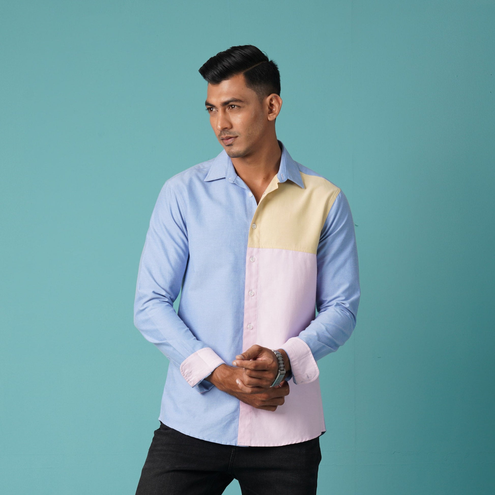 Get ready to stand out in this unique MENS_L/S_SHIRT! Featuring a playful combination of blue and pink, this shirt is perfect for those who don't take themselves too seriously. With a comfortable fit and stylish design, you'll be the talk of the town.