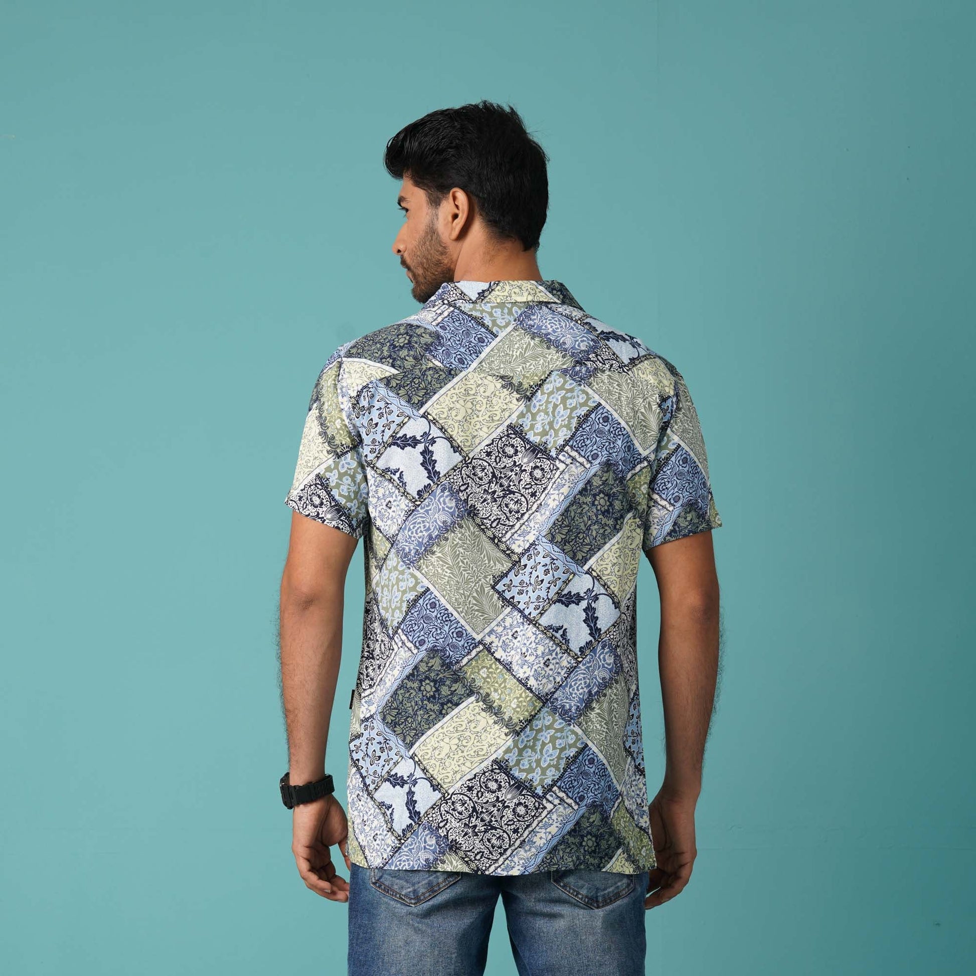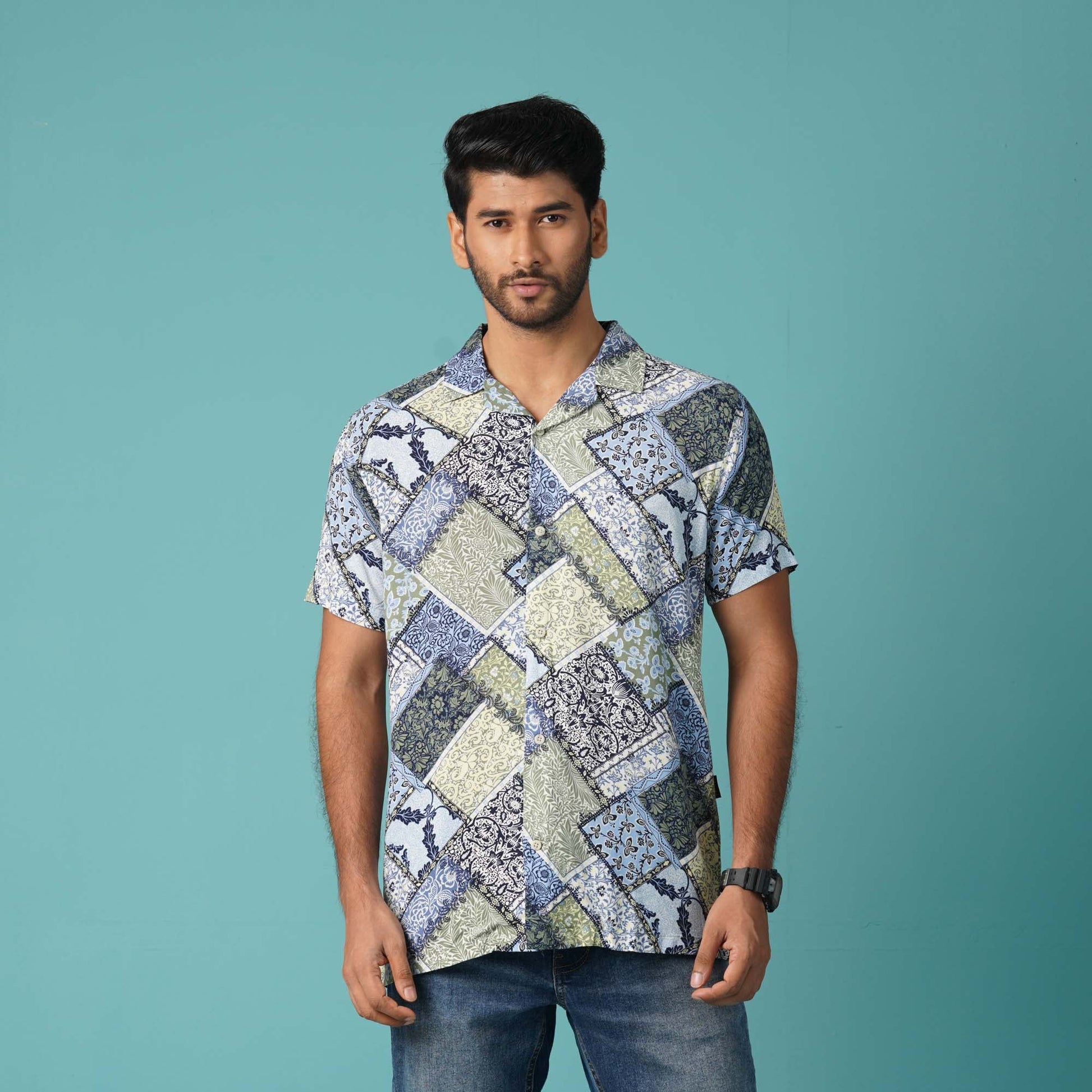 This men's navy-white Hawaii shirt features a Cuban collar and is made from soft viscose fabric. With its trendy design and relaxed fit, it offers both style and comfort. Ideal for casual wear, this shirt adds a sophisticated touch to your laid-back outfits.
