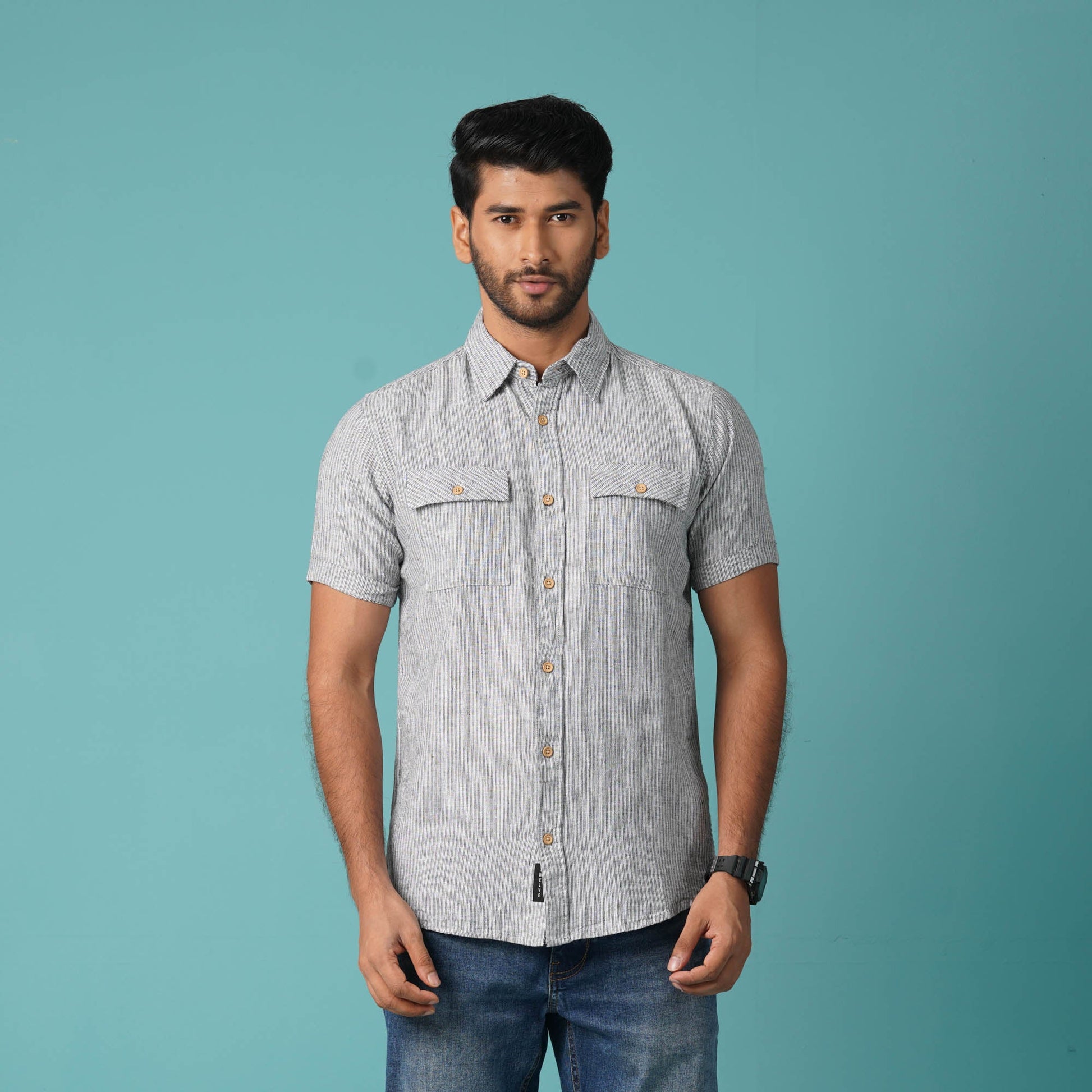 Unleash your sense of style with our MENS S/S SHIRT in BLACK/WHITE. This shirt is not only versatile, but also effortlessly brings out your inner cool. A must-have for any wardrobe.