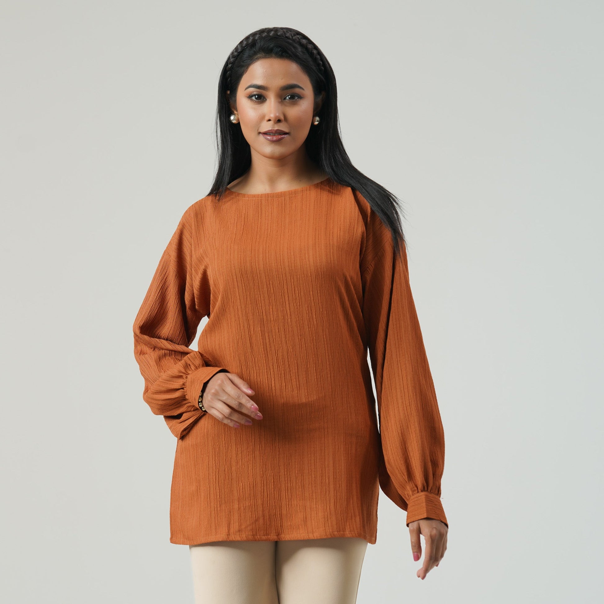 This stylish women top is crafted from a soft blended fabric, offering a comfortable and elegant fit. Designed in a sophisticated brown shade, it’s perfect for both casual and semi-formal wear. Pair it with your favorite bottoms for a chic and effortless look.