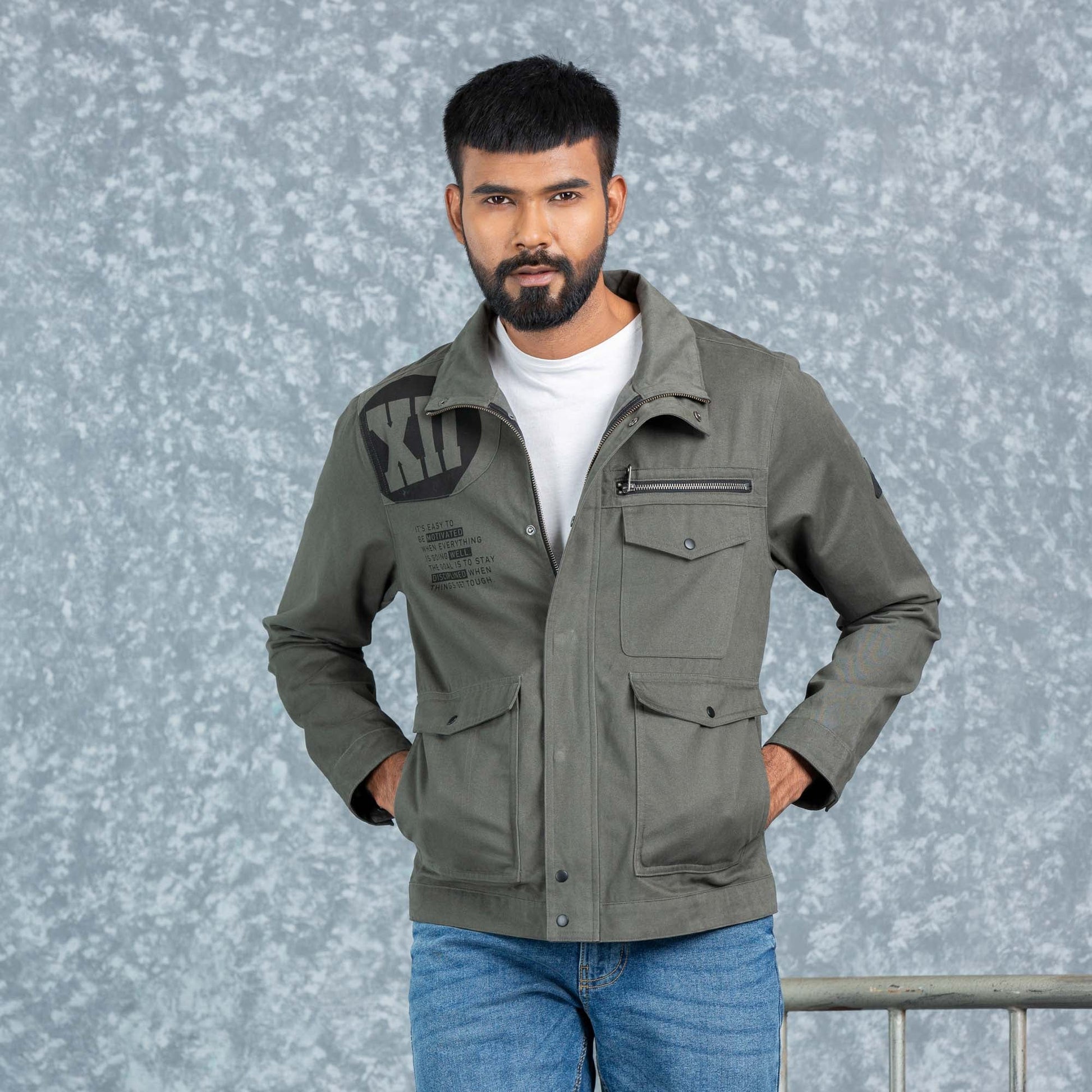 This gray men's twill jacket combines a classic design with modern features. Crafted from 100% cotton for a comfortable fit, it offers a button-down closure for a secure fit and two pockets for easy storage. Its casual style makes it ideal for everyday wear and special occasions alike.