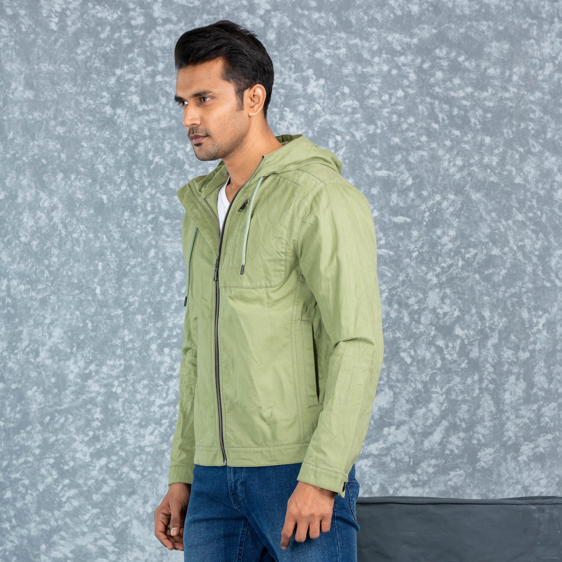 Introducing the Men's Light Green Twill Jacket, crafted from premium twill fabric for durability. Its classic silhouette and breathable fabric make this jacket the perfect choice for any season.