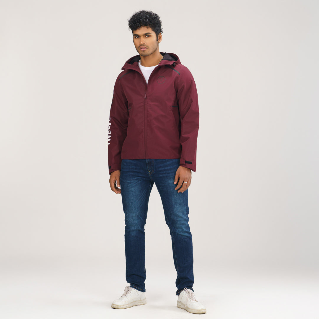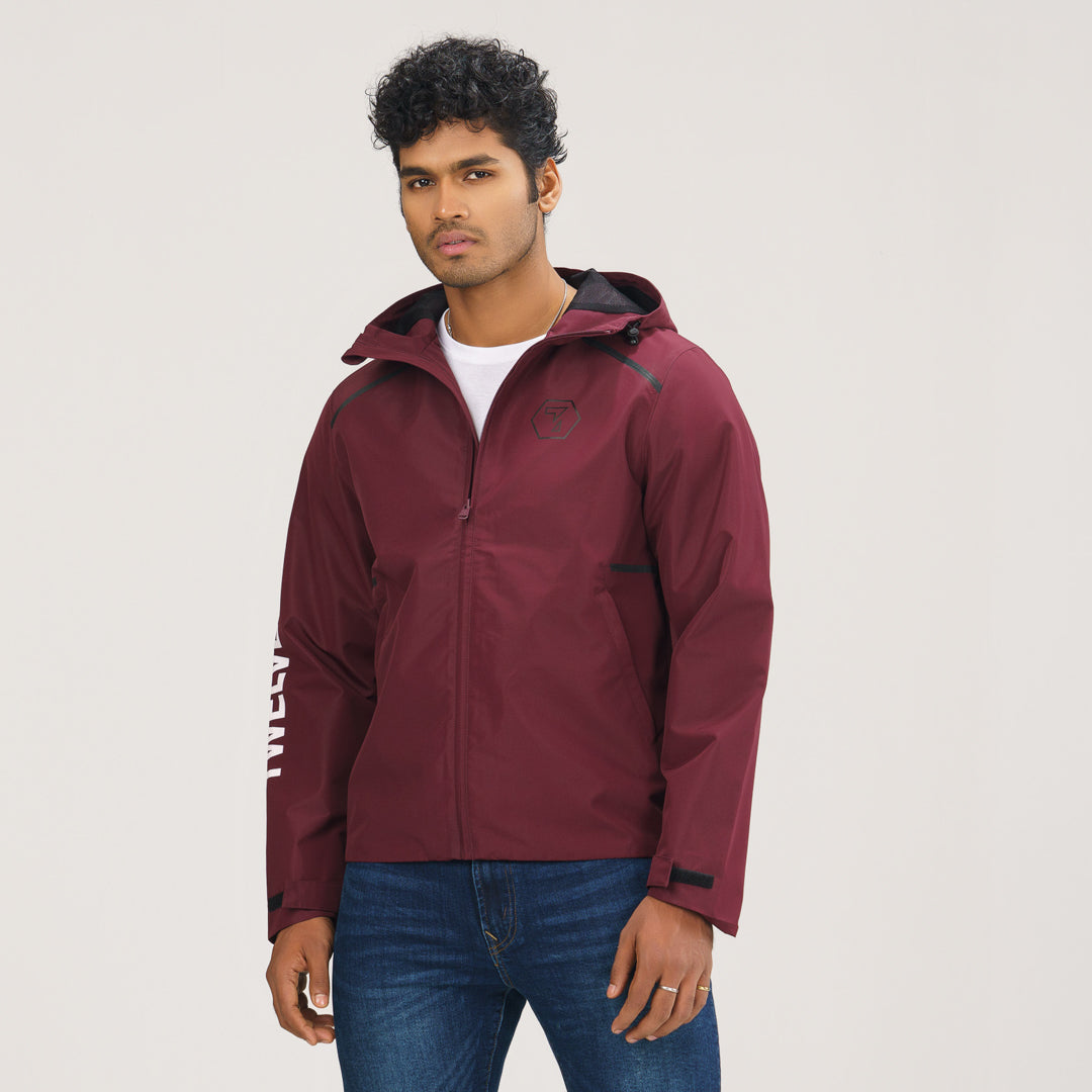 This lightweight men's windbreaker is designed for style and practicality. It features a hood for added protection, two functional pockets, and a zip closure for convenience. The placement print detailing adds a modern touch, while the long sleeves and straight hemline ensure a comfortable fit. Crafted with a polyester lining, this jacket is ideal for regular wear without the bulk of padding. Perfect for layering during mild weather.