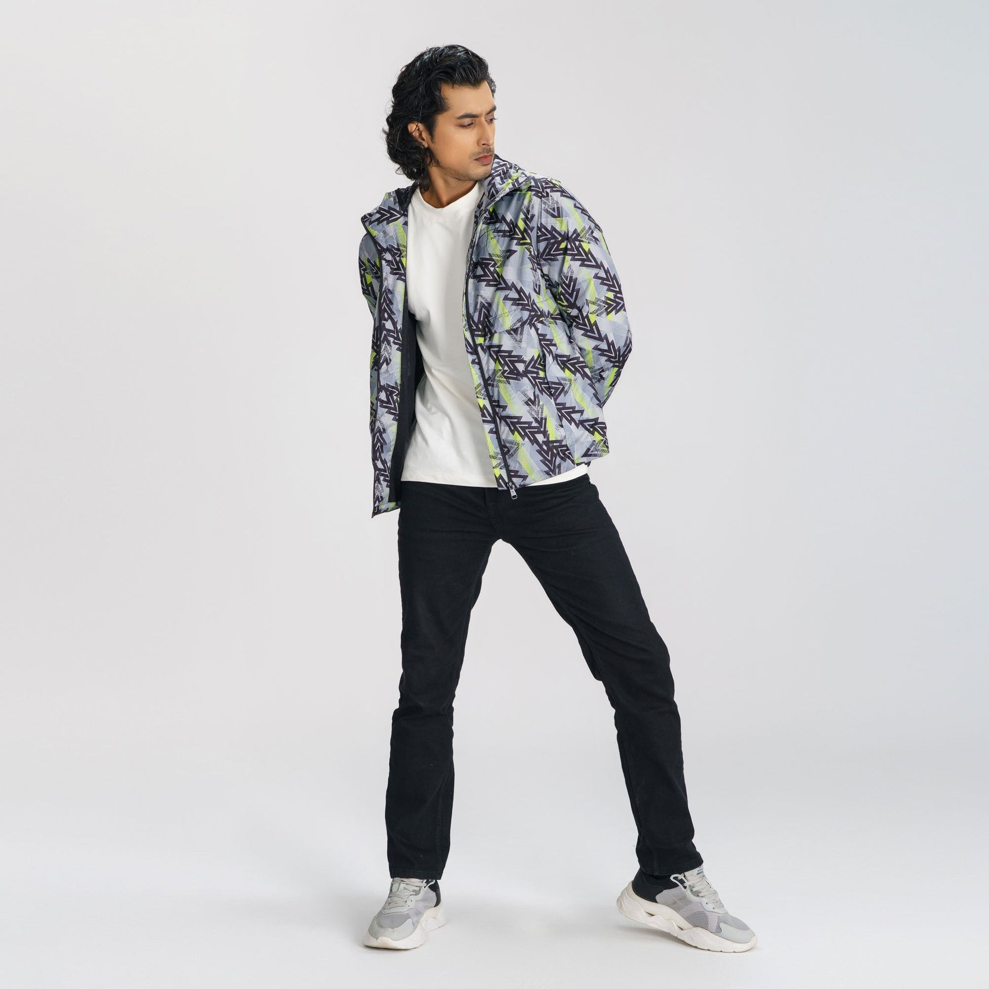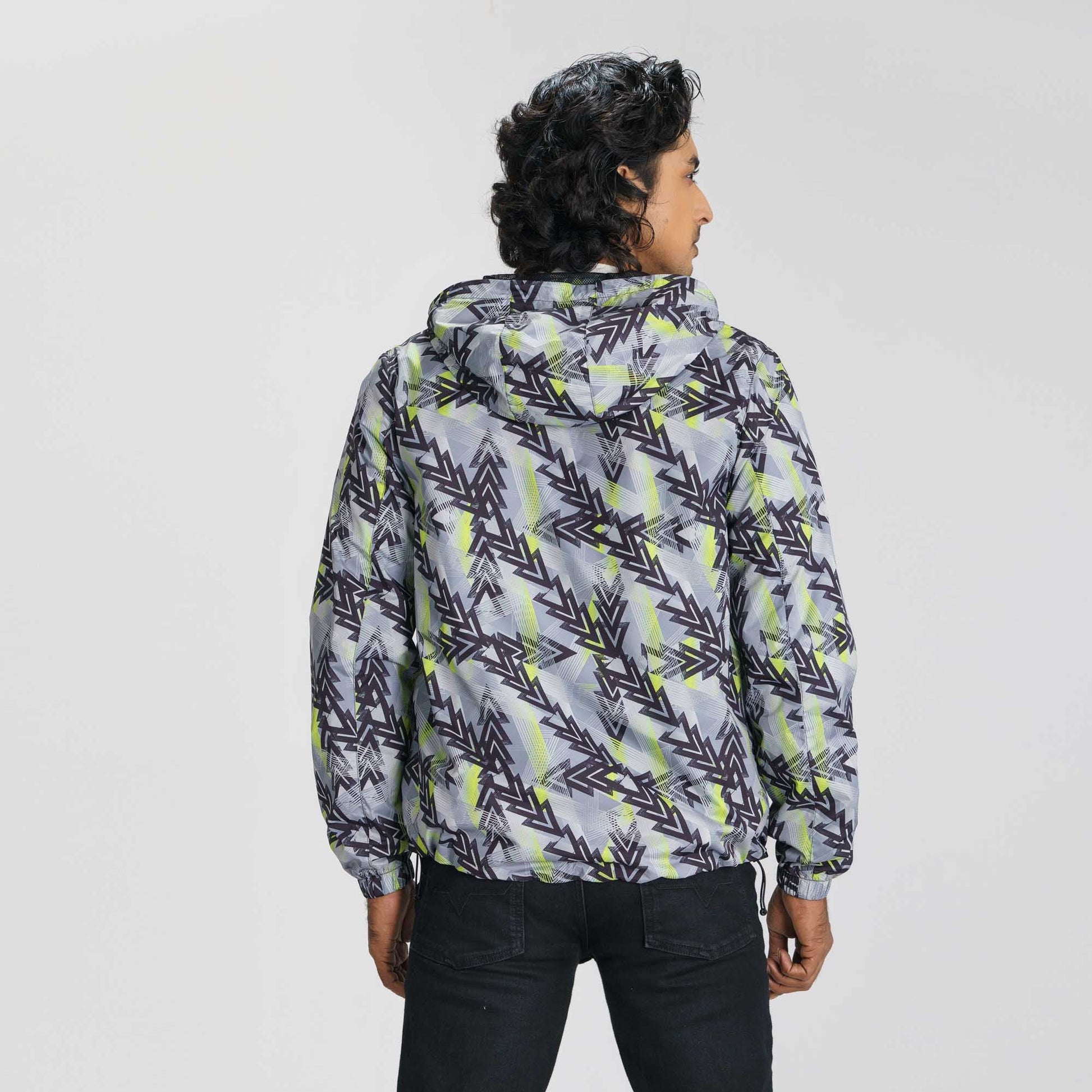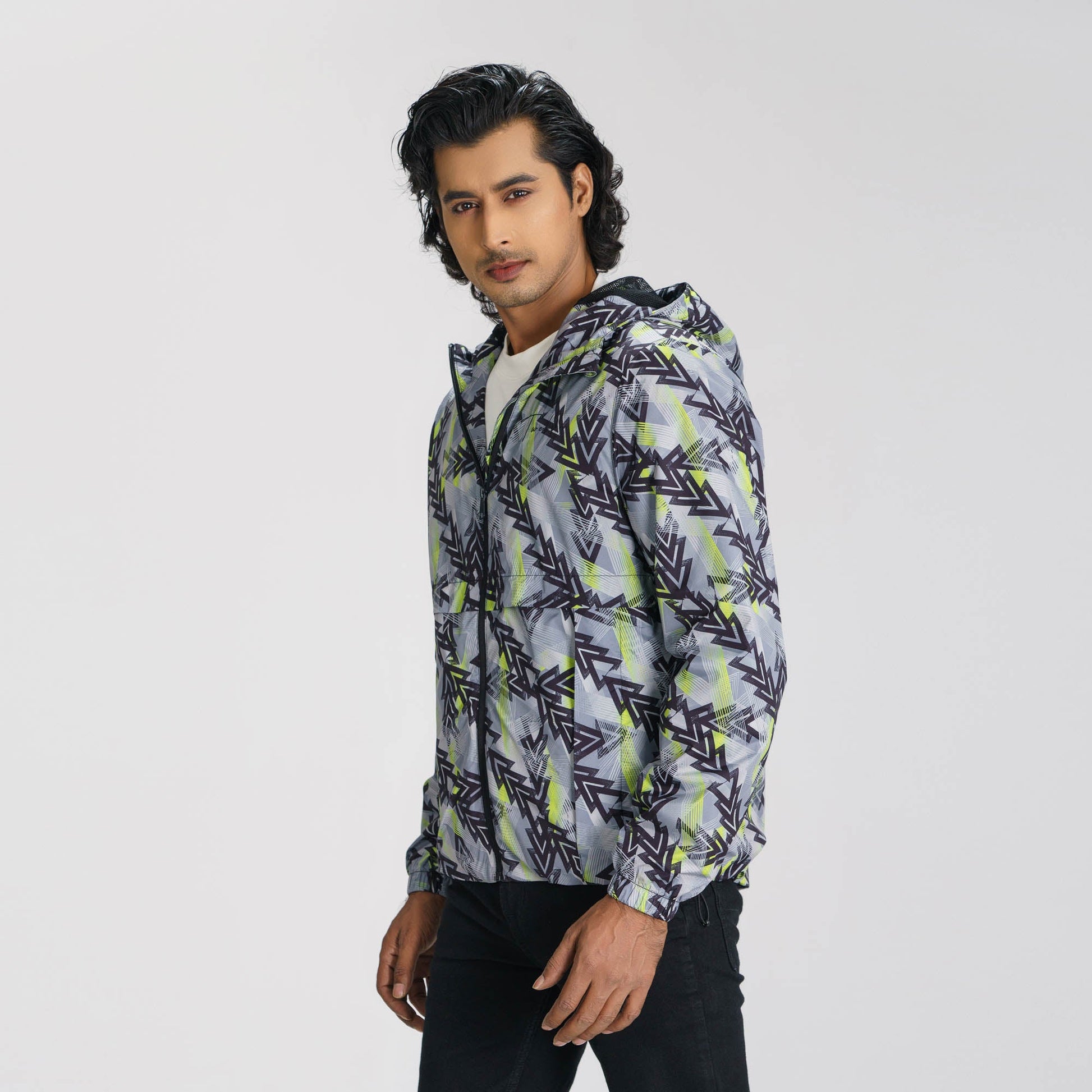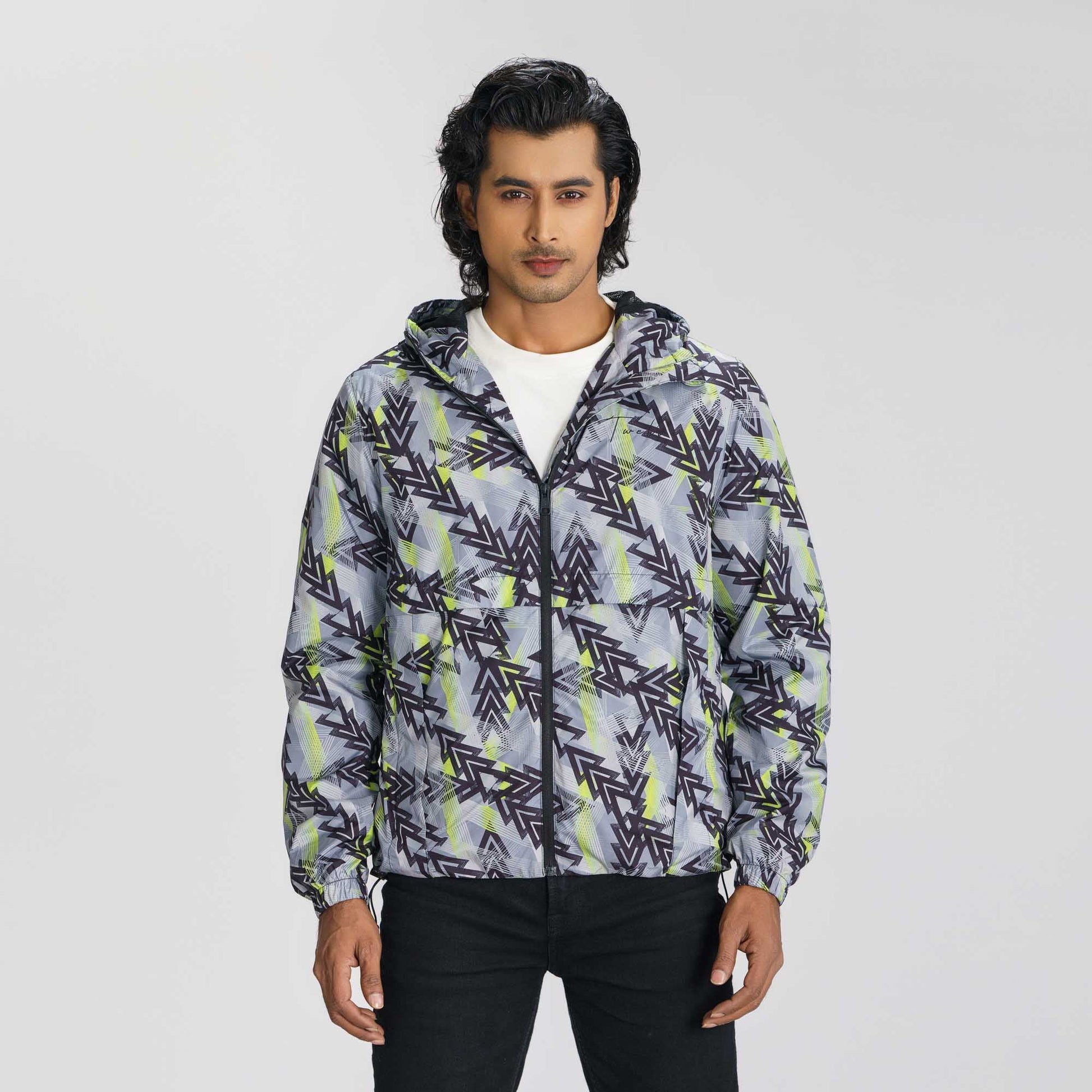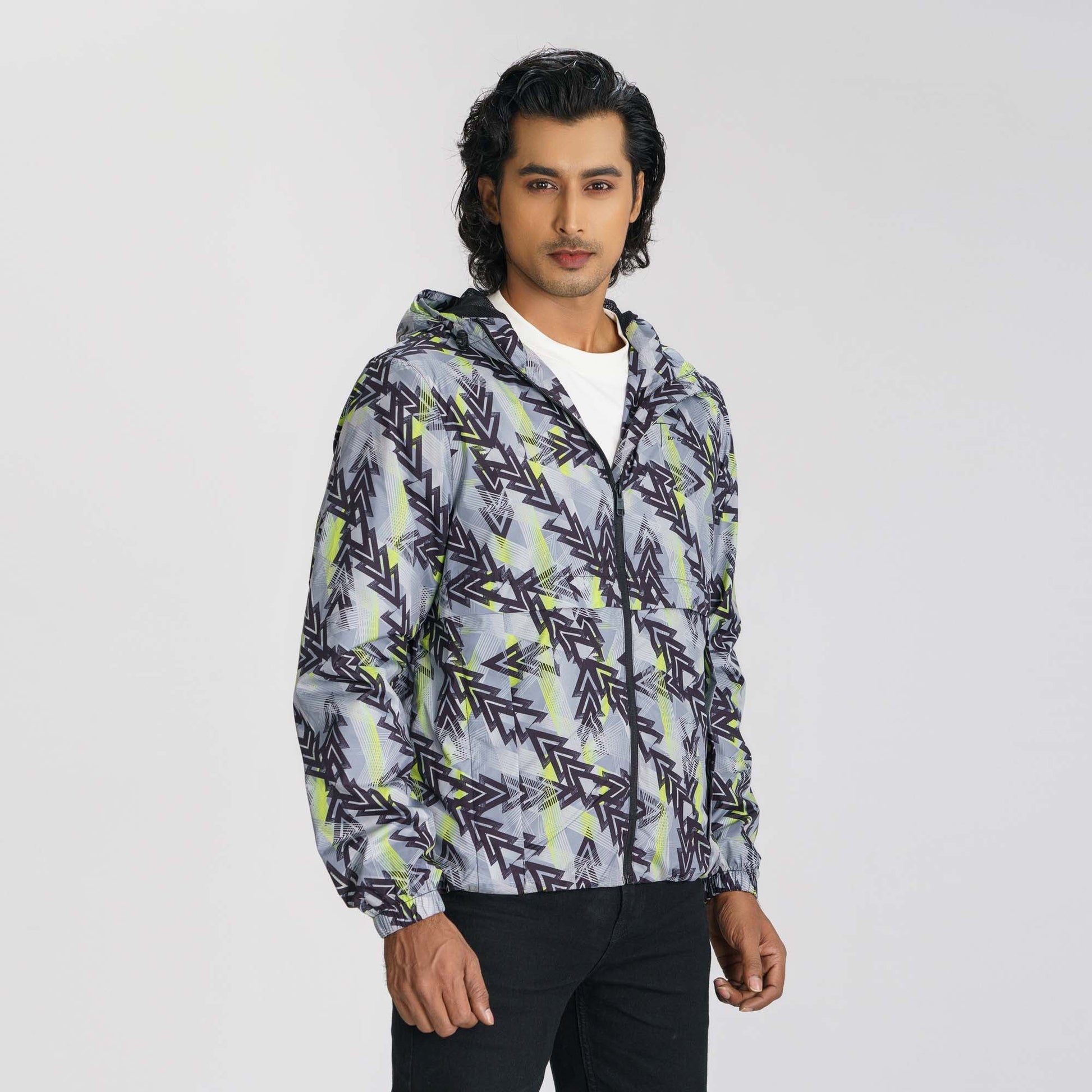 This men’s light gray windbreaker is a versatile outerwear piece designed for comfort and style. Featuring a hood, two pockets, and chest embroidery detailing, it comes with a zip closure and long sleeves. Made from durable polyester with a regular fit, it’s lightweight and perfect for layering in breezy weather.