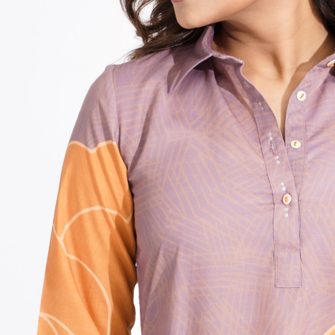 This elegant mustard 2-piece set features a digitally printed top and bottom, enhanced with intricate embroidery on the placket. Crafted from blended cotton, it offers a soft and breathable feel, making it perfect for all-day wear with a touch of sophistication.