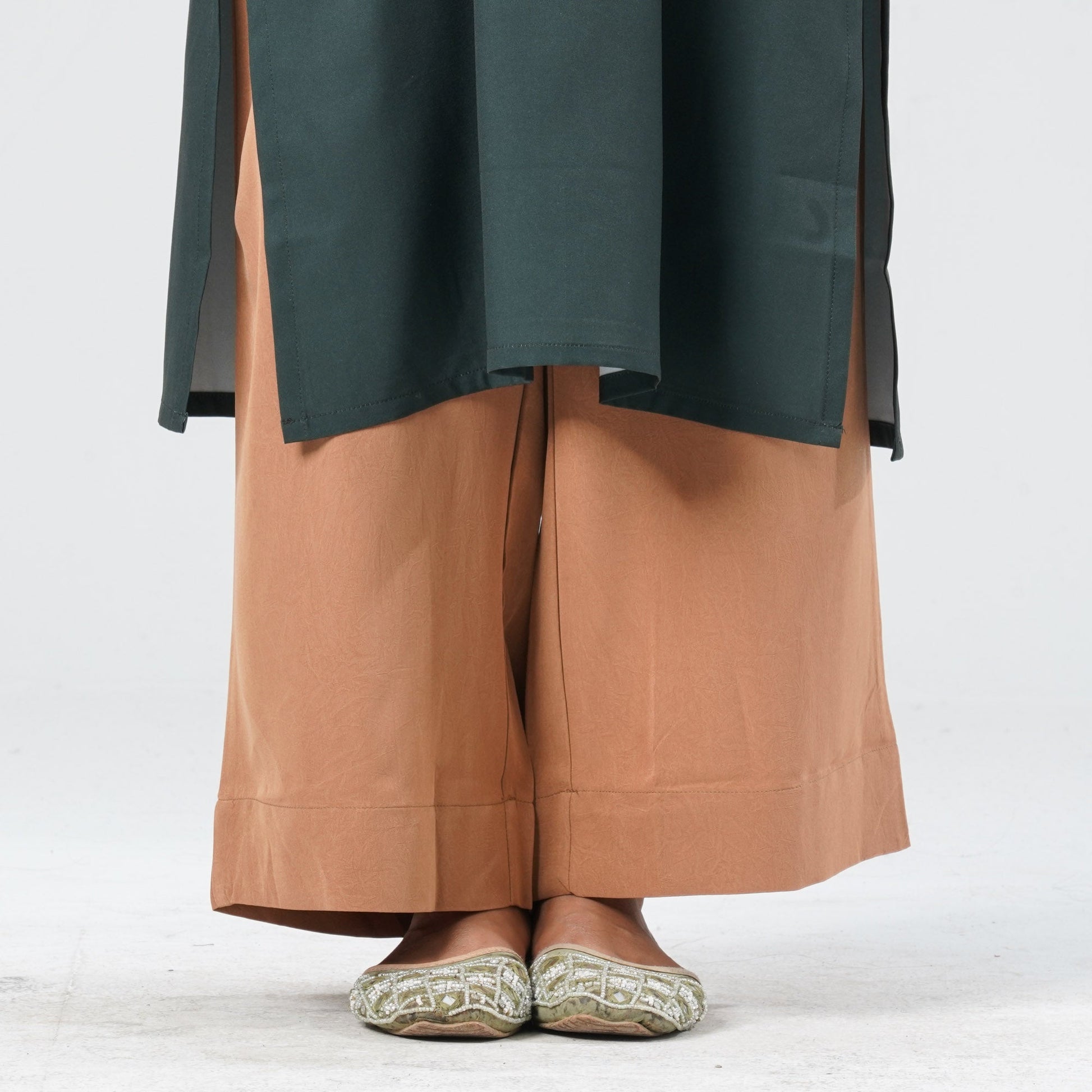 This women’s pistachio green ethnic two-piece set features a straight-cut kameez with elegant sublimation print detailing. The bottom hem flared pant adds a graceful silhouette, enhanced with subtle sequin work for a refined touch. Crafted from blended silk for the kameez and soft viscose for the pant, it offers both comfort and style. Perfect for festive occasions and special gatherings.