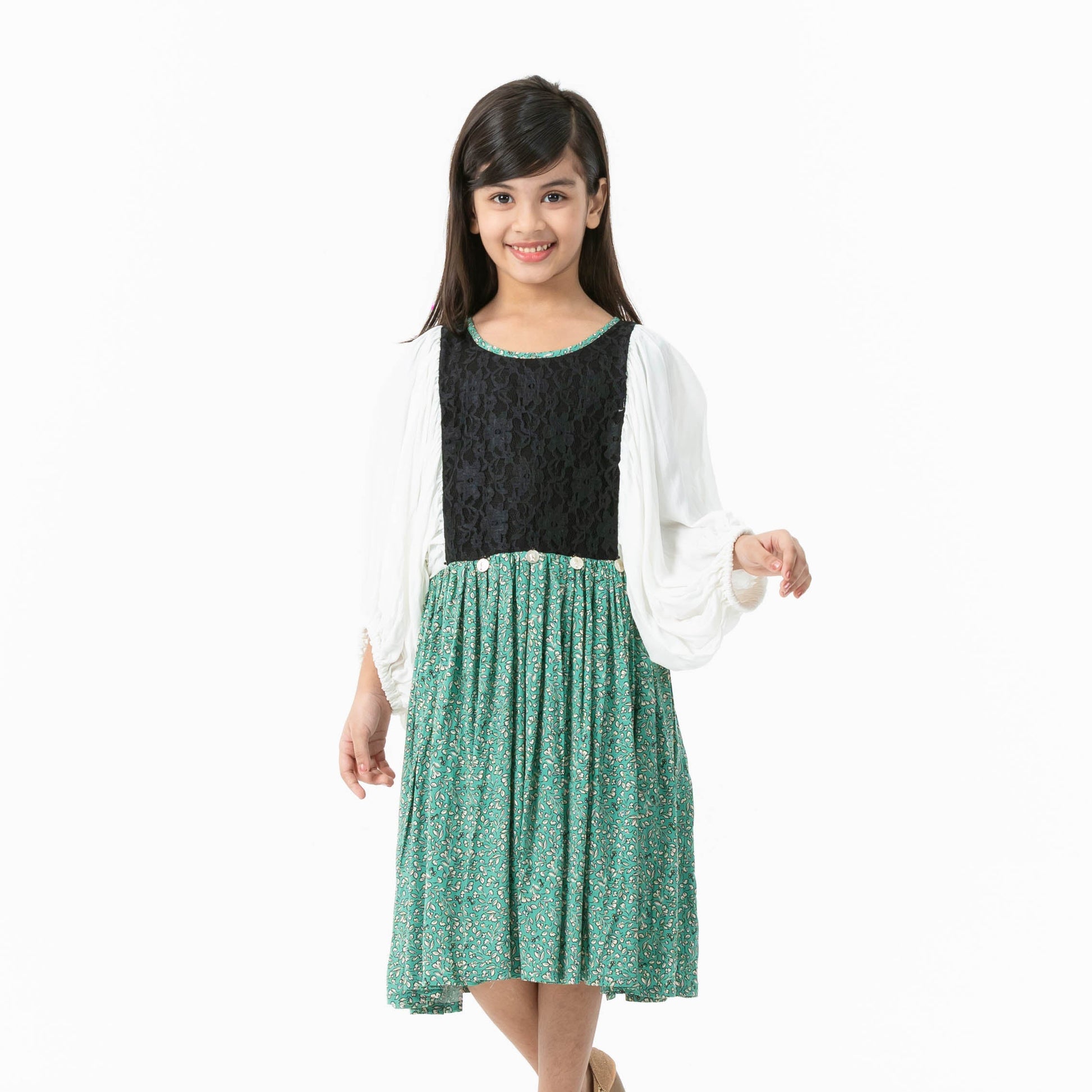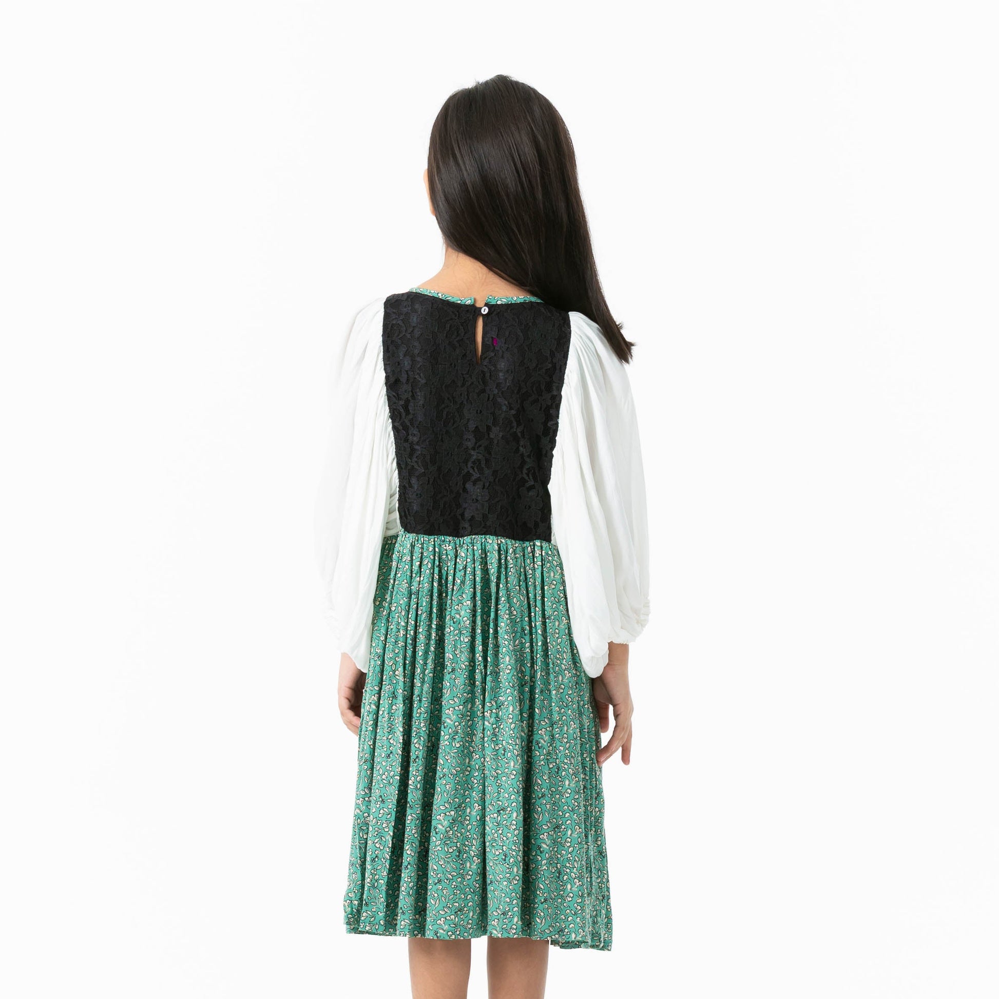 This charming mint frock for girls combines printed and solid fabric, beautifully detailed with lace accents. The waistline is embellished with decorative lace and delicate beadwork, adding a touch of elegance. Made from soft linen, it offers a comfortable and breathable fit, perfect for special occasions or everyday wear.