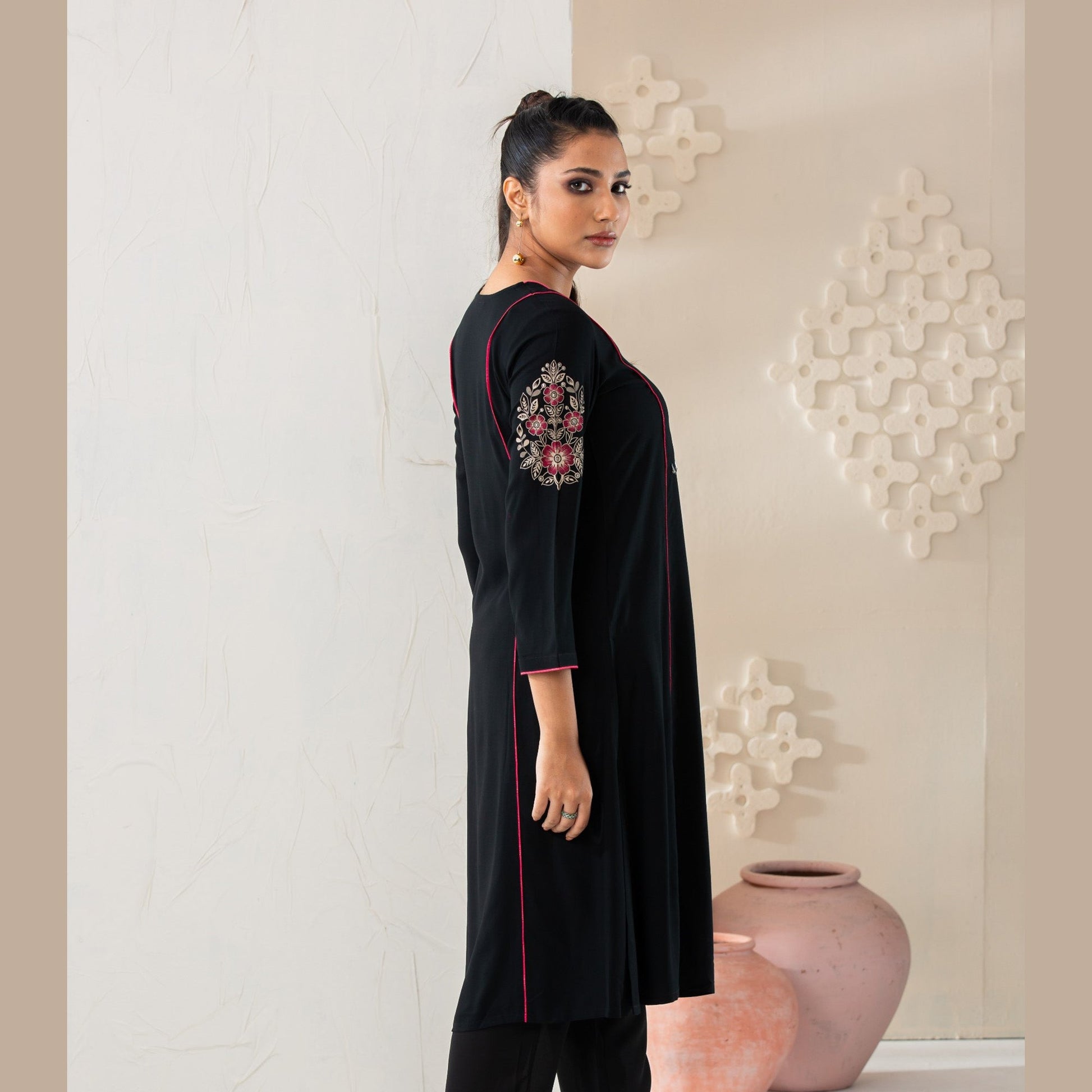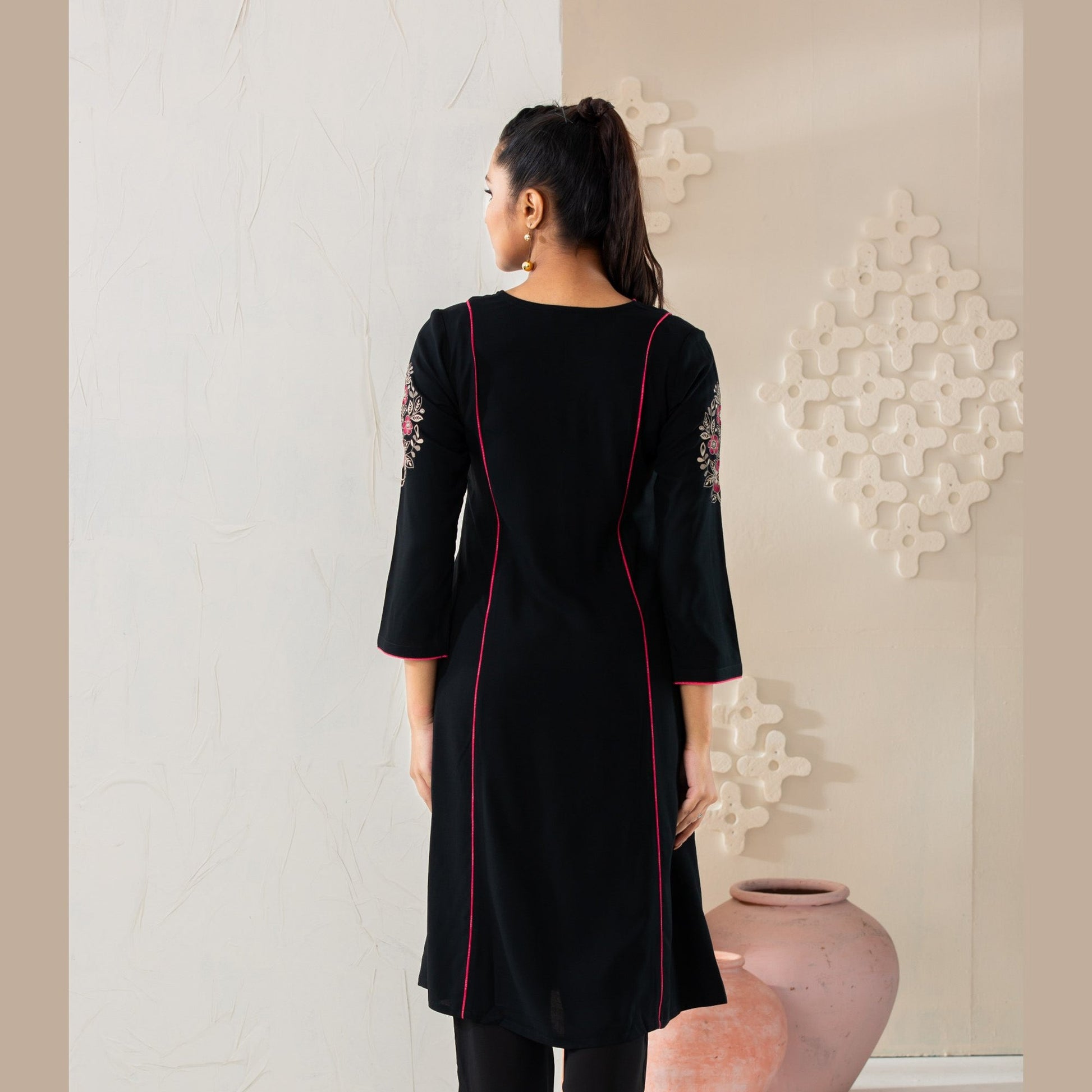 Womens Black Linen Kurti