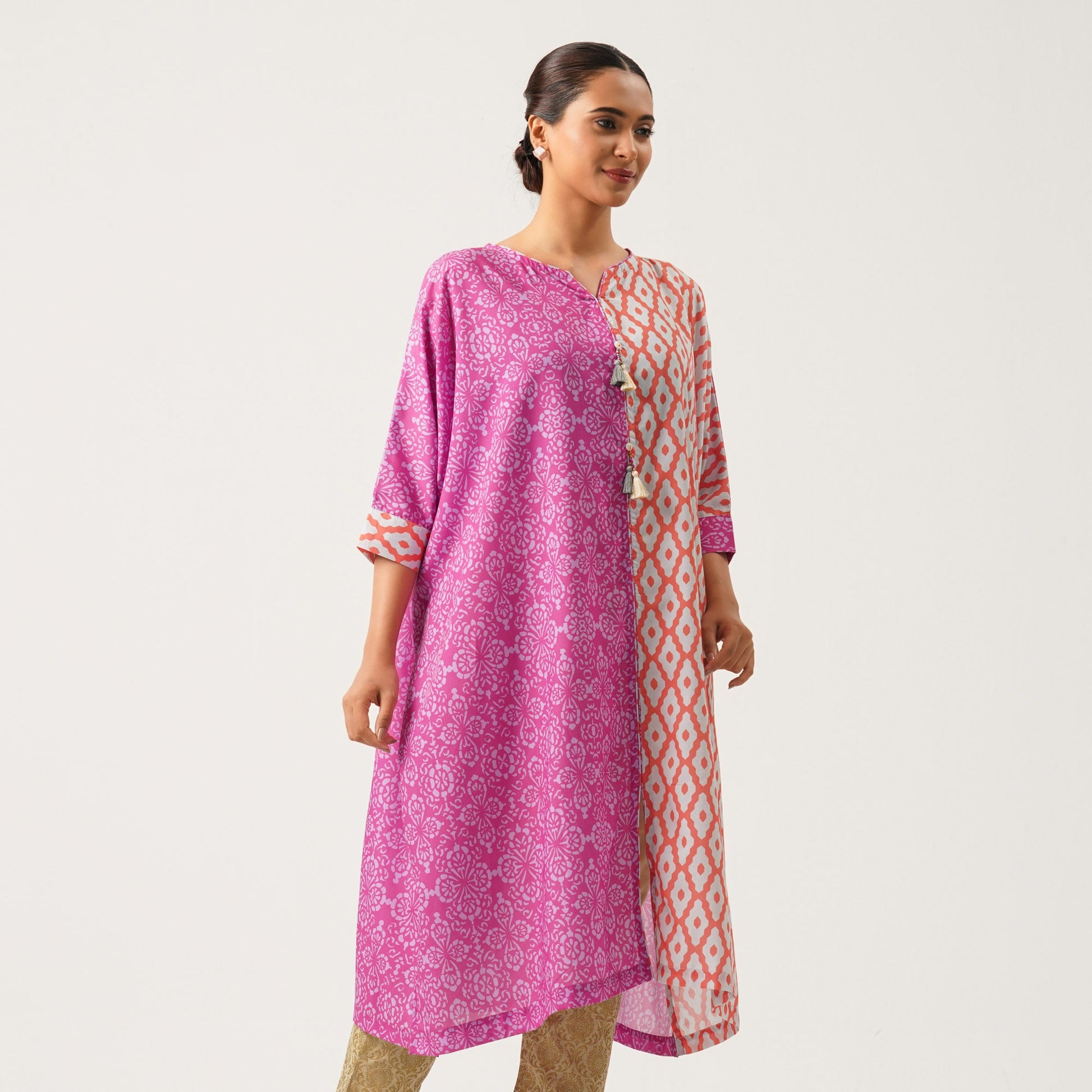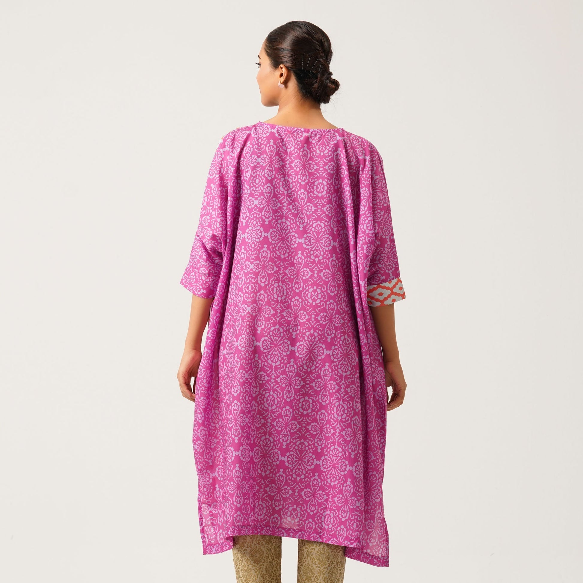 This elegant pink kurti, crafted from a soft blended fabric, combines comfort with a classic ethnic style. Featuring a timeless design, it’s perfect for casual gatherings or festive occasions, adding a touch of grace to your wardrobe.