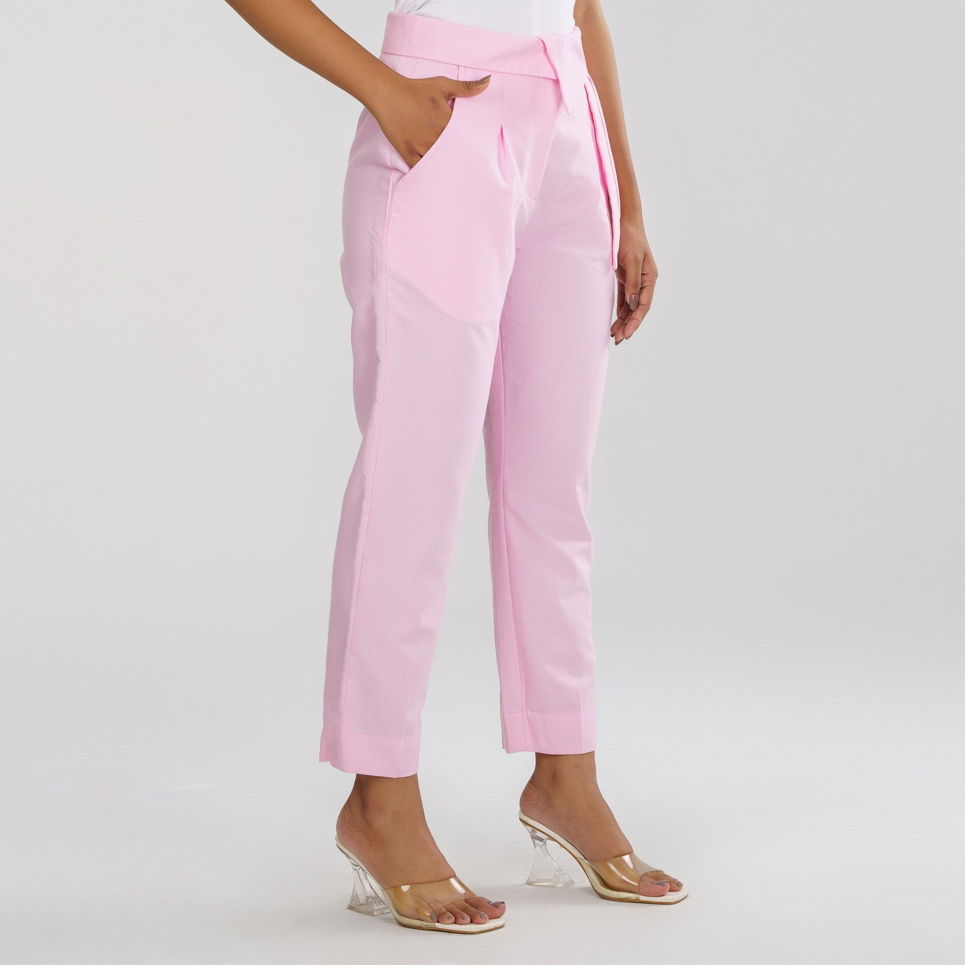 These baby pink workwear bottoms offer a straight-cut design, crafted from a comfortable blended cotton fabric. Ideal for daily wear, they provide a classic and versatile look that pairs effortlessly with various tops for a polished ethnic style. Perfect for work or casual settings.