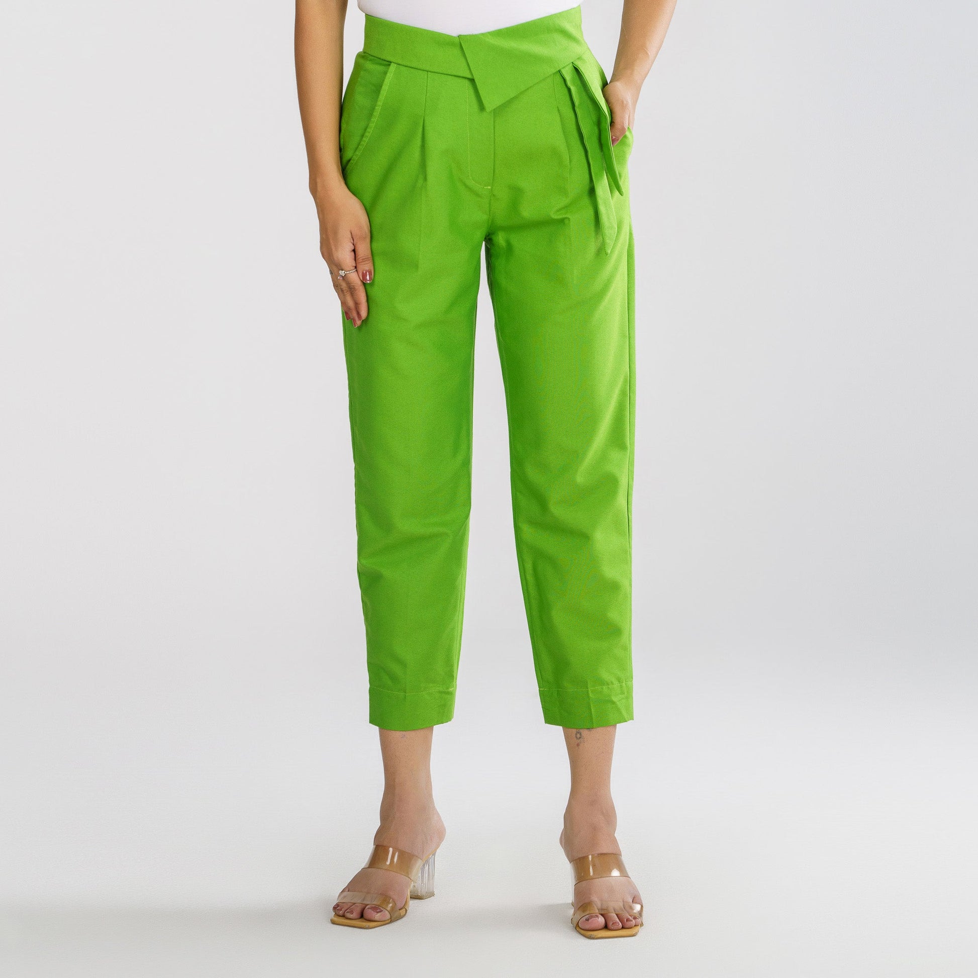 These parrot green workwear bottoms offer a straight-cut design, crafted from a comfortable blended cotton fabric. Ideal for daily wear, they provide a classic and versatile look that pairs effortlessly with various tops for a polished ethnic style. Perfect for work or casual settings.