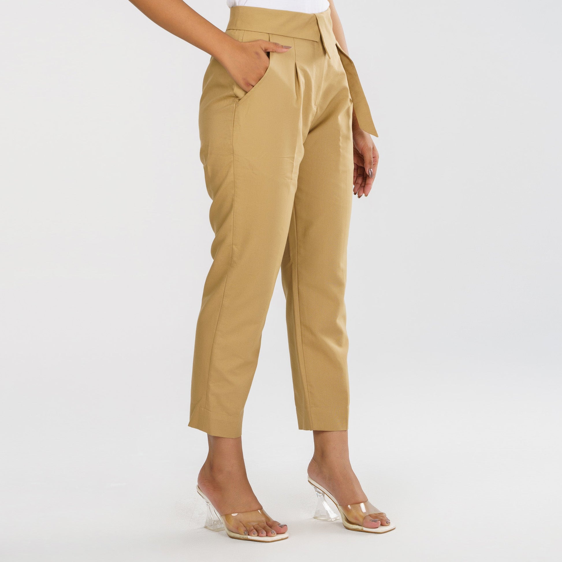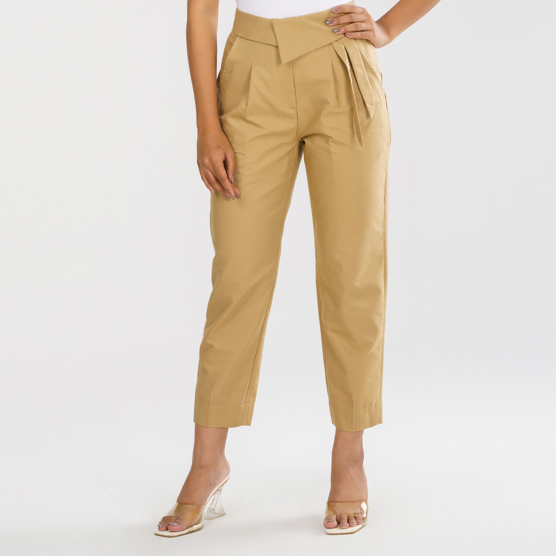 These beige workwear bottoms offer a straight-cut design, crafted from a comfortable blended cotton fabric. Ideal for daily wear, they provide a classic and versatile look that pairs effortlessly with various tops for a polished ethnic style. Perfect for work or casual settings.
